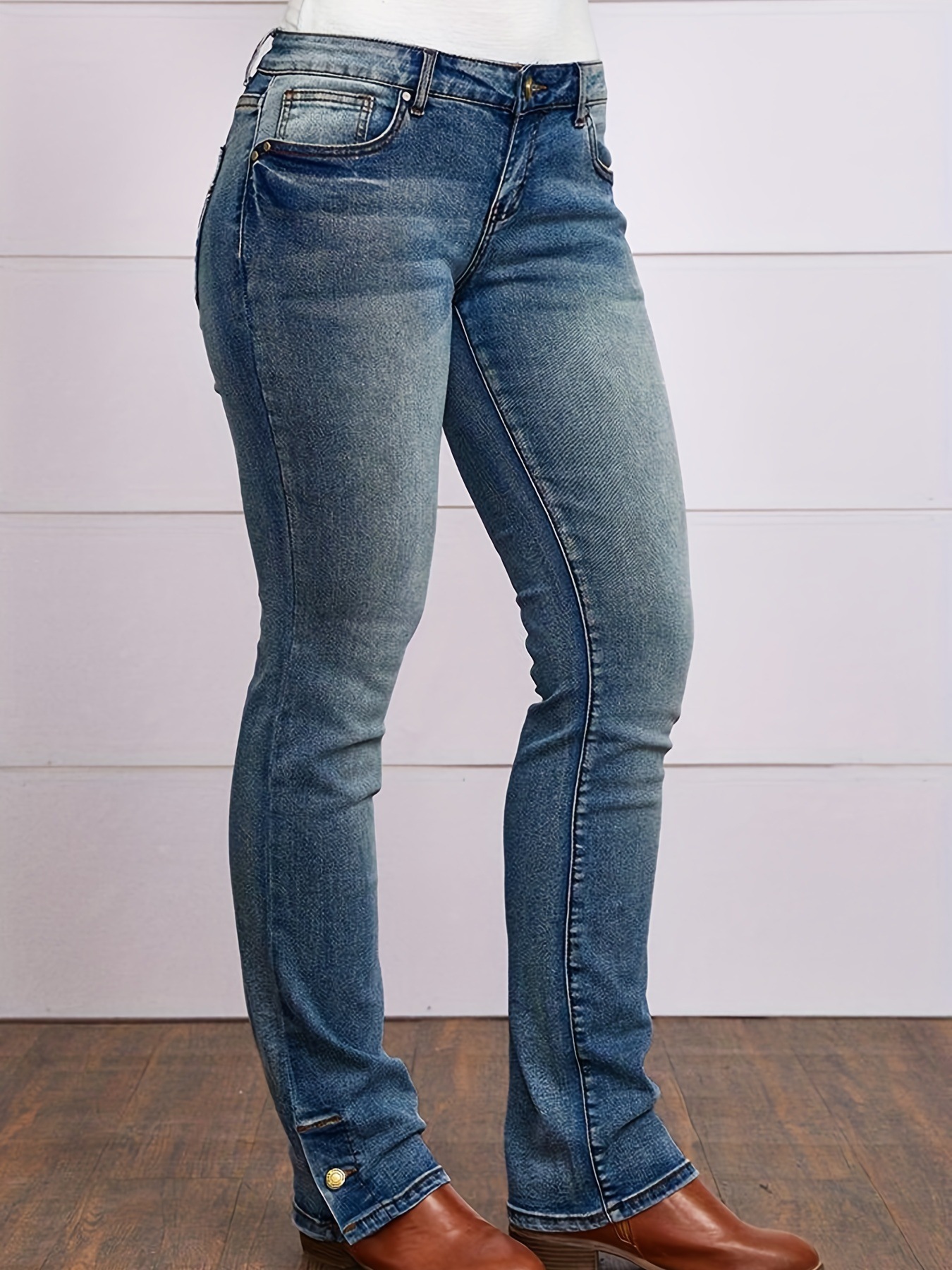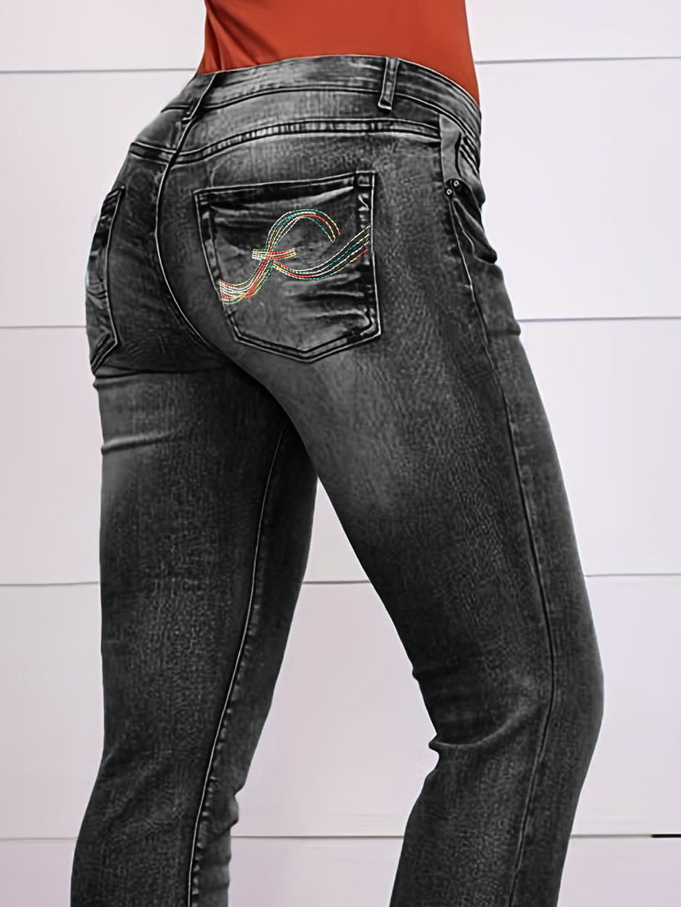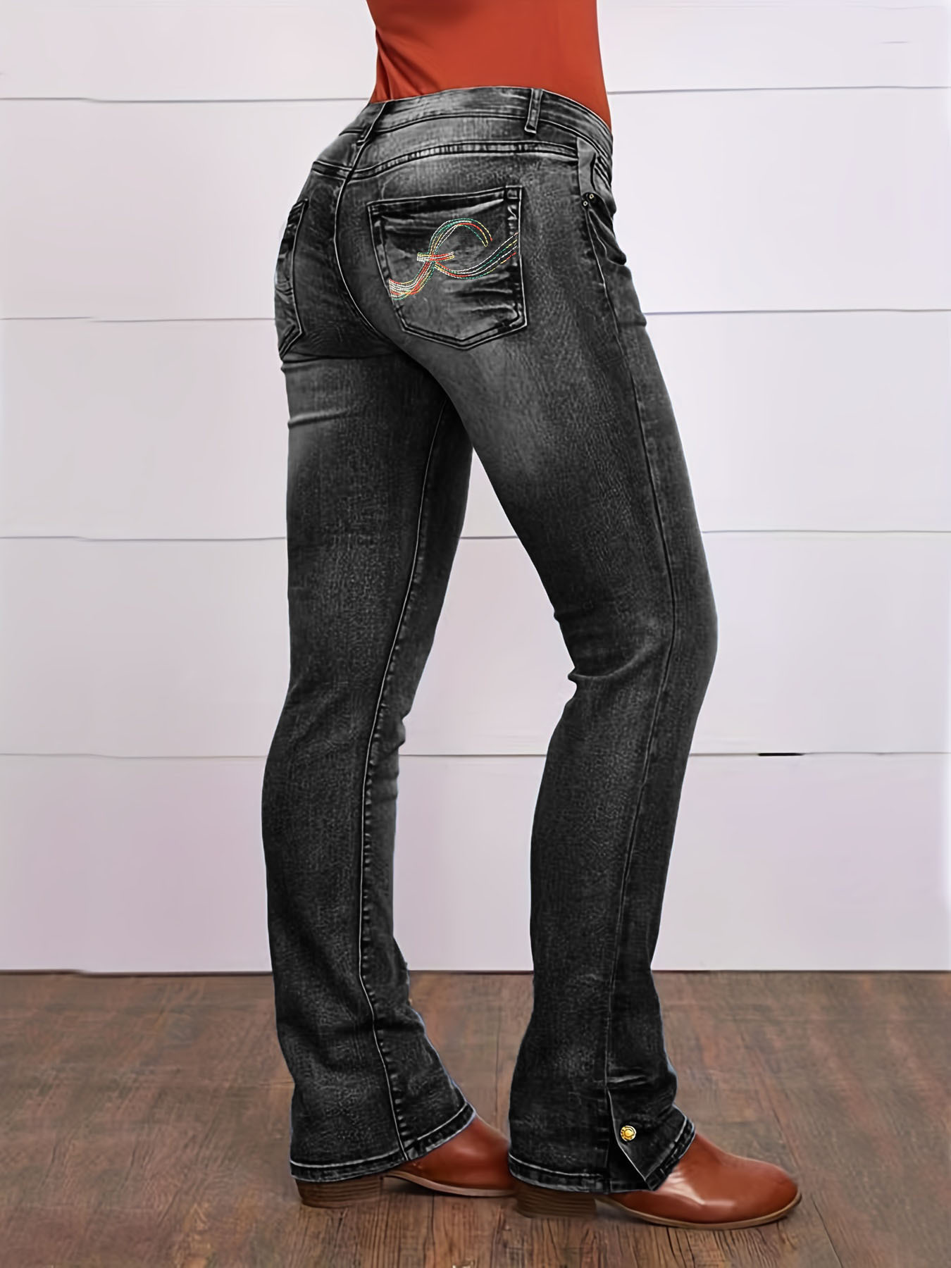 크로스보더 소스 유럽과 미국 심플 캐주얼 청바지 스트레치 슬림핏 스트레이트 데님 바지 여성용 자수 청바지스토어 가기