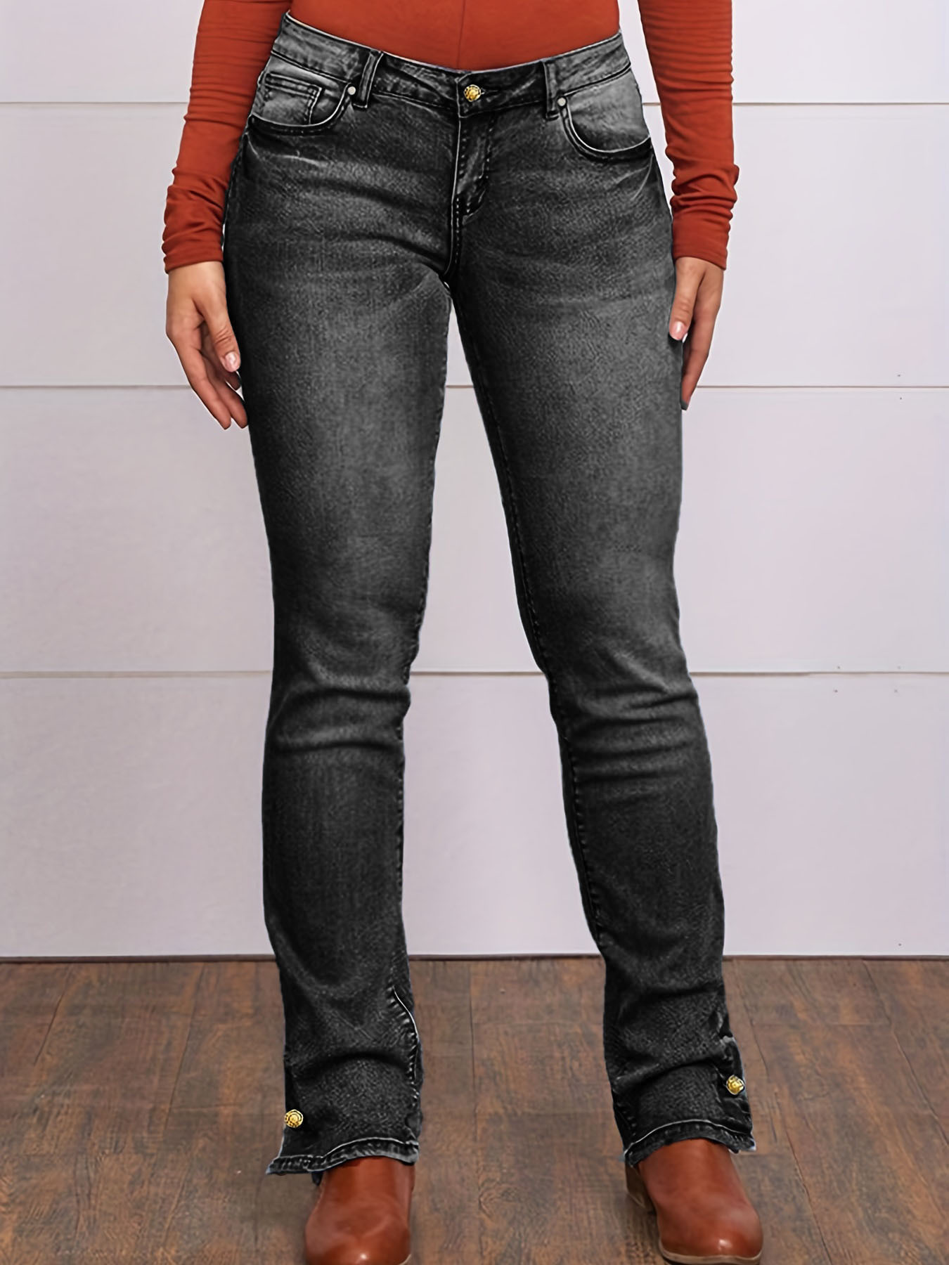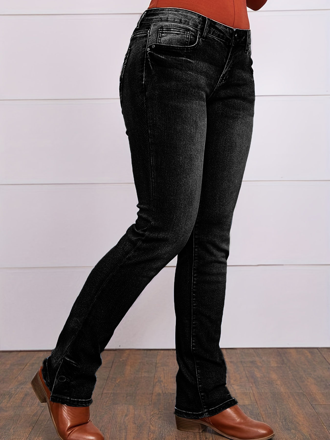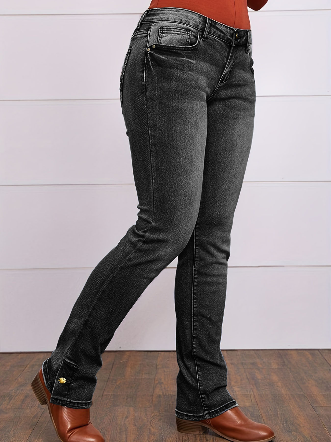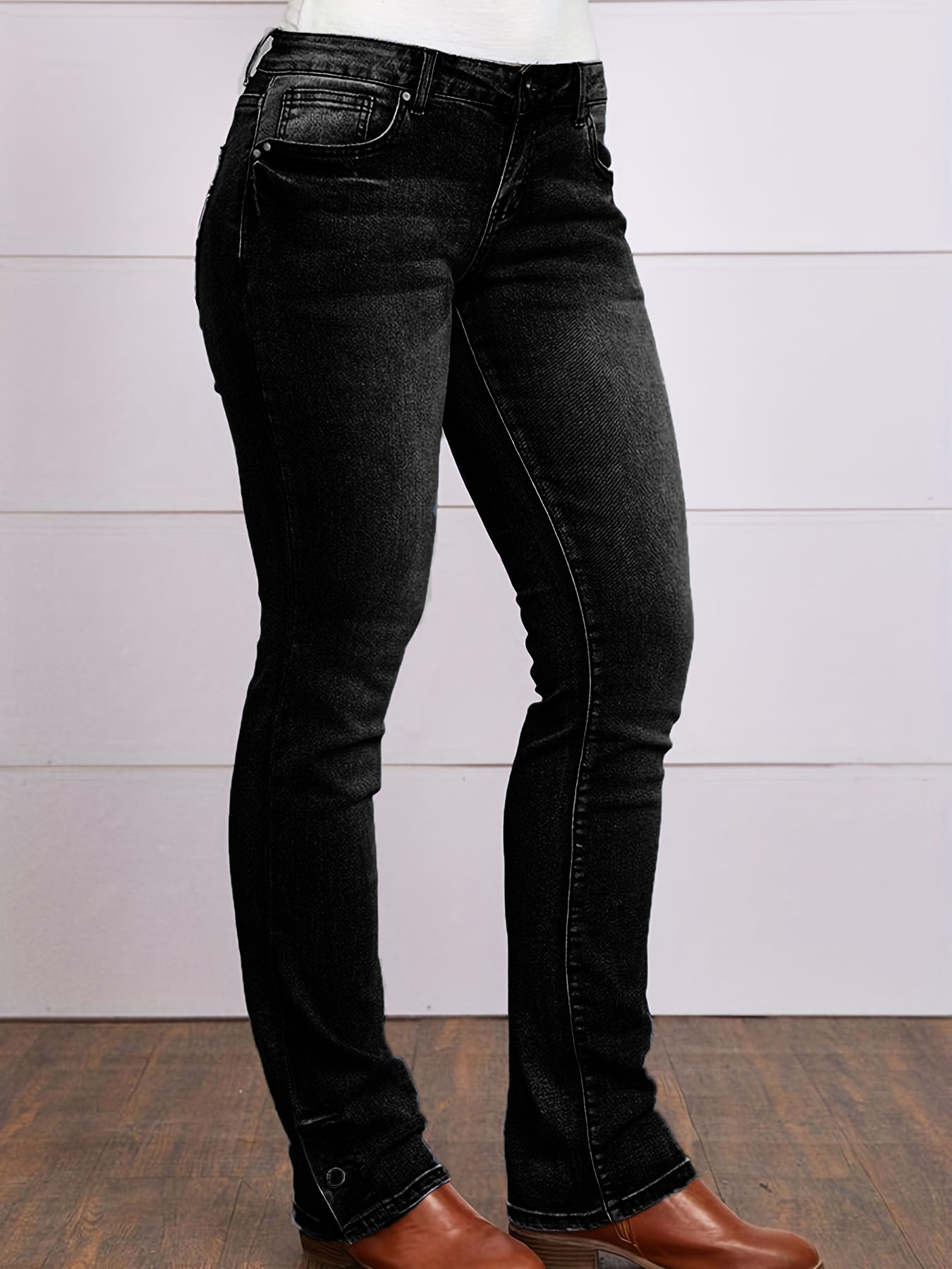 크로스보더 소스 유럽과 미국 심플 캐주얼 청바지 스트레치 슬림핏 스트레이트 데님 바지 여성용 자수 청바지스토어 가기