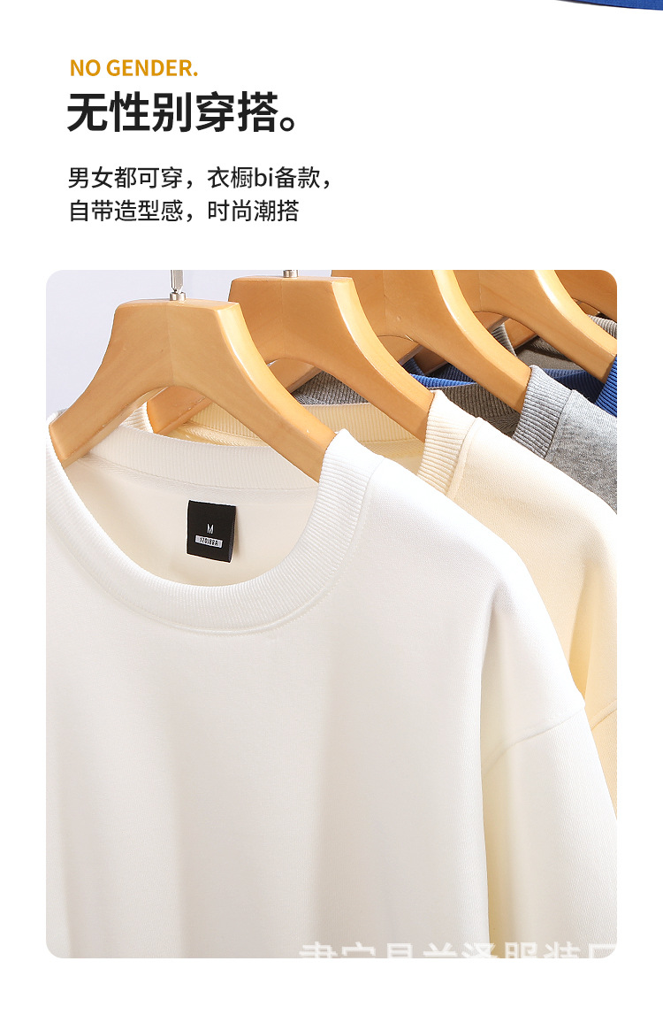 320g 건강 코튼 솔리드 컬러 라운드 넥 드롭 숄더 스웨터 느슨한 무거운면 재킷 도매 남성 및 여성베이스 풀오버스토어 가기