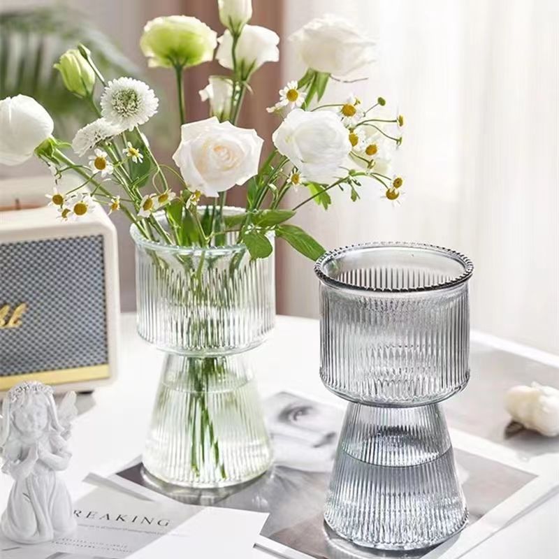가벼운 럭셔리 틈새 미니멀리스트 촛대 창조적 인 유리 꽃병 투명 수경 꽃 식탁 꽃 장식품 도매스토어 가기
