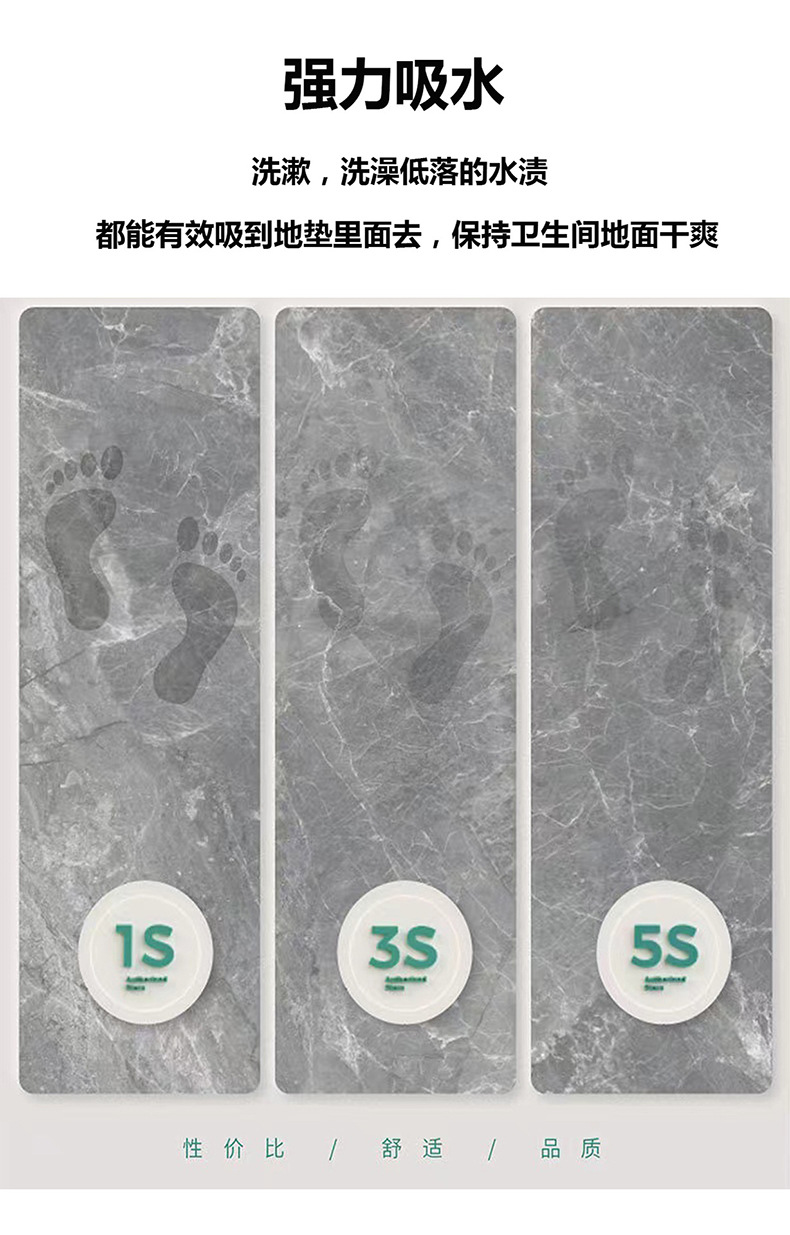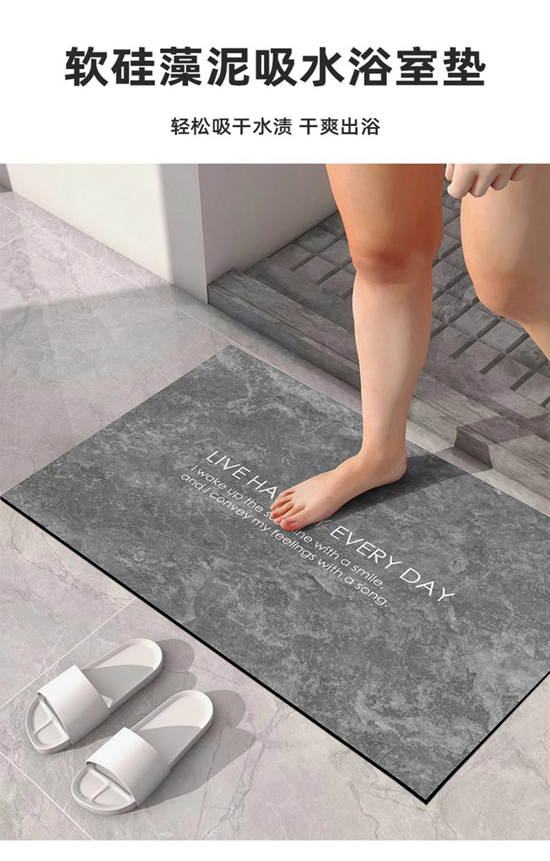 간단한 인쇄 흡수성 속건 화장실 욕실 미끄럼 방지 매트 화장실 문 규조 진흙 매트 머리카락 생성