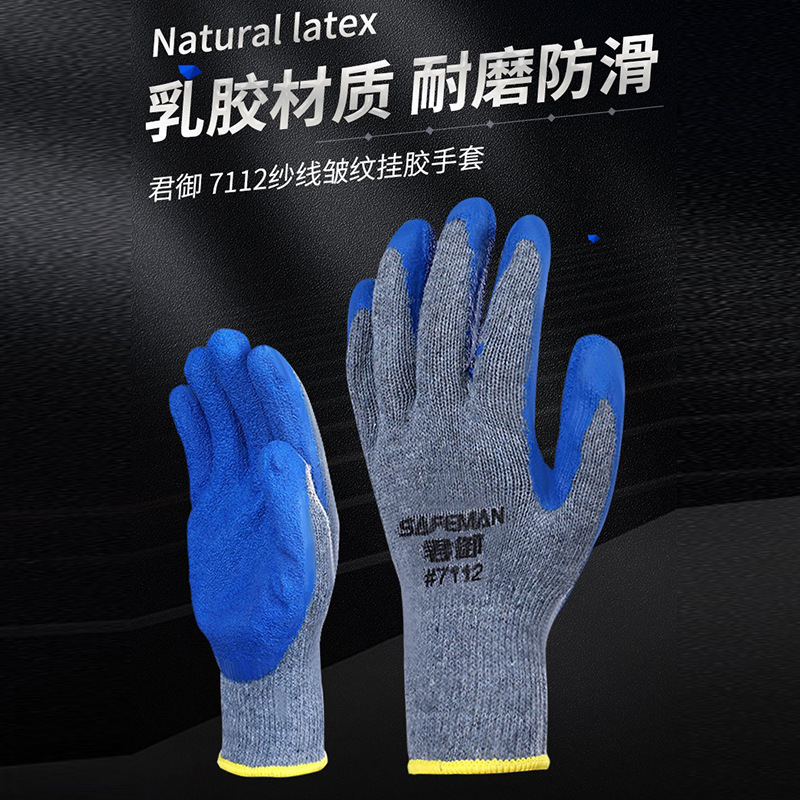 SAFEMAN Junyu 7112 원사 주름 장갑 (그레이 원사 블루) 면 원사 10 바늘 그레이 라텍스