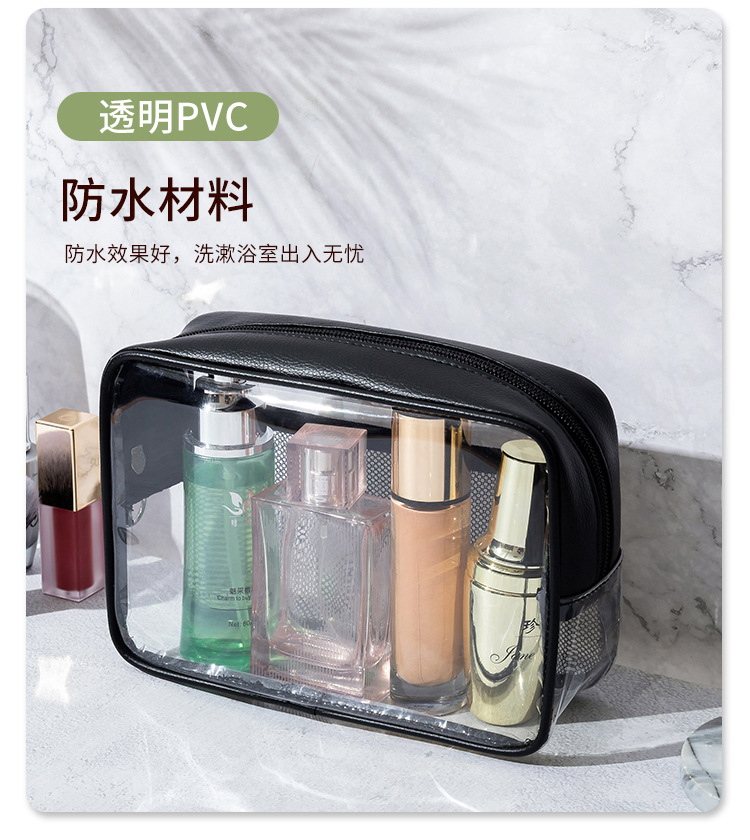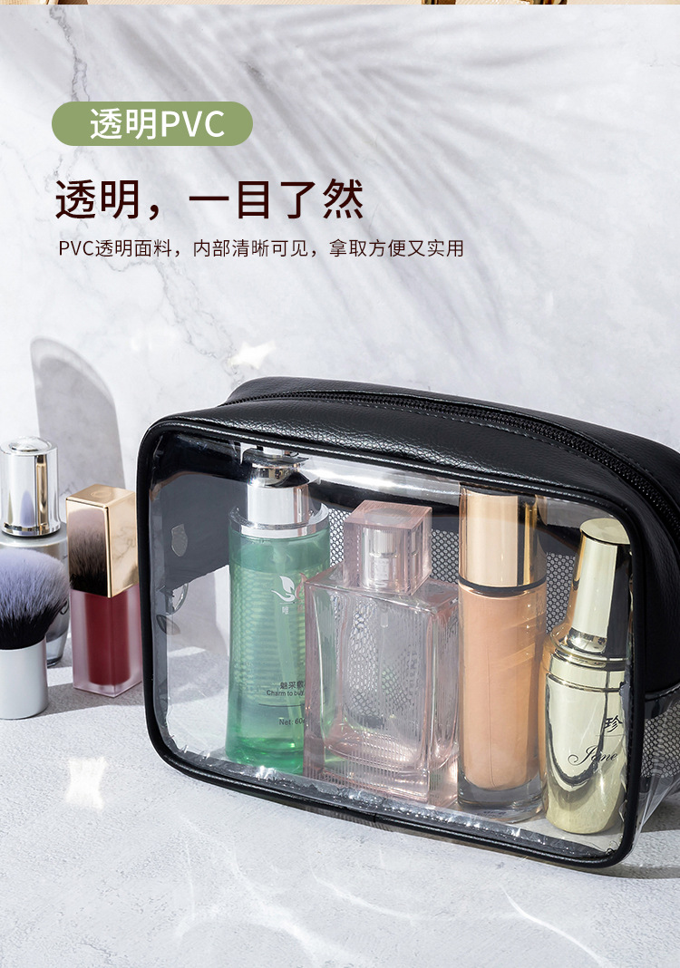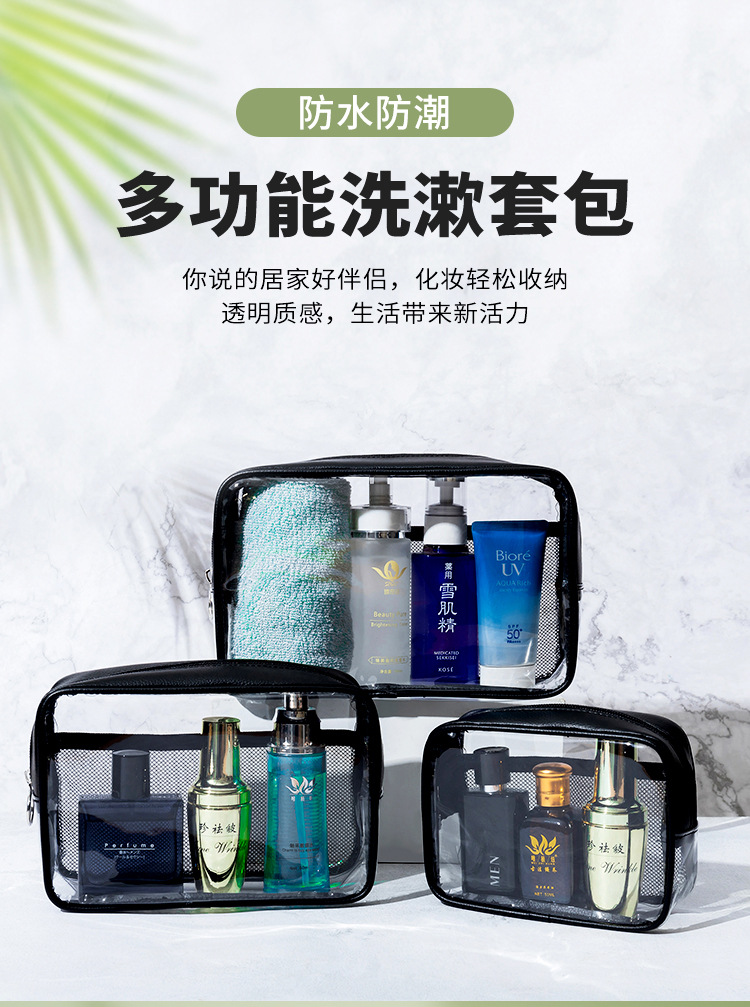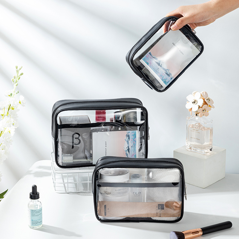 Pu 투명 3 피스 화장품 세면도구 가방 대용량 pvc 목욕 가방 블랙 휴대용 방수 여행 보관 가방스토어 가기