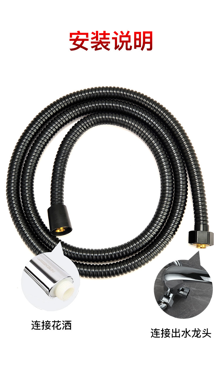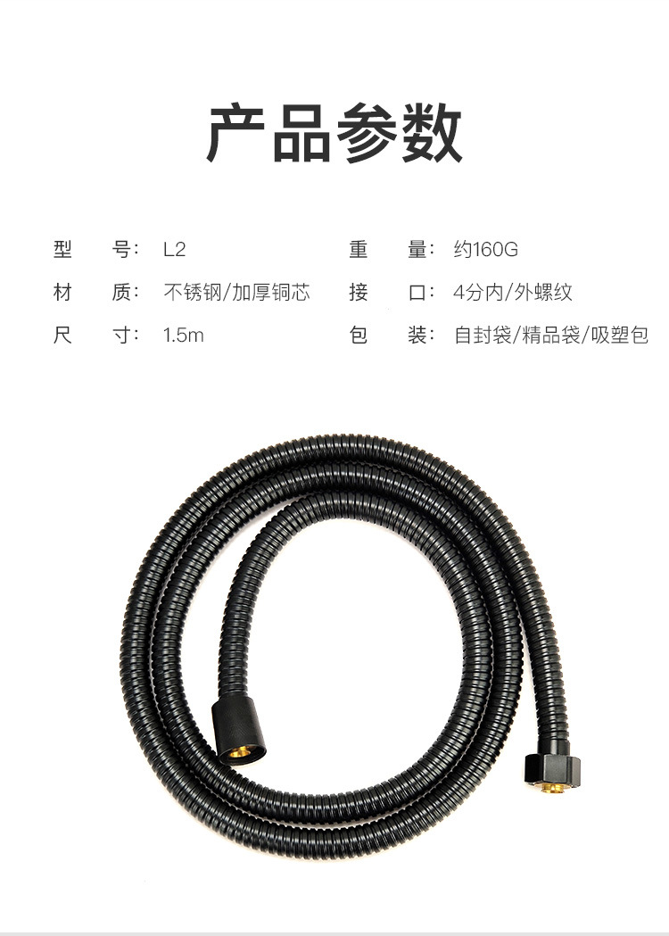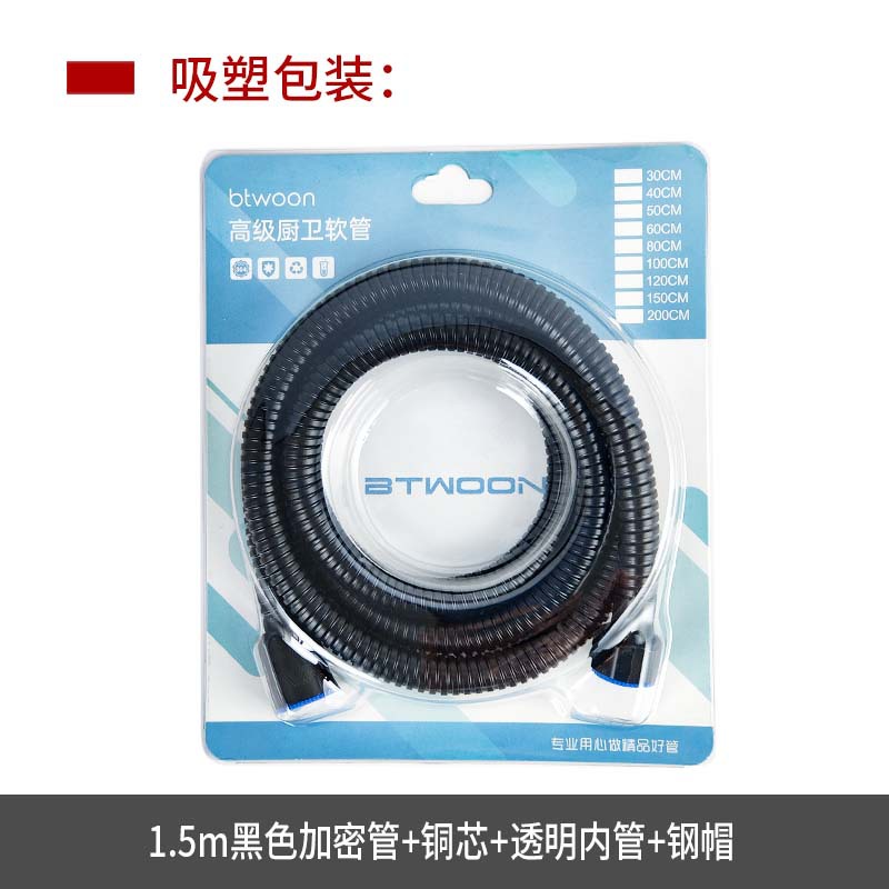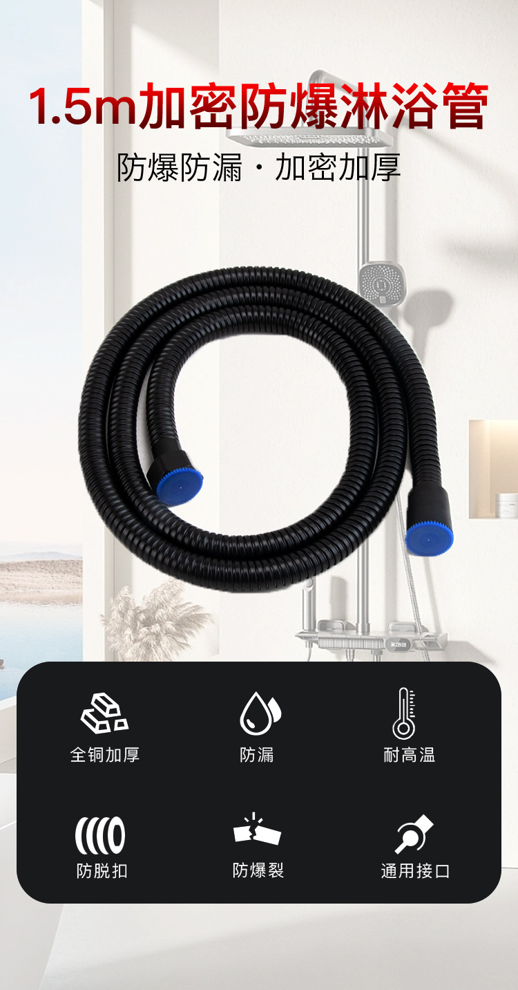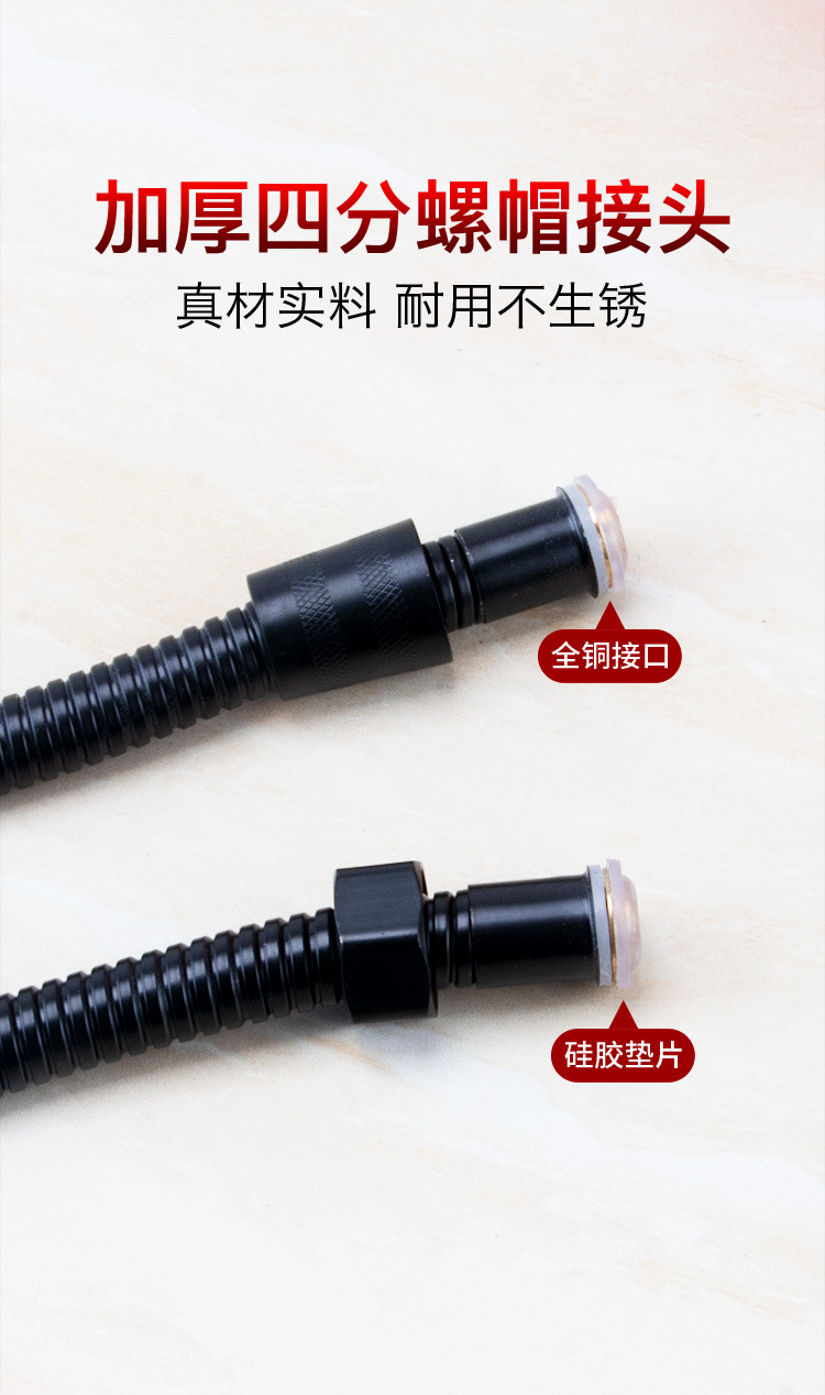 注:此款为1.5米黑色加密管,4分加密加厚通用接口,纯铜螺母,全铜加厚铜芯,厂价直销,支持验货!