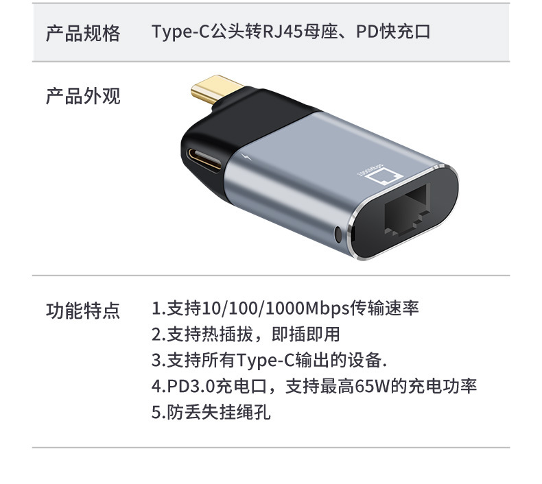 • Type-c 남성 + PD 고속 충전 포트 변환기에 네트워크 포트 암 RJ-45