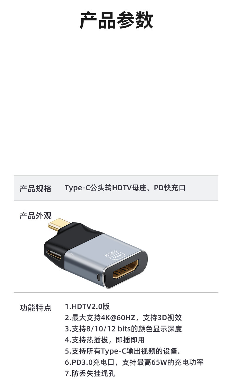 • HDTV 암-Type-c 남성 + PD 고속 충전 포트 변환기