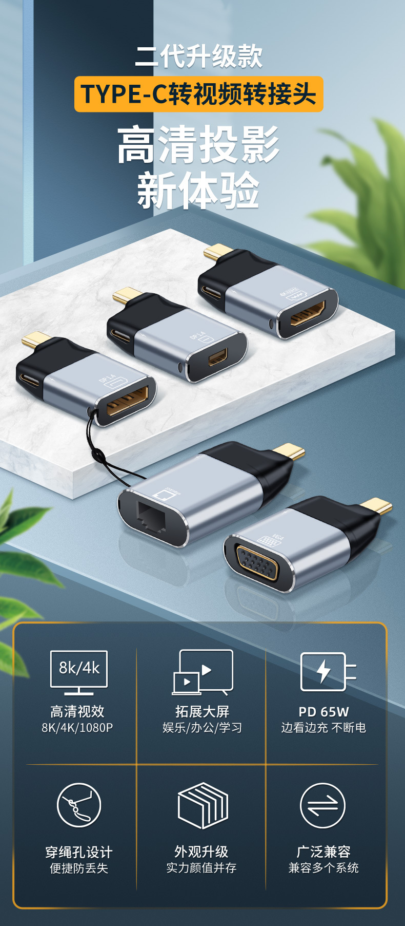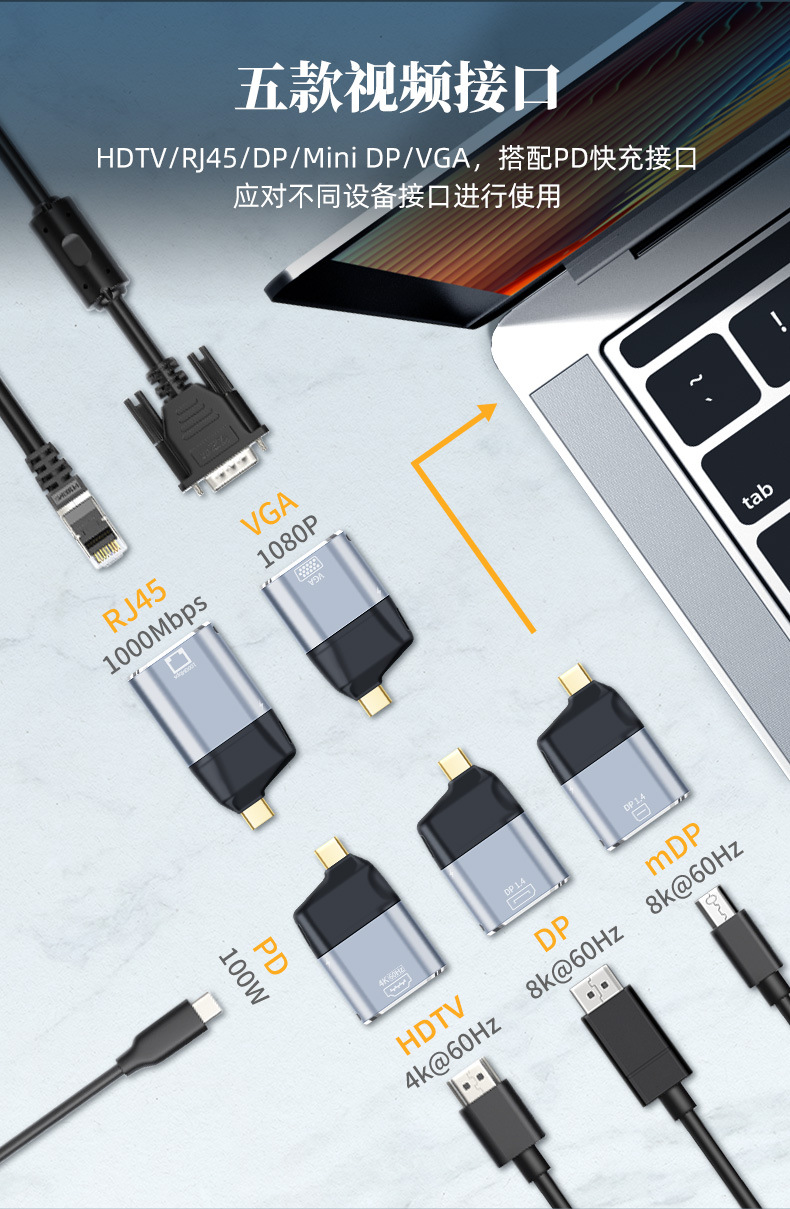 Apple 화웨이 삼성 노트북 용 Type-C에서 HDTV/VGA/DP/MiniDP/네트워크 포트 변환기