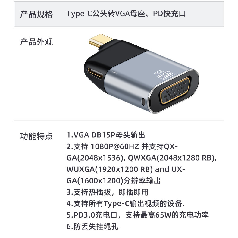 • VGA 암-Type-c 남성 + PD 고속 충전 포트 변환기