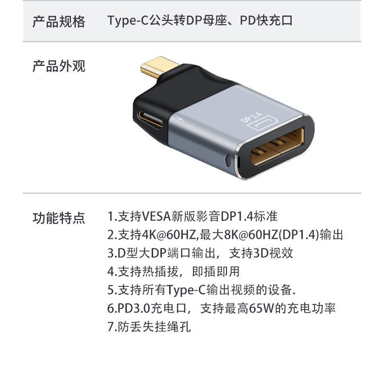 • DP 여성에서 Type-c 남성 + PD 고속 충전 포트 변환기