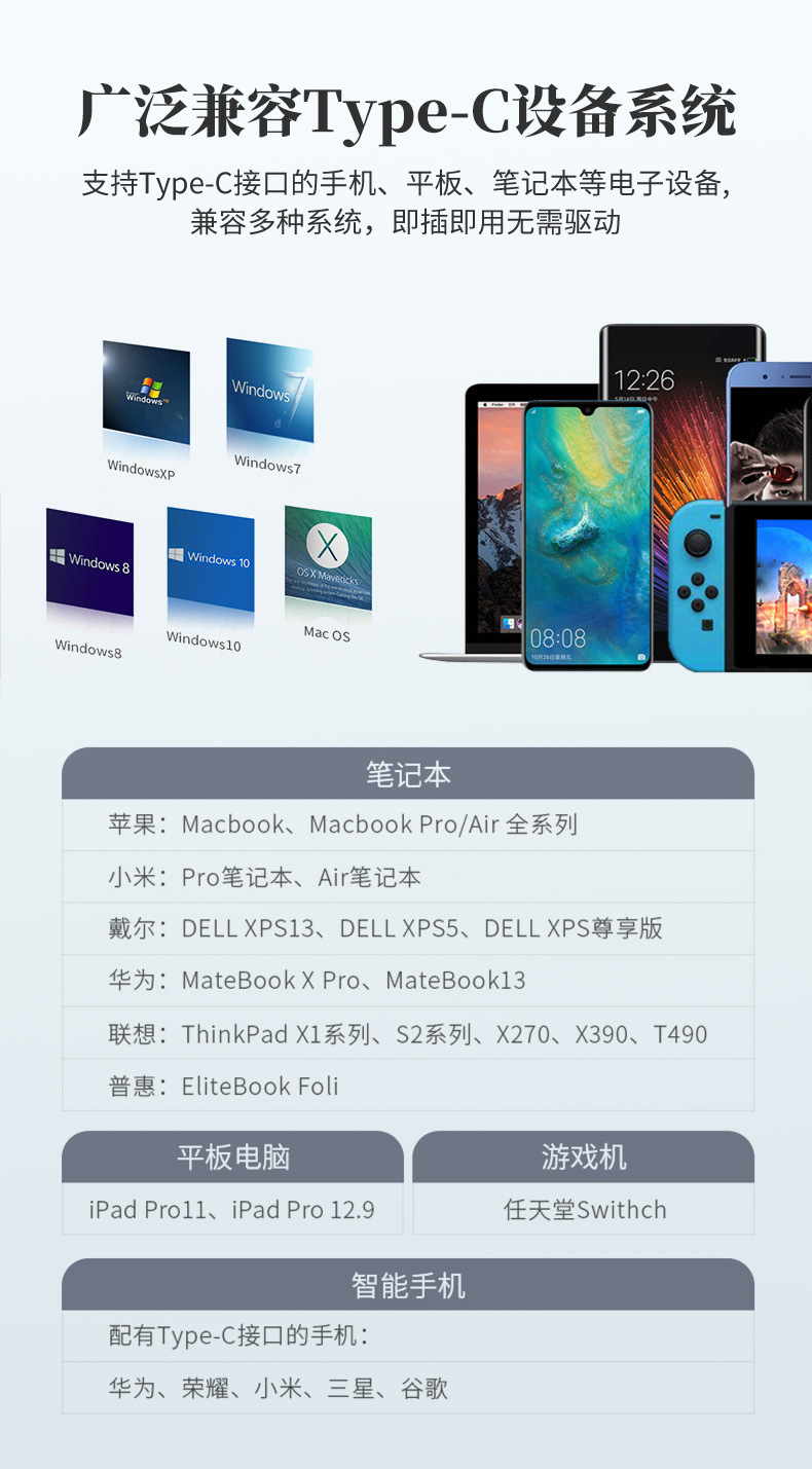 Apple 화웨이 삼성 노트북 용 Type-C에서 HDTV/VGA/DP/MiniDP/네트워크 포트 변환기스토어 가기