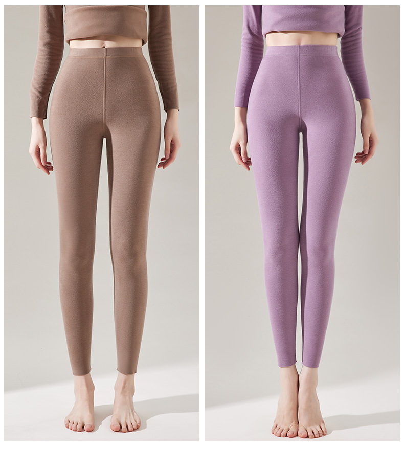 2024년 신상 여성용 니트 레깅스, 여성용 이너웨어, 로우 웨이스트, 가을 겨울용, 기모 및 두꺼운 무봉제 대형 사이즈 보온 팬츠스토어 가기