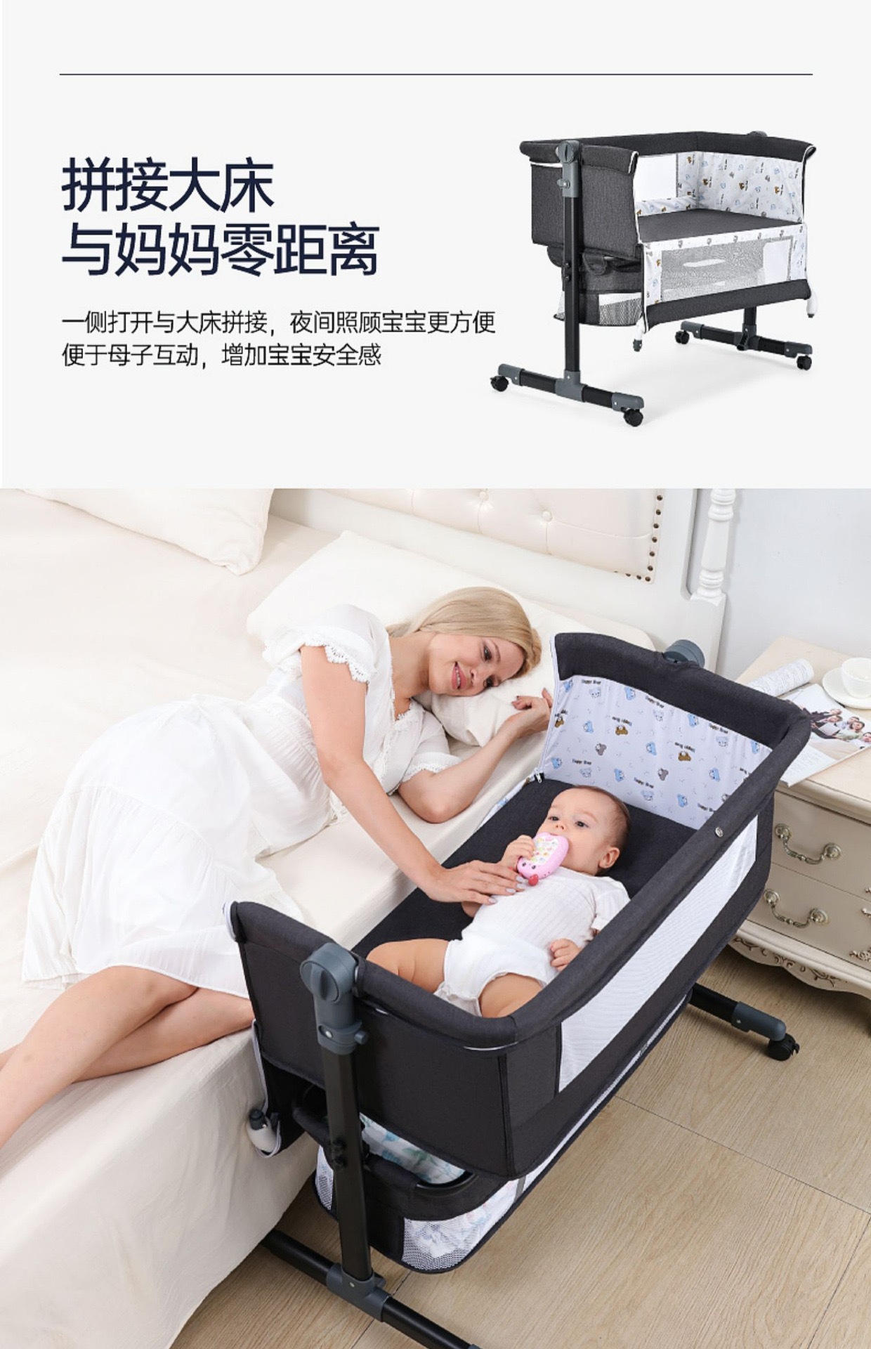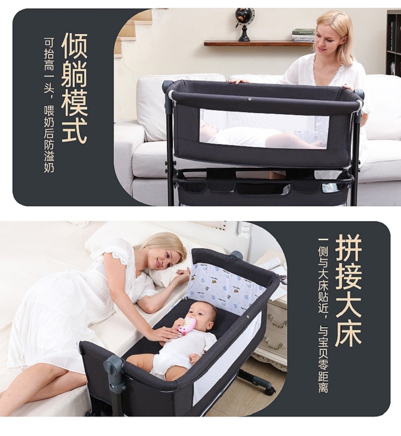 도매 유럽 스타일의 다기능 침대 접합 침대 요람 침대 접이식 모바일 아기 침대 리프팅 새로운 생활스토어 가기