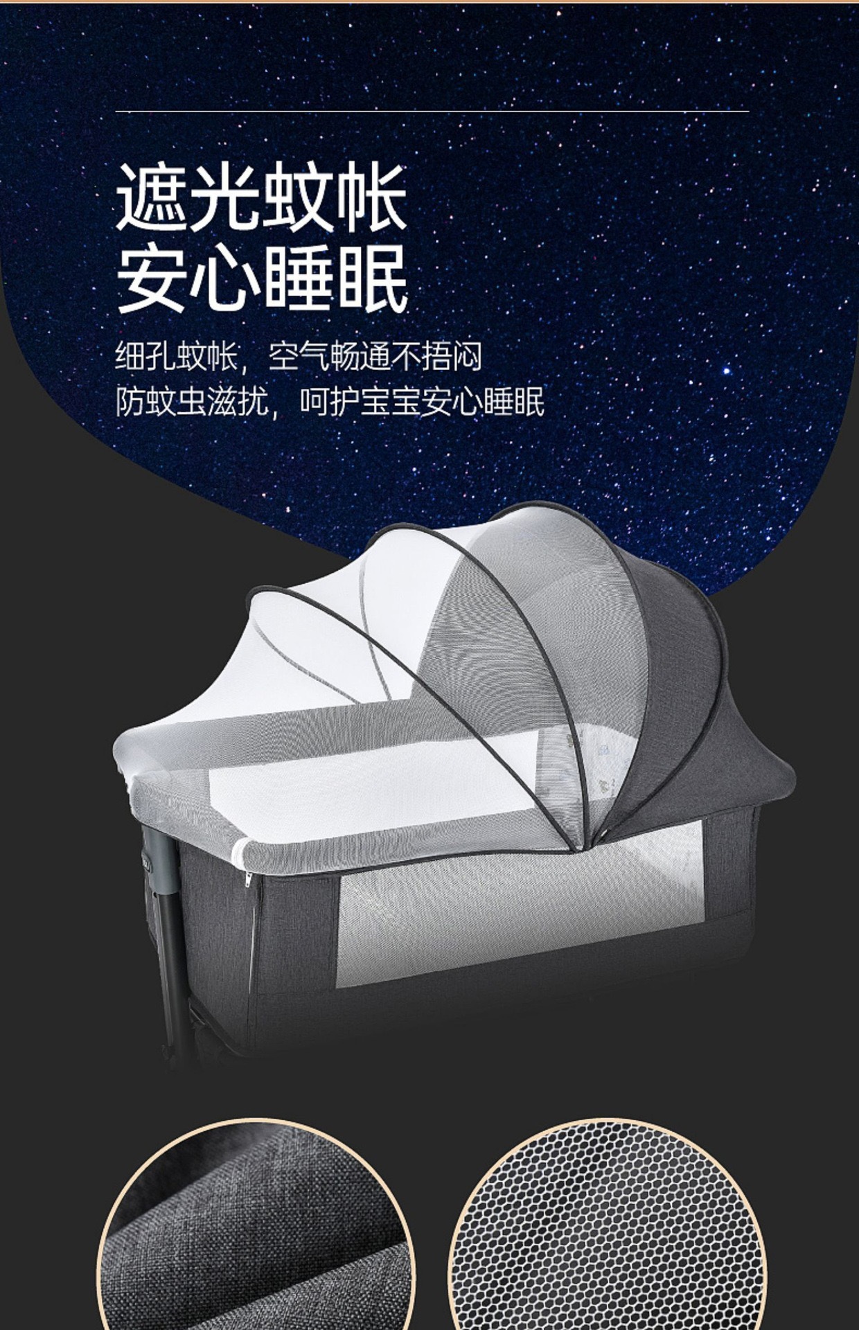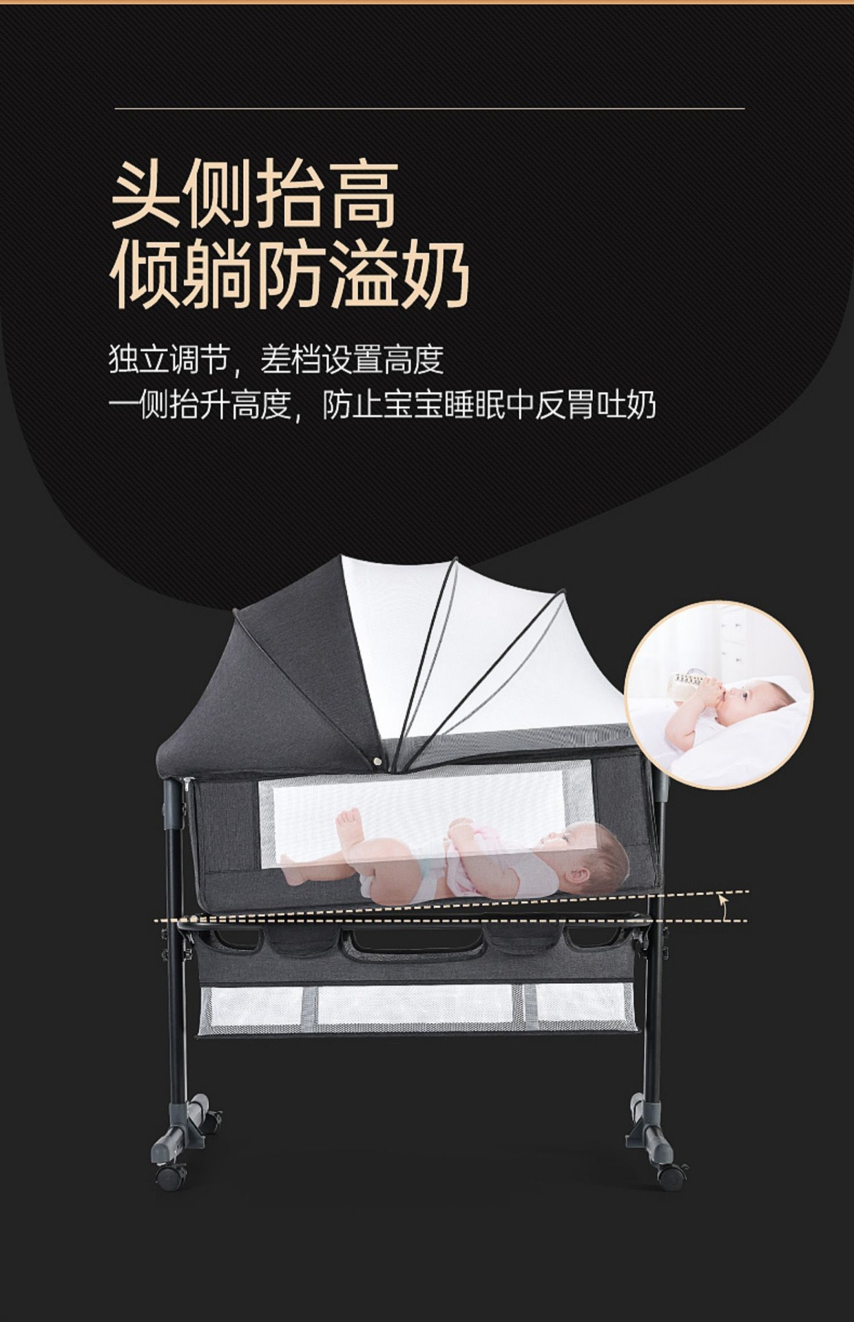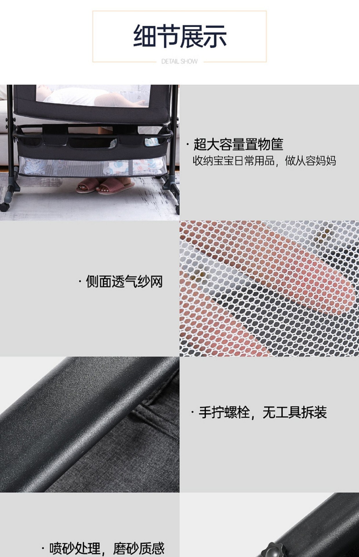• 기본 구성 = 매트리스 + 하단 바구니 + 모기장