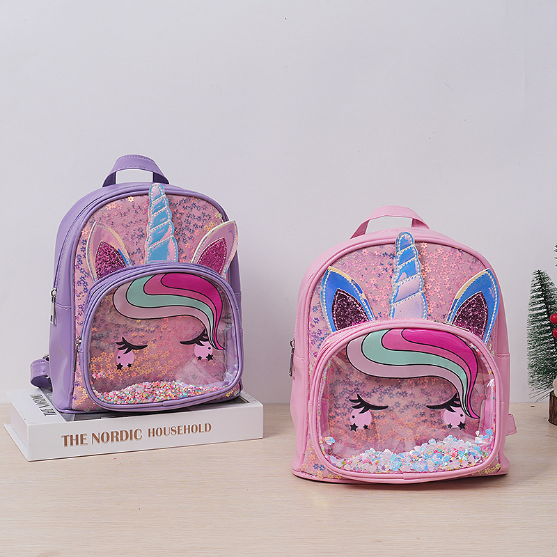 새로운 만화 유니콘 배낭 패션 PVC 스팽글 가루 유행 배낭 pu 귀여운 어린이 책가방스토어 가기