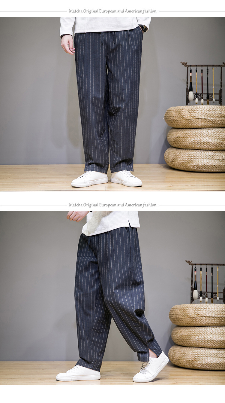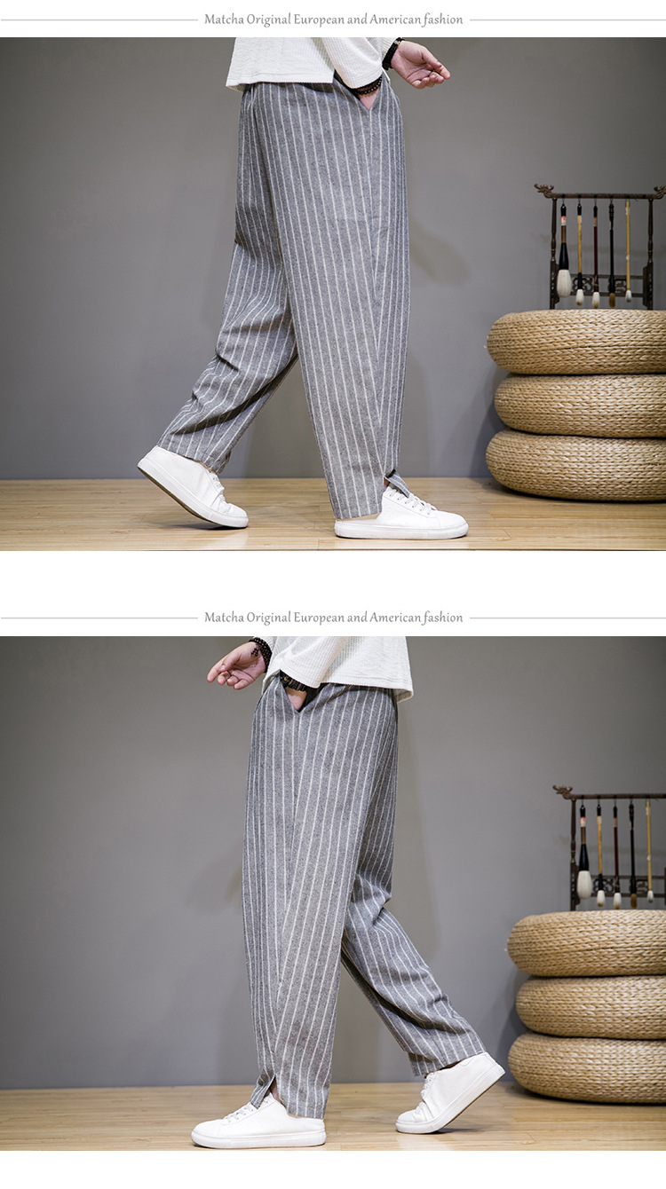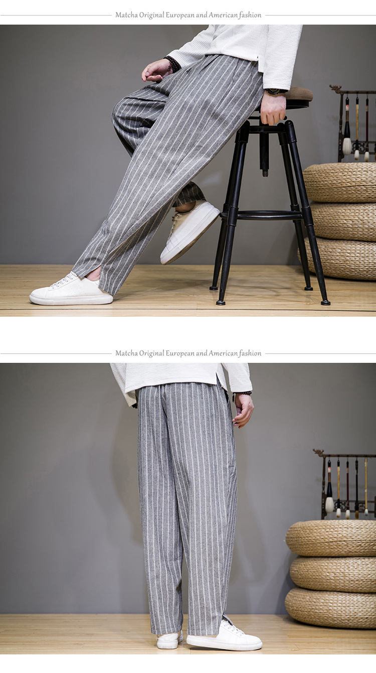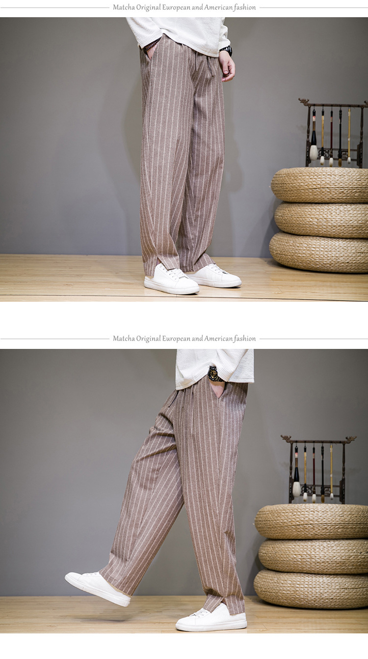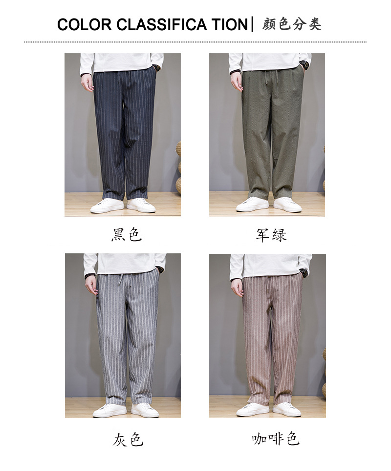 대외 무역 남자의 가을 면 린넨 스트라이프 느슨한 캐주얼 남성 바지 2022 청소년 바지 다리 플러스 사이즈 스트레이트 바지