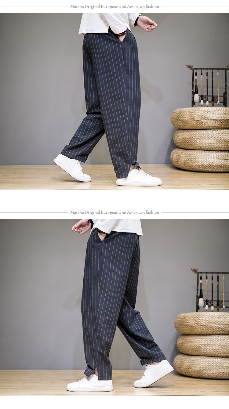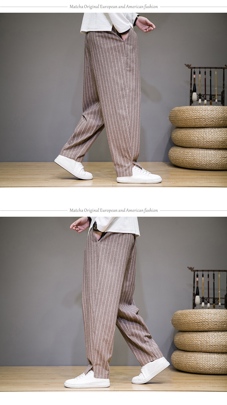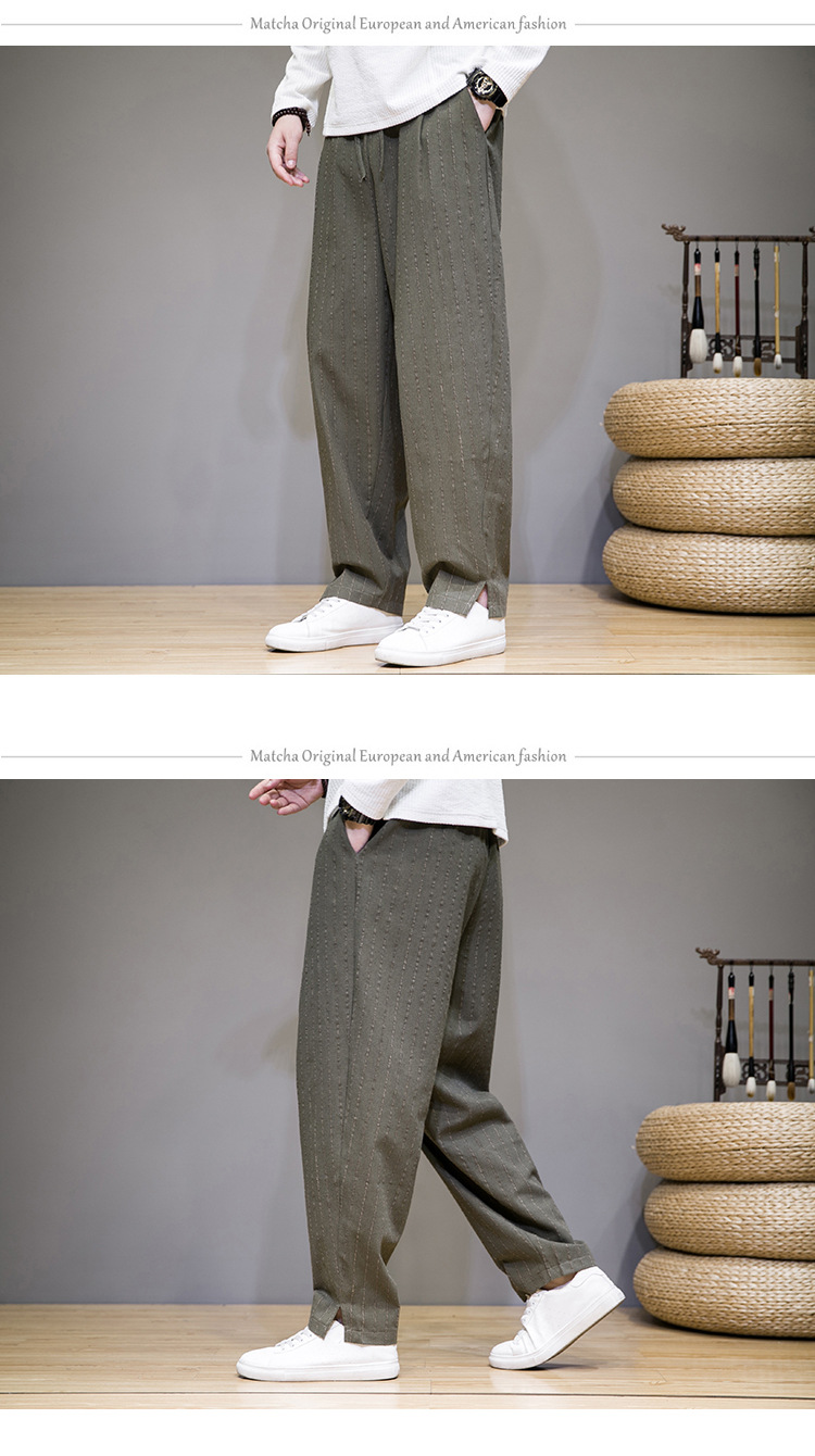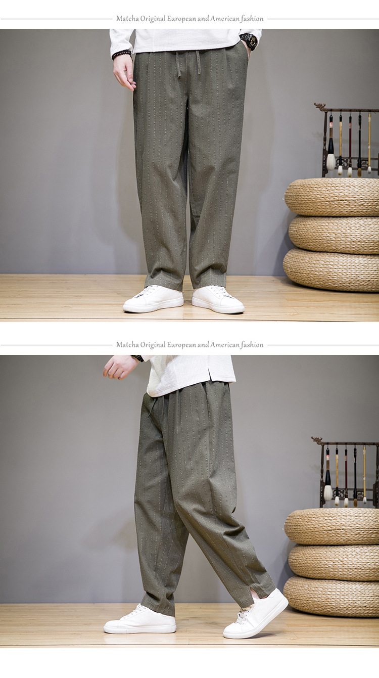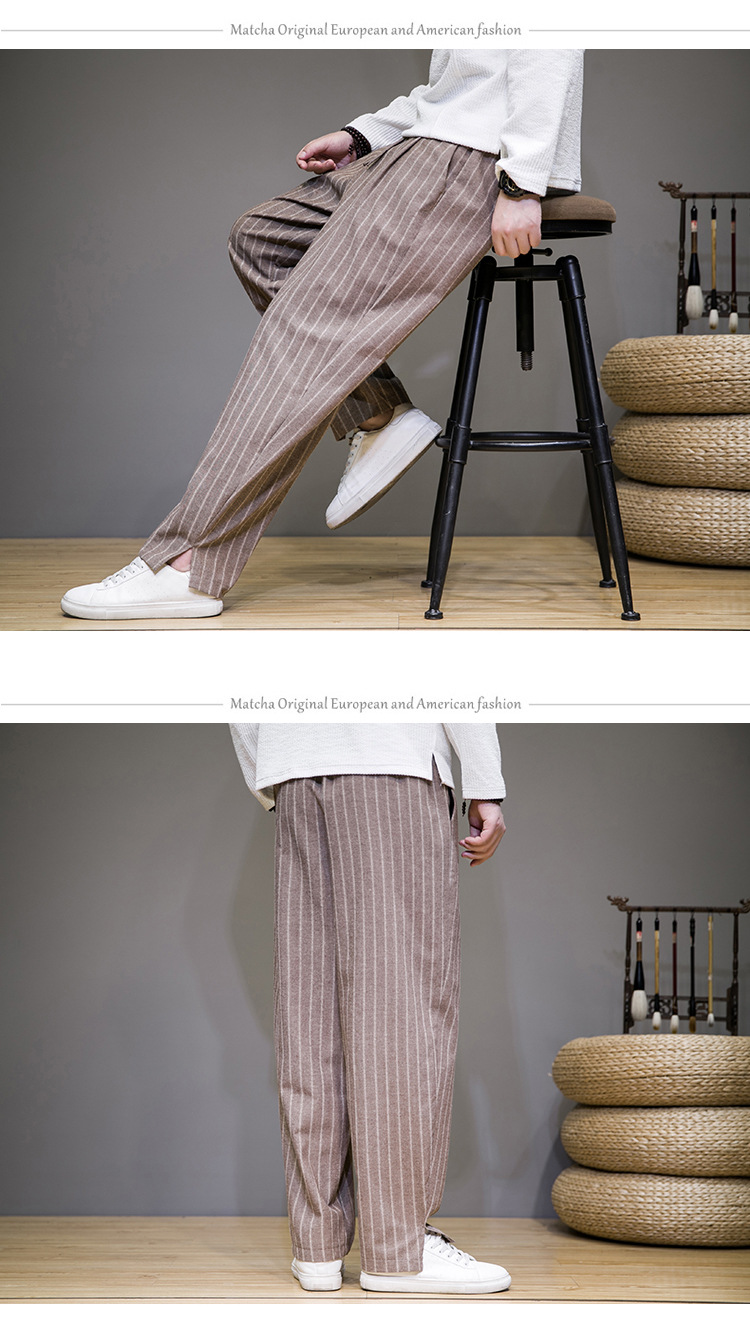 대외 무역 남자의 가을 면 린넨 스트라이프 느슨한 캐주얼 남성 바지 2022 청소년 바지 다리 플러스 사이즈 스트레이트 바지