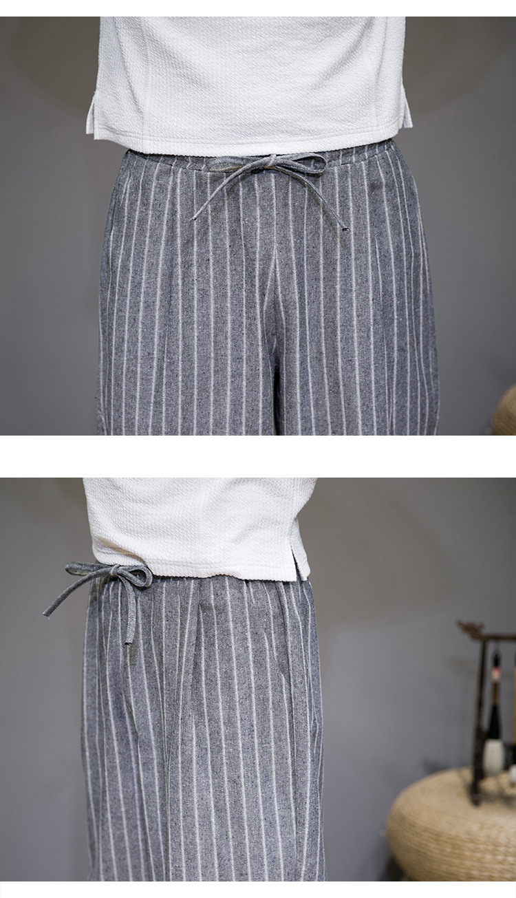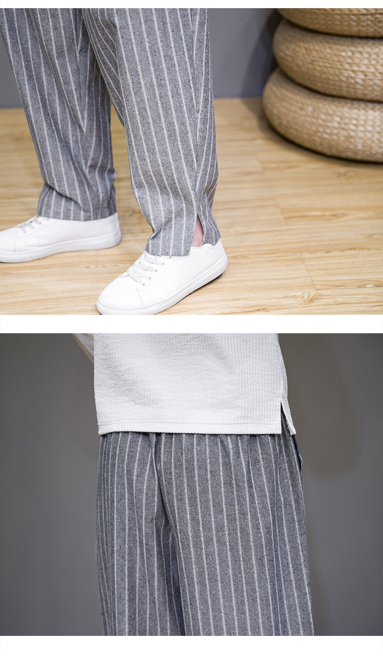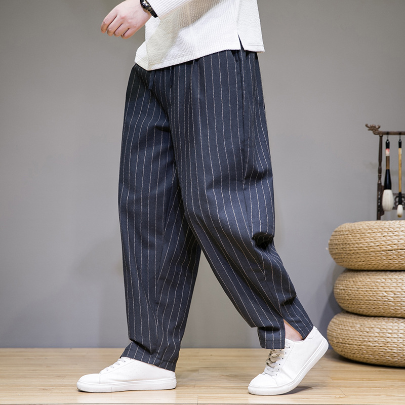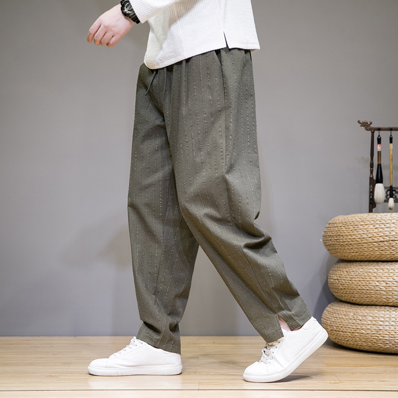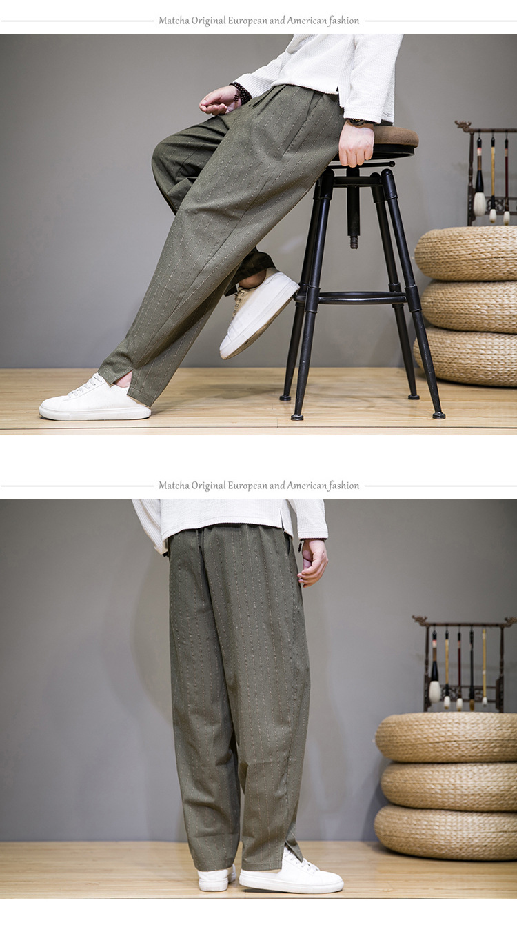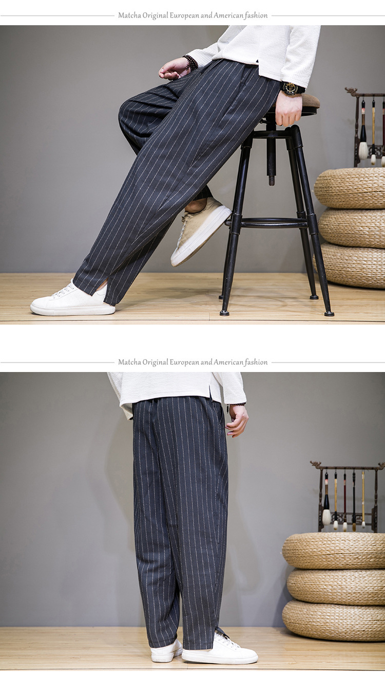 대외 무역 남자의 가을 면 린넨 스트라이프 느슨한 캐주얼 남성 바지 2022 청소년 바지 다리 플러스 사이즈 스트레이트 바지