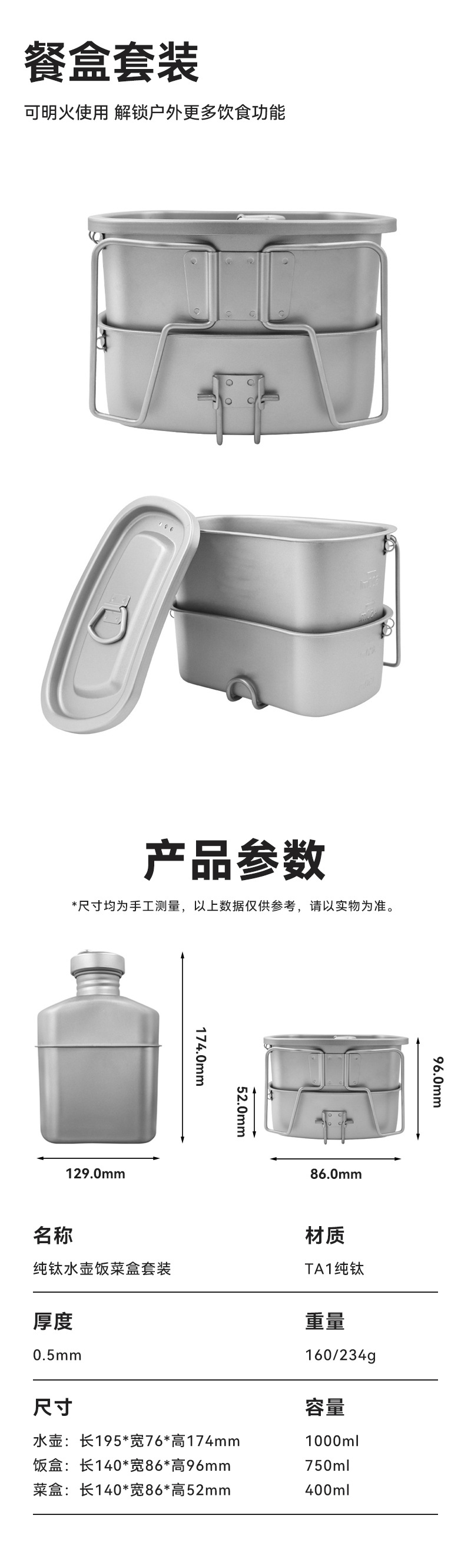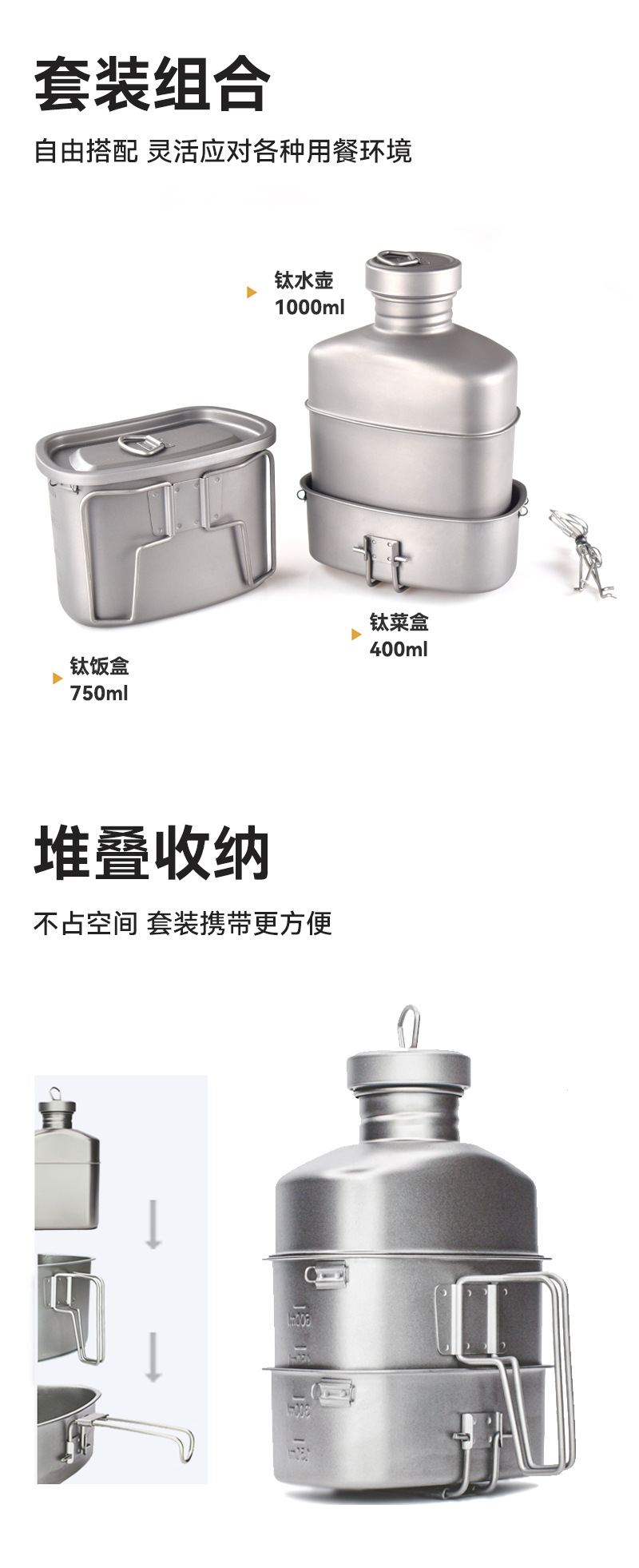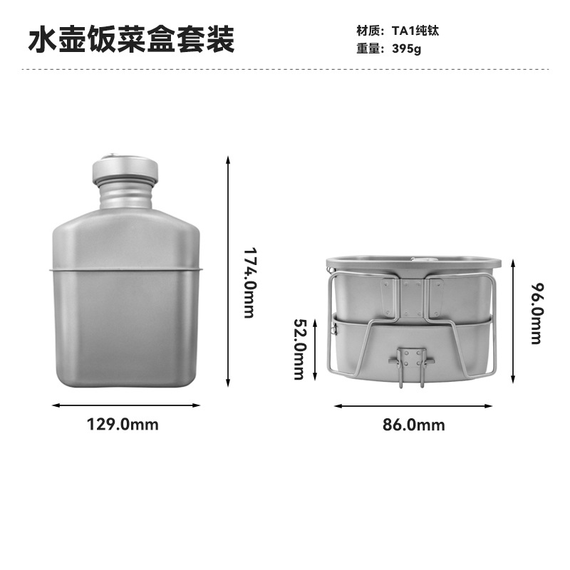 순수 티타늄 물병 도시락 세트 경량 휴대용 접이식 다기능 두꺼운 야외 캠핑 가정용 해외 도매스토어 가기