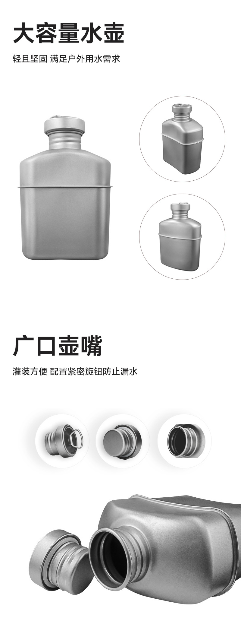 순수 티타늄 물병 도시락 세트 경량 휴대용 접이식 다기능 두꺼운 야외 캠핑 가정용 해외 도매