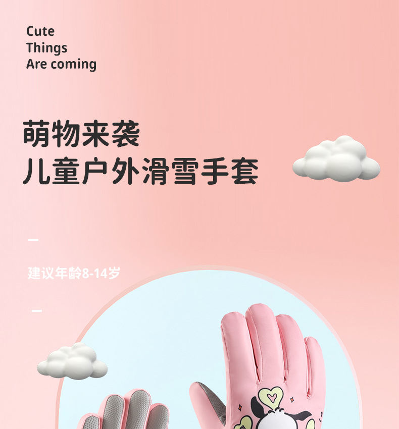 겨울 어린이 스키 장갑 야외 플러스 벨벳 따뜻한 터치 스크린 방수 만화 7 ~ 13 세 스키 장갑