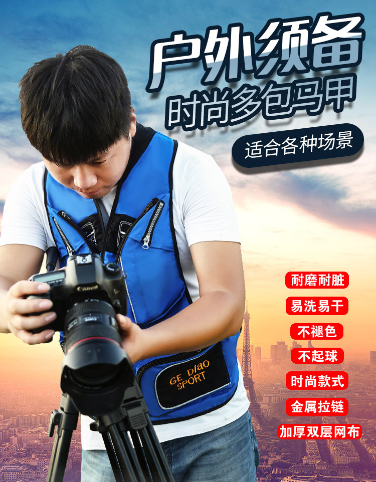 야외 등산 사진 도구 조끼 주문 가능 로고 텍스트 캐주얼 조끼 남성용 통기성 낚시 대형 포켓 조끼스토어 가기