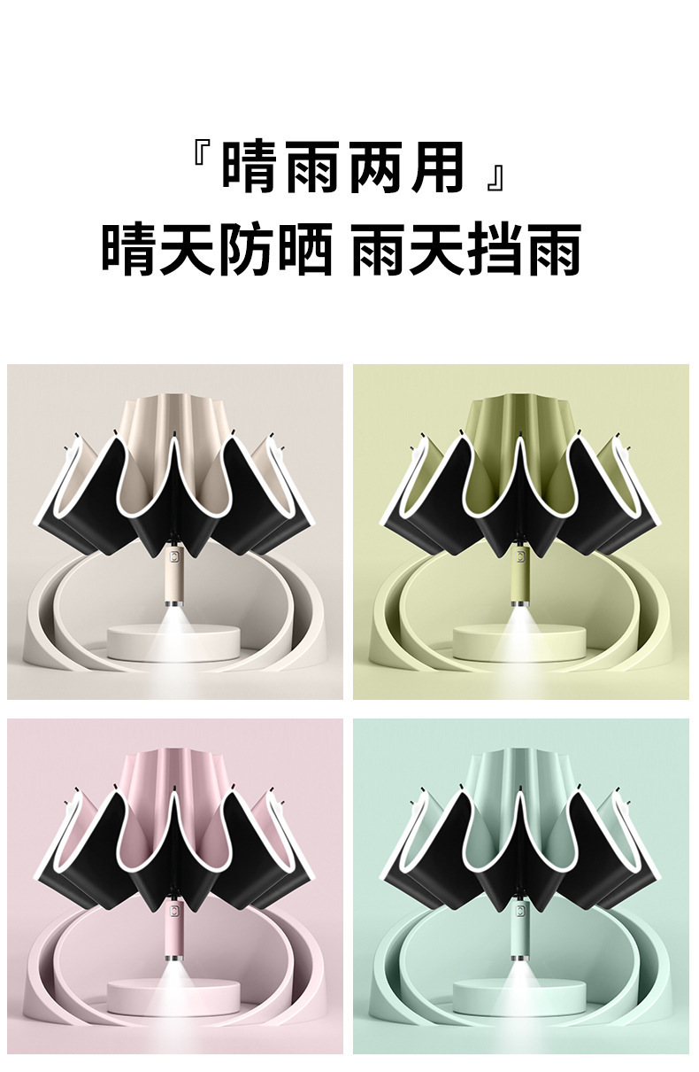 LED 자동 후진 초대형 우산 남녀공용 접이식 대형 자동차 후진 태양 우산 맑고 비오는 이중 사용 태양 보호