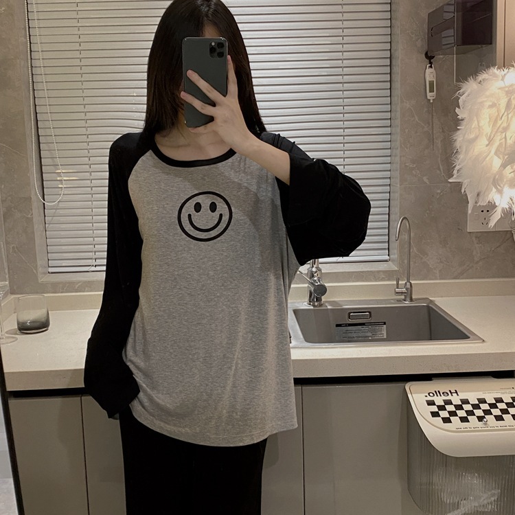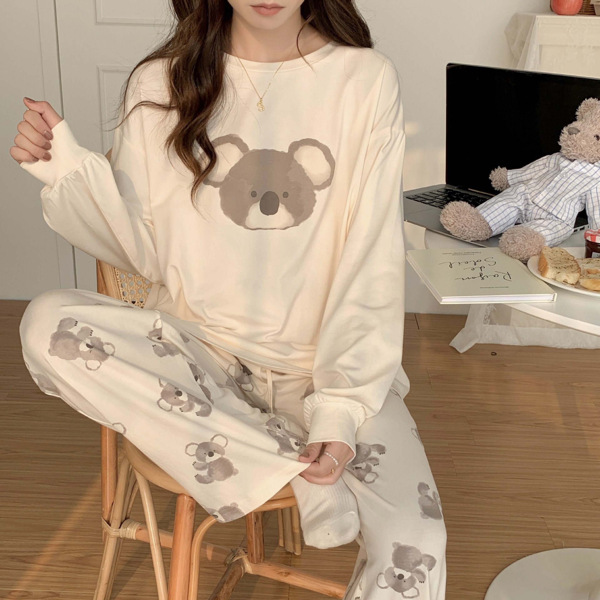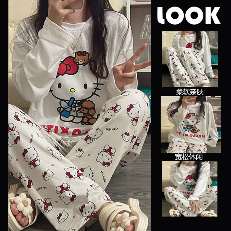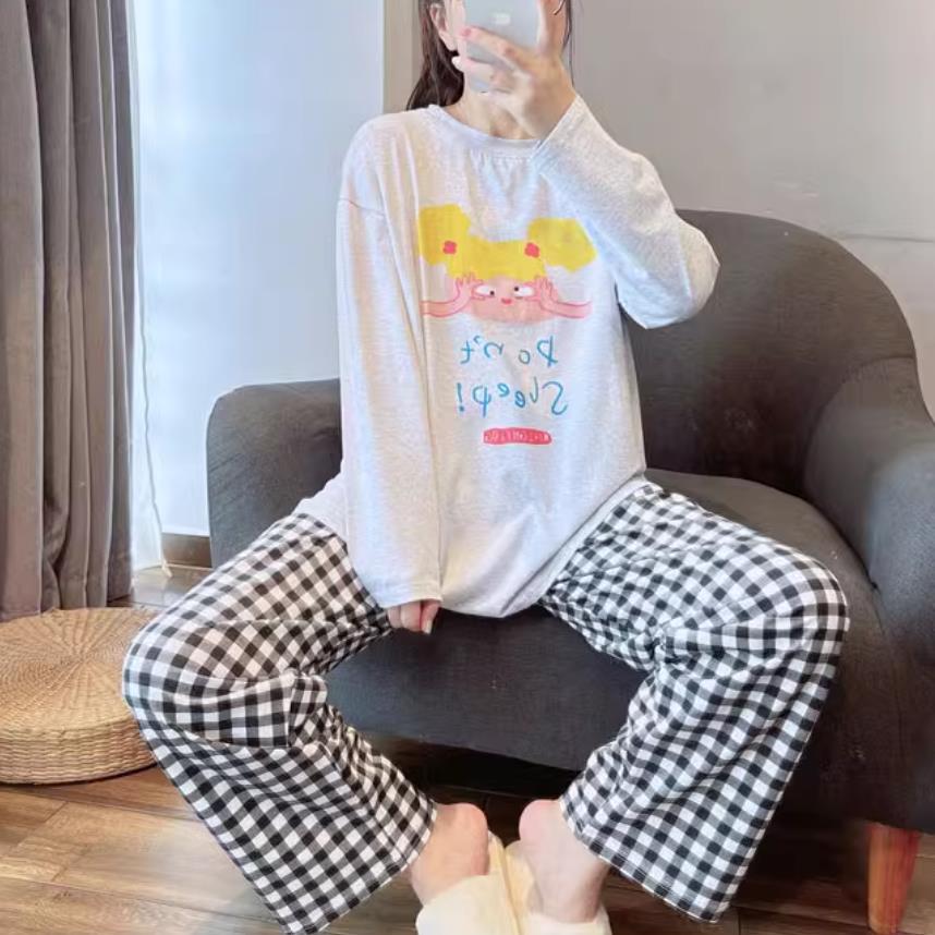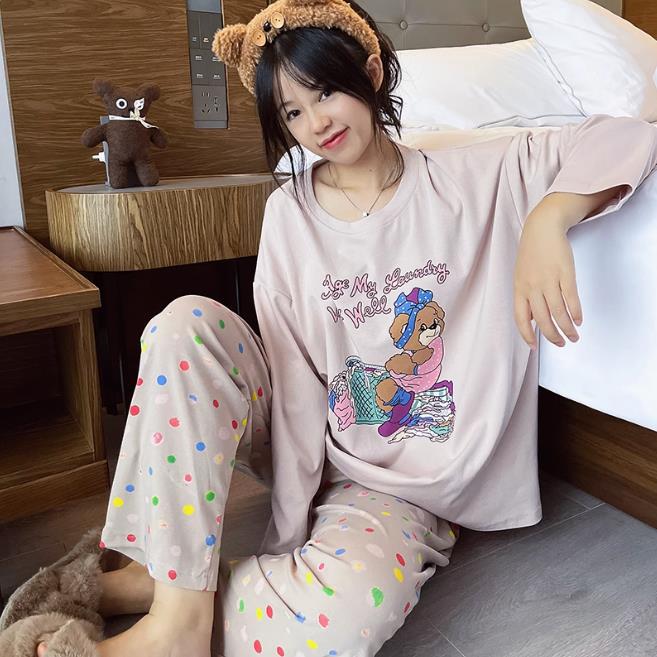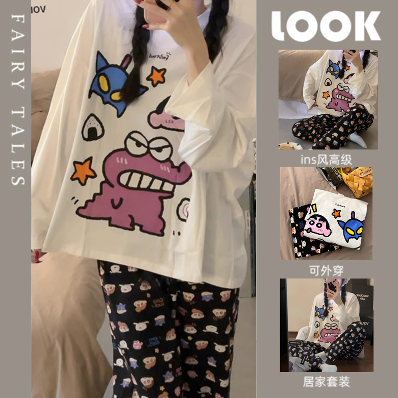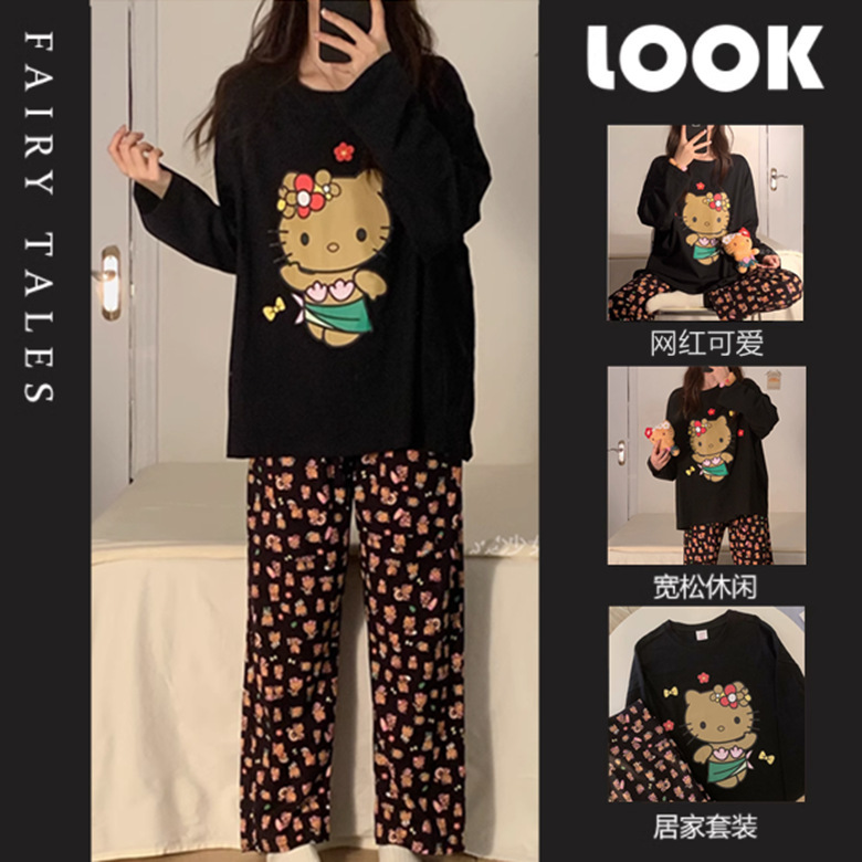느슨한 만화 긴 소매 잠옷의 새로운 가을 한국어 버전 여성 한국 달콤한 소녀 홈 의류 세트 대외 무역 도매스토어 가기