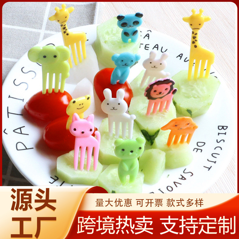 어린이 만화 과일 포크 일회용 도시락 세트 애니메이션 일본식 과일 간판 기린 동물 포크 세트