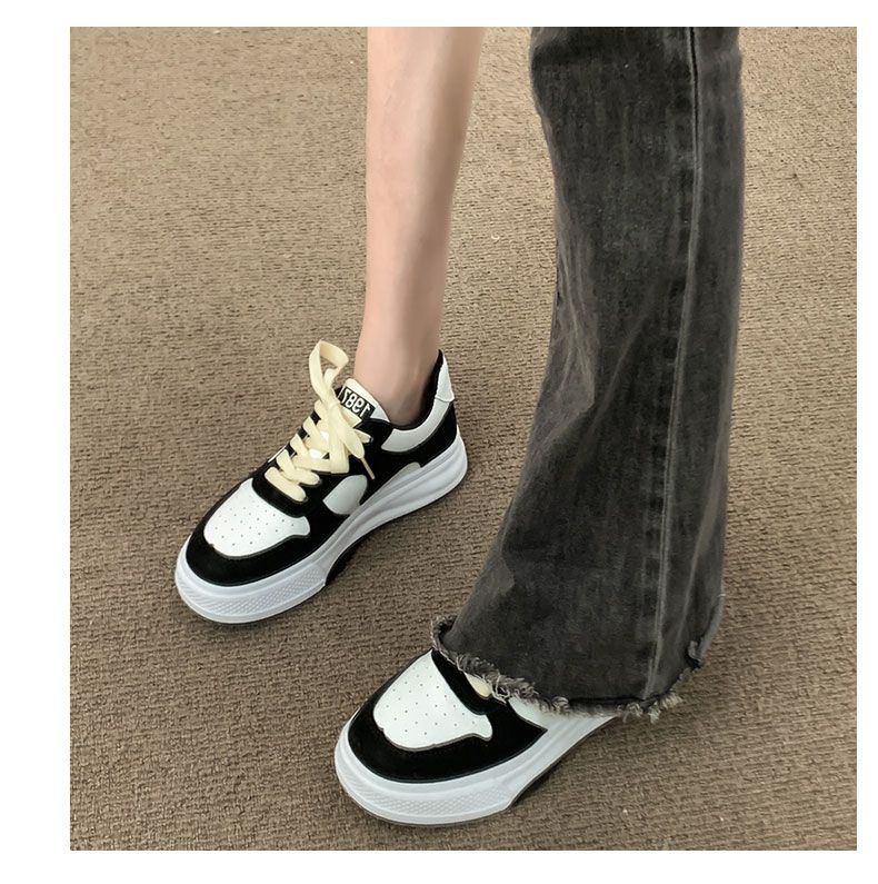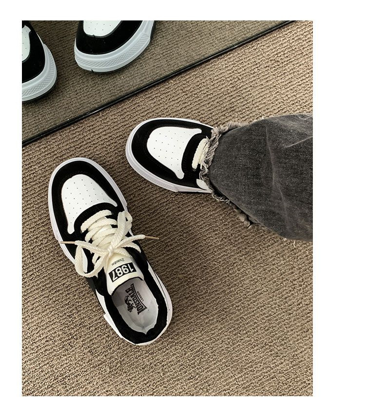 여성용 스니커즈 봄 두꺼운 밑창 2025년 신상 인스 트렌드 흑백 팬더 컬러 다용도 캐주얼 운동화스토어 가기