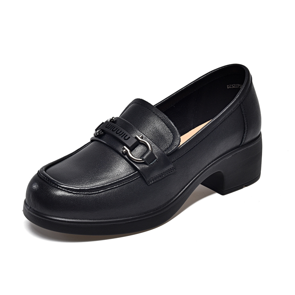 여성을위한 둥근 발가락 슬립 온 로퍼 2021 봄 첫 번째 레이어 소 가죽 금속 버클 두꺼운 뒤꿈치 단일 신발 작은 가죽 신발 실제 전용
