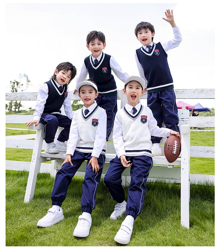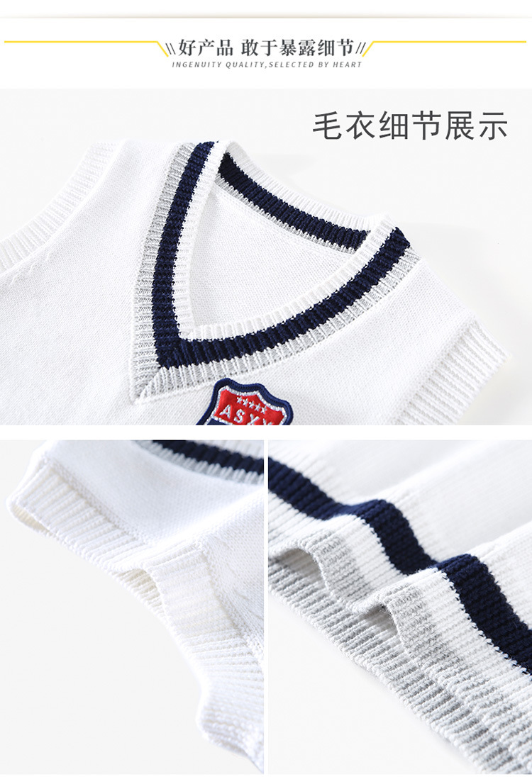 • 니트 코튼 바지 + 흑백 조끼 + 인치 셔츠