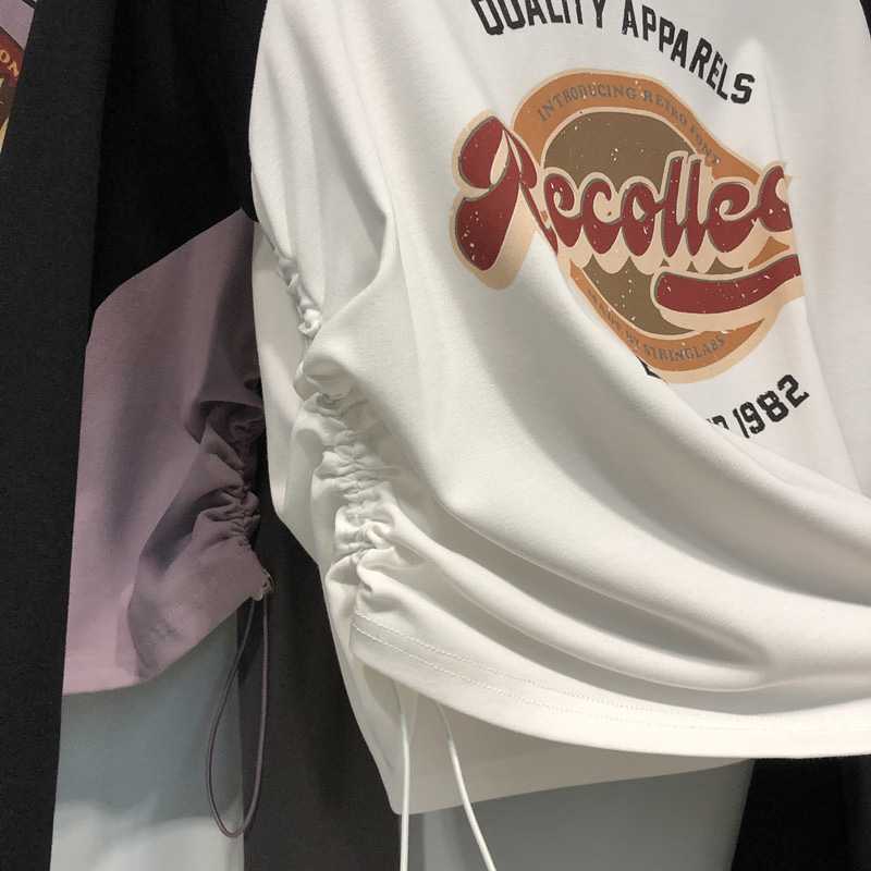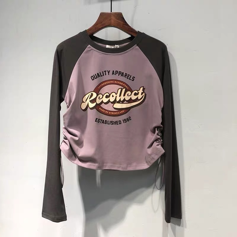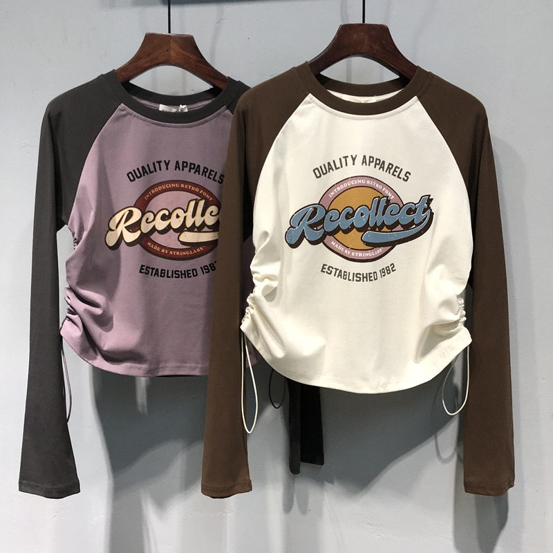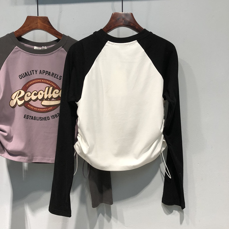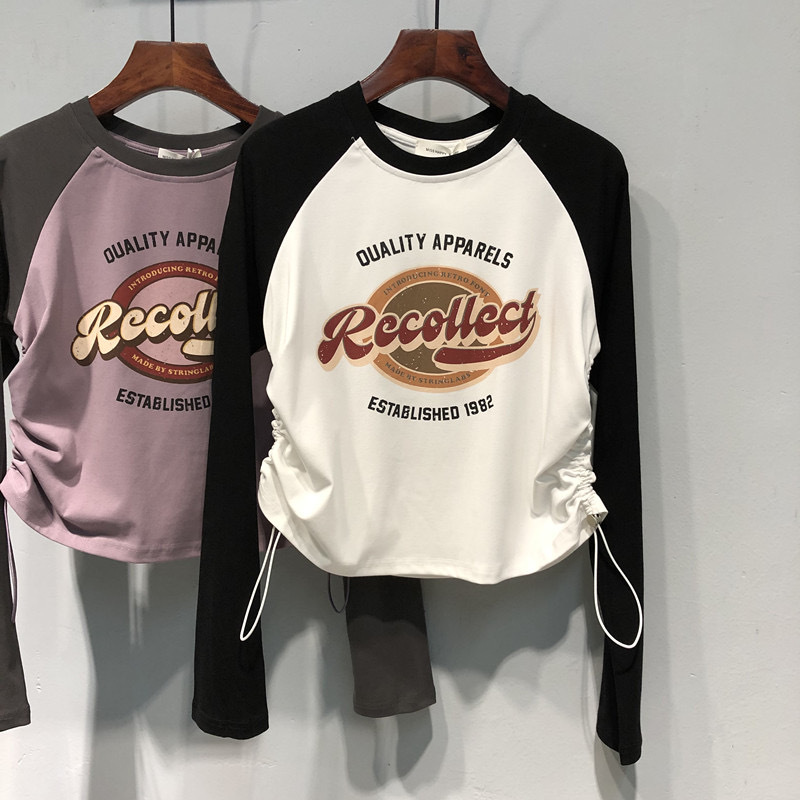 여아 봄과 가을 한글 프린트 긴팔 티셔츠 슬림핏 드로스트링 미들 및 빅 아동용 베이스 셔츠 대비 라운드 넥 탑스토어 가기
