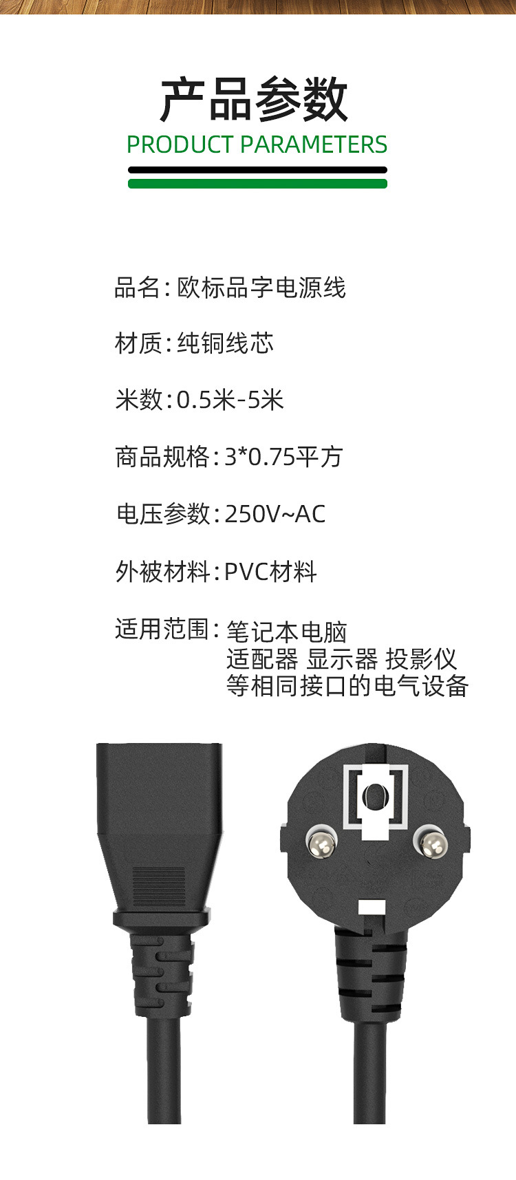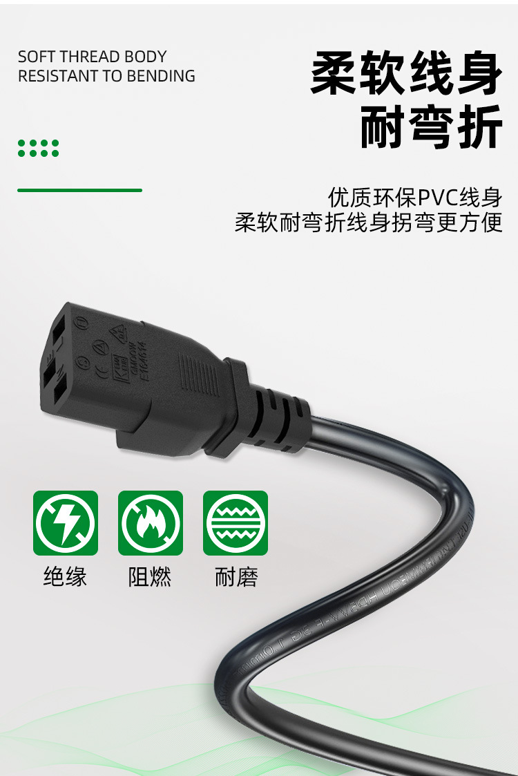 유럽 표준 플러그 케이블, 유럽 표준 각진/직선형 전원 케이블, IEC(인터내셔널 전기위원회) 표준 컴퓨터 케이스 케이블, 구리 피복 알루미늄 고온 내성