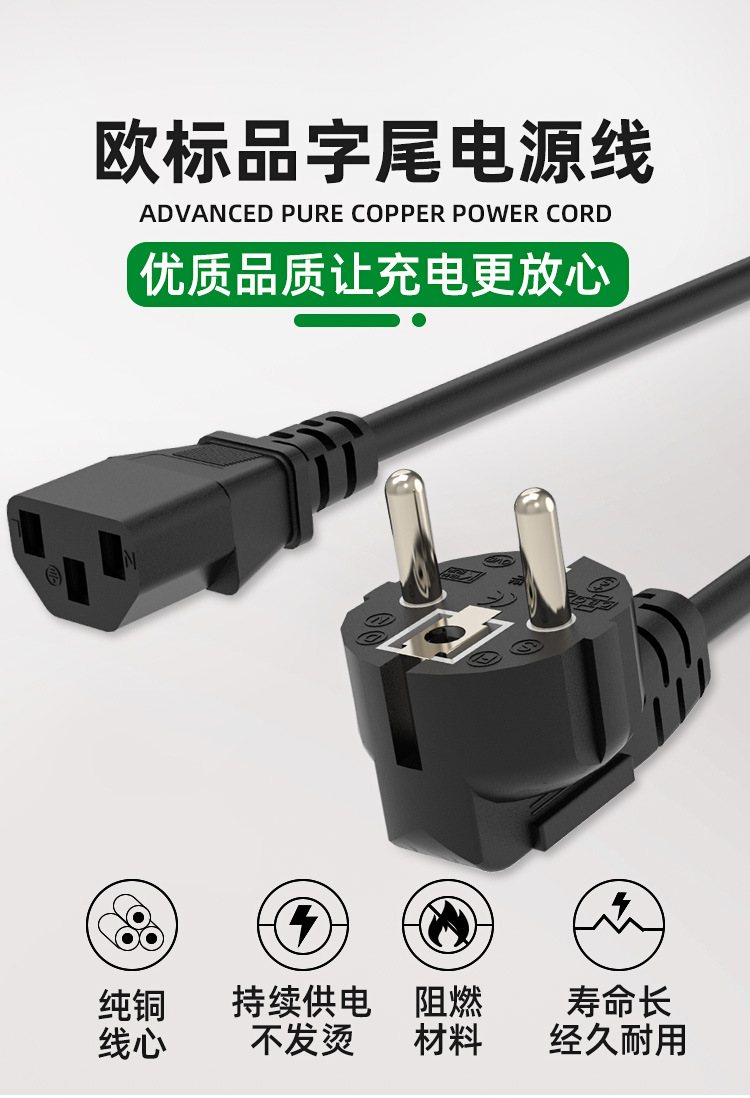 유럽 표준 플러그 케이블, 유럽 표준 각진/직선형 전원 케이블, IEC(인터내셔널 전기위원회) 표준 컴퓨터 케이스 케이블, 구리 피복 알루미늄 고온 내성스토어 가기