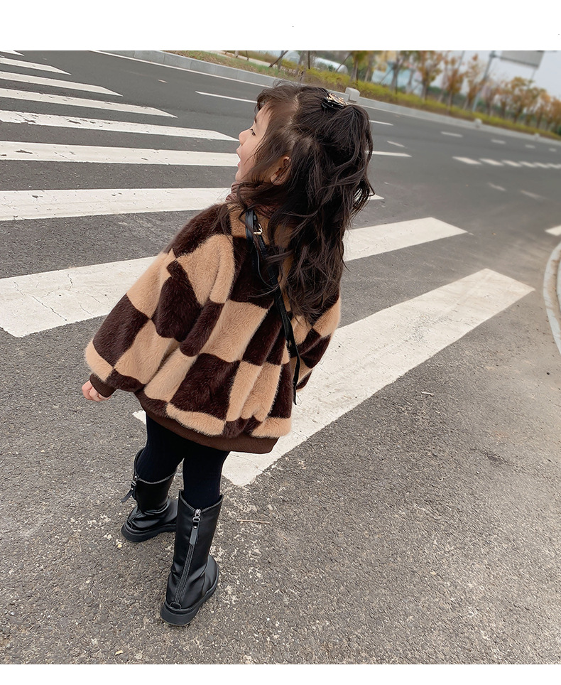 • 체크 푹신한 스웨트셔츠-다크 브라운