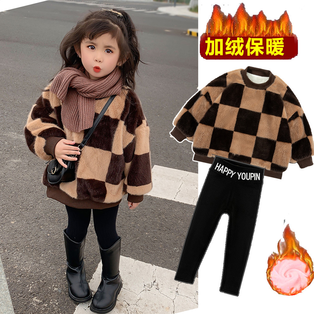 2025년 가을 겨울 새로운 스타일의 어린이 겨울 의류 두꺼운 어린 소녀 빨간색 풀오버 탑을위한 소녀 스웨트 셔츠스토어 가기