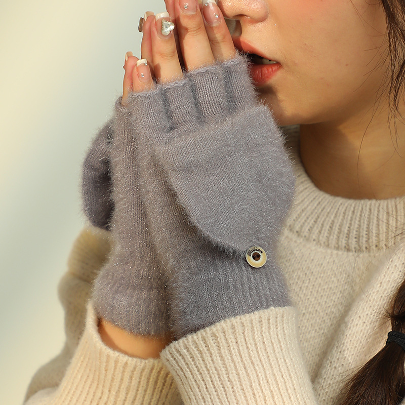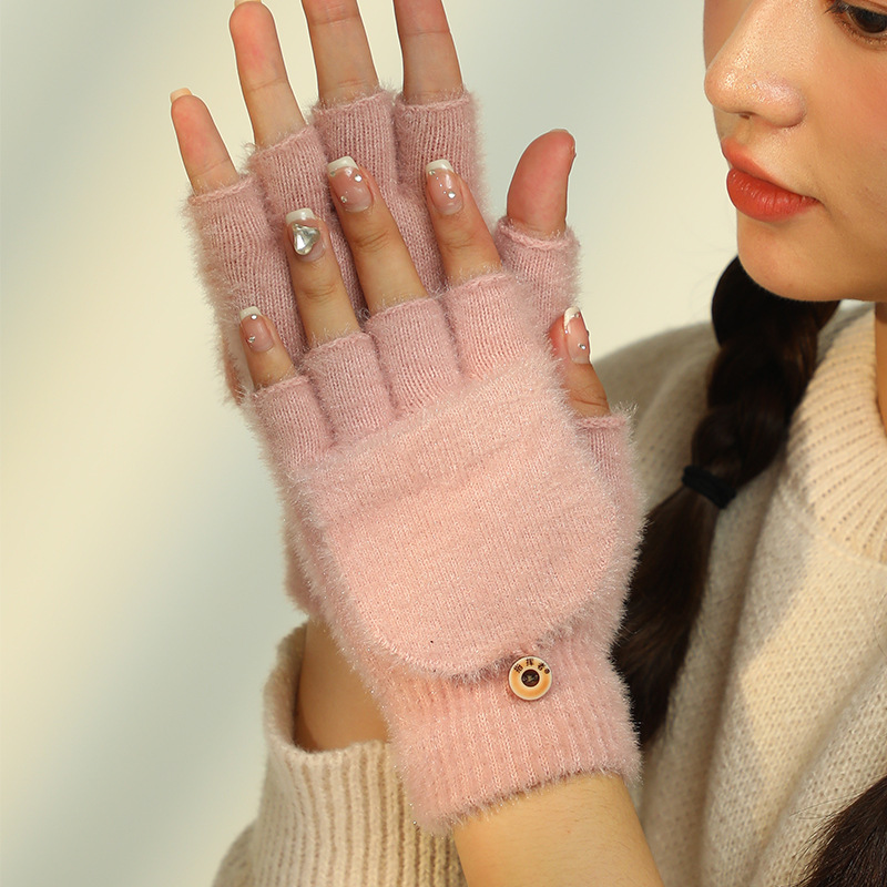 여성용 겨울 따뜻한 플러시 장갑, 학생용 손가락 노출형 플립업 야외용 두꺼운 방한 장갑, 인기 상품, 자카드 공예, 방풍 기능스토어 가기
