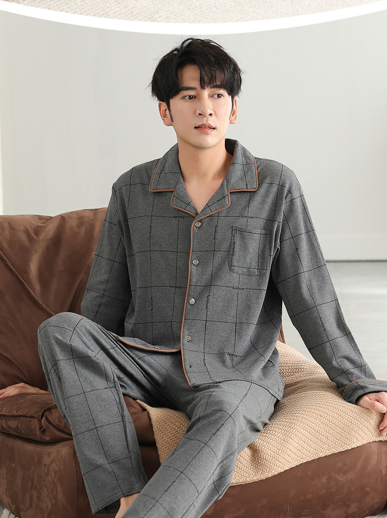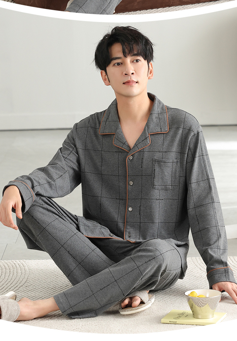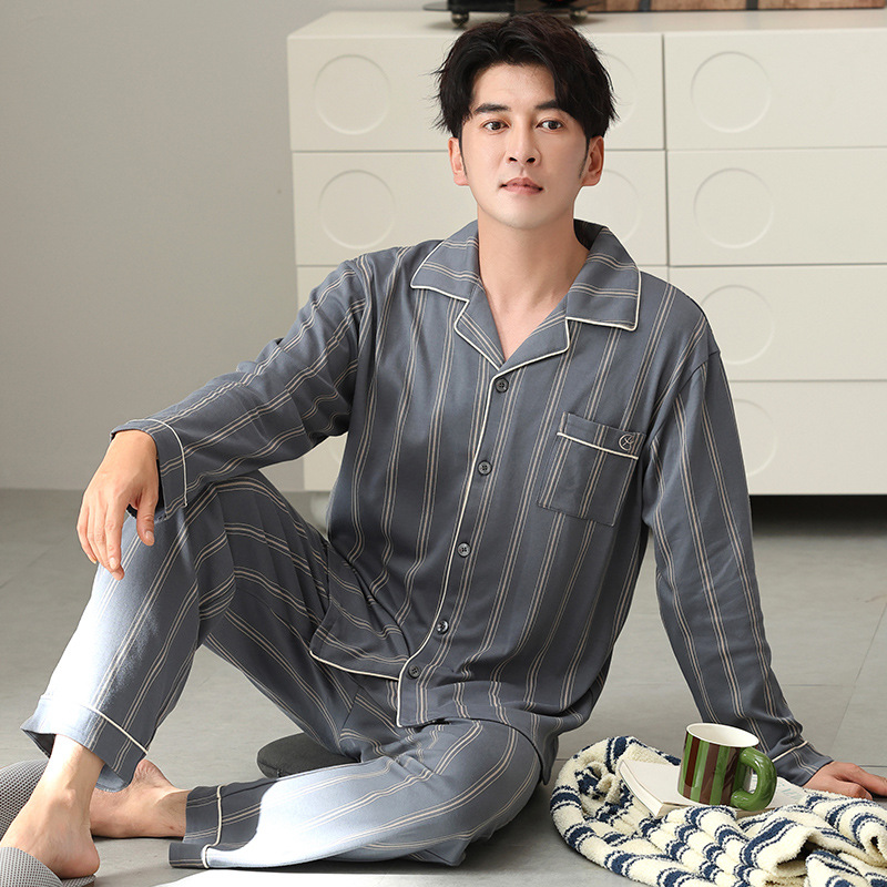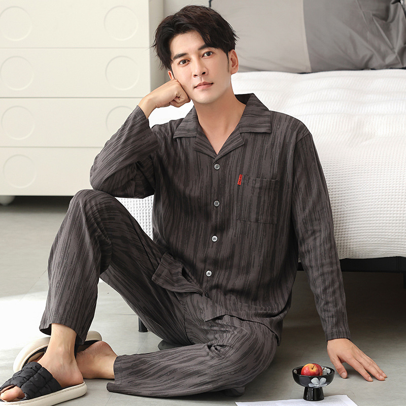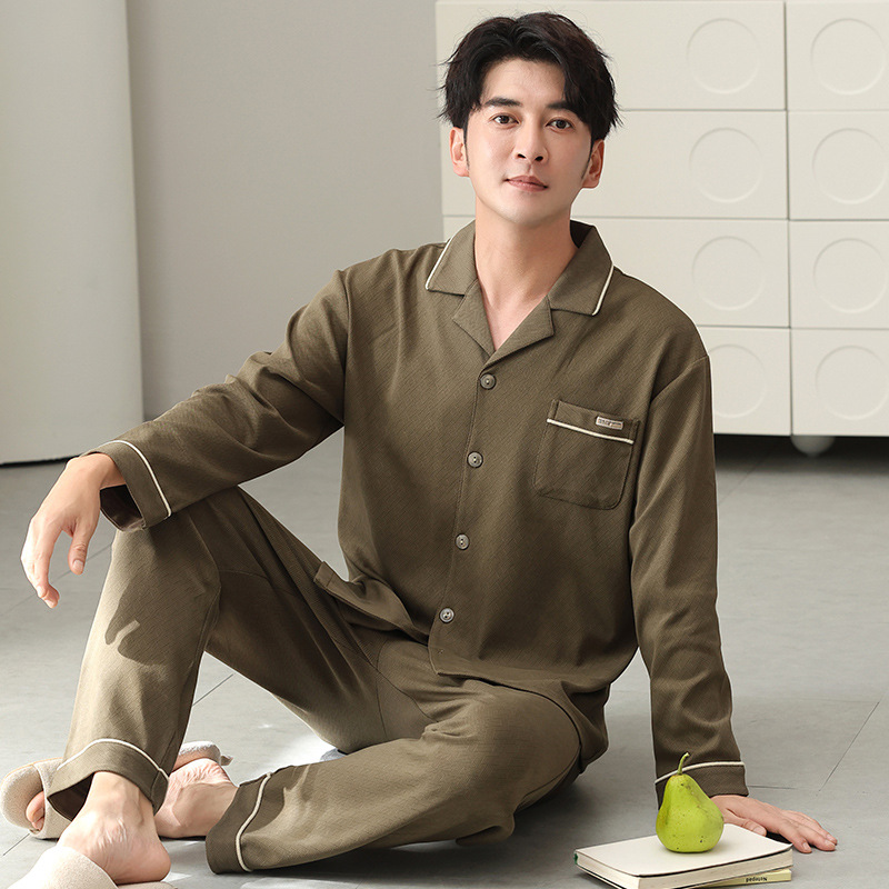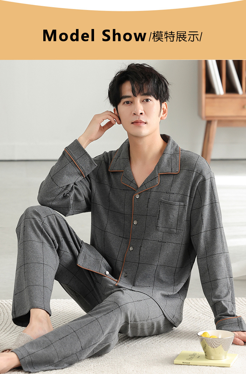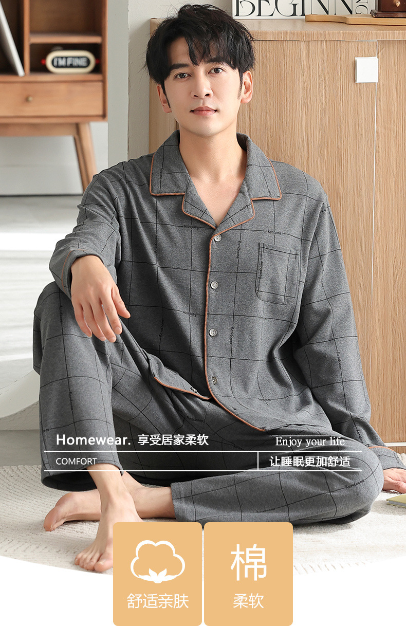 남자 잠옷 가을 2025 새로운 면 가을과 겨울 면 긴 소매 중년 및 노인 아빠 홈 의류 세트스토어 가기