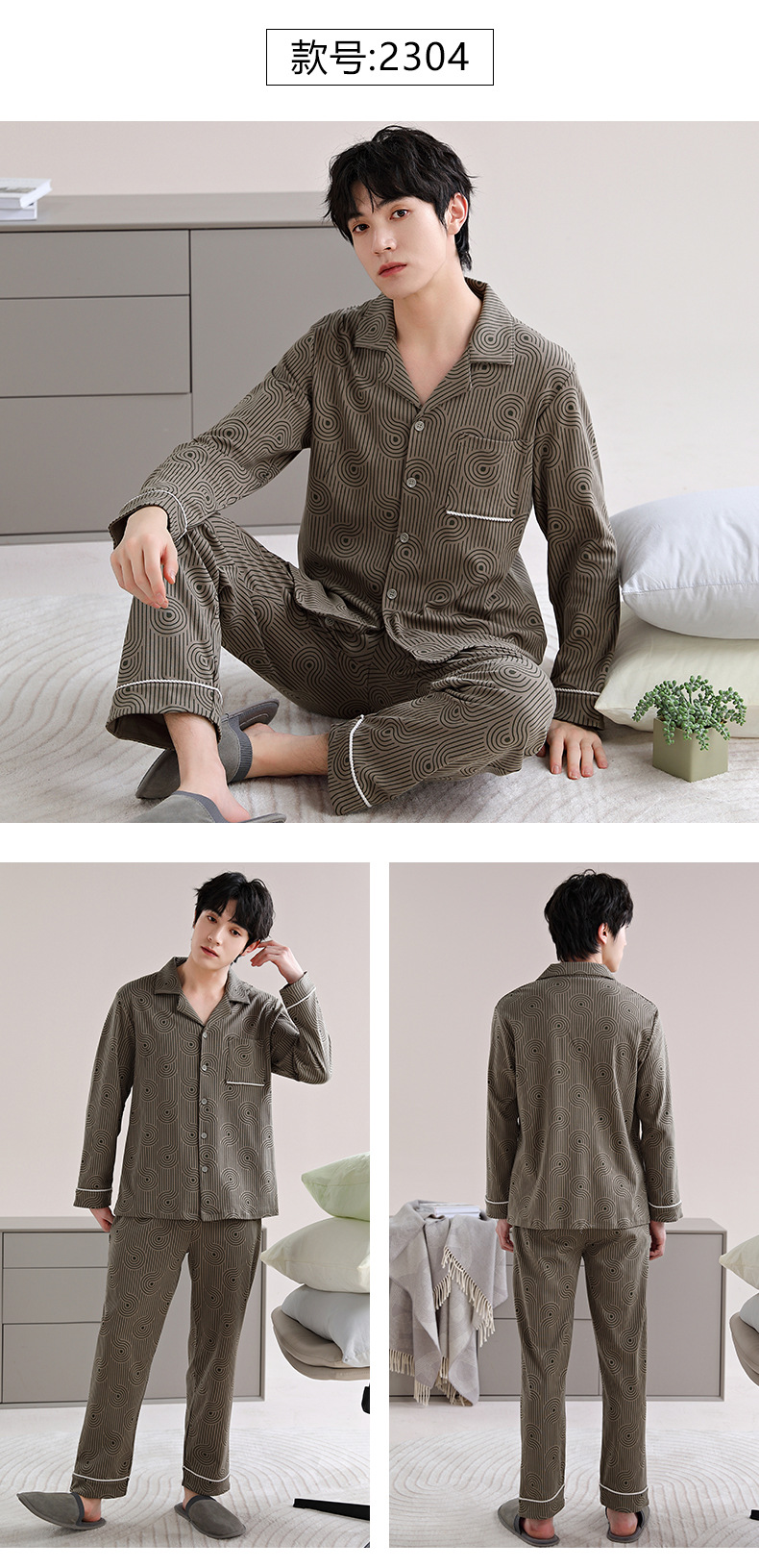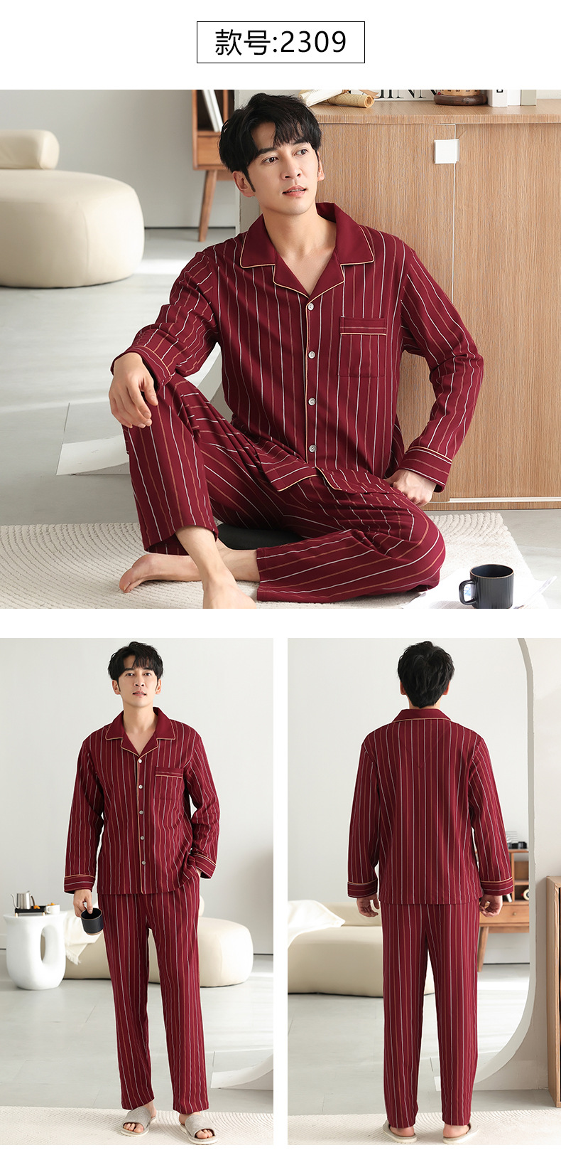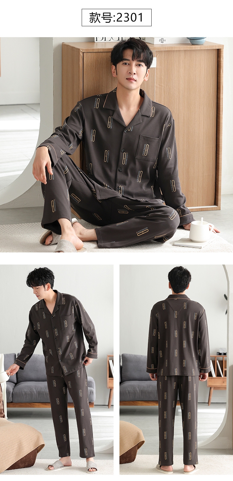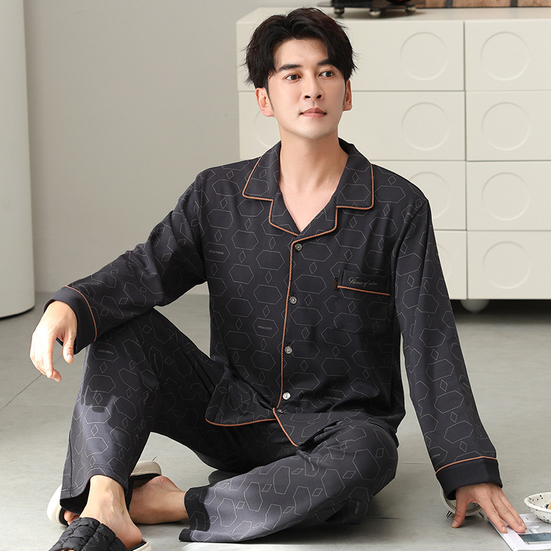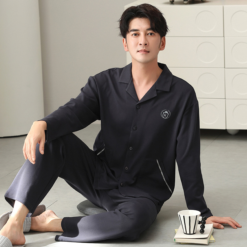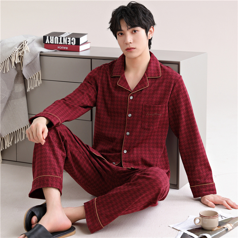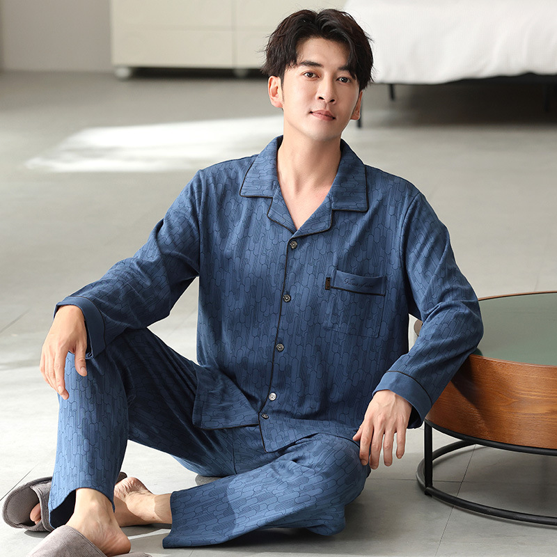 남자 잠옷 가을 2025 새로운 면 가을과 겨울 면 긴 소매 중년 및 노인 아빠 홈 의류 세트스토어 가기