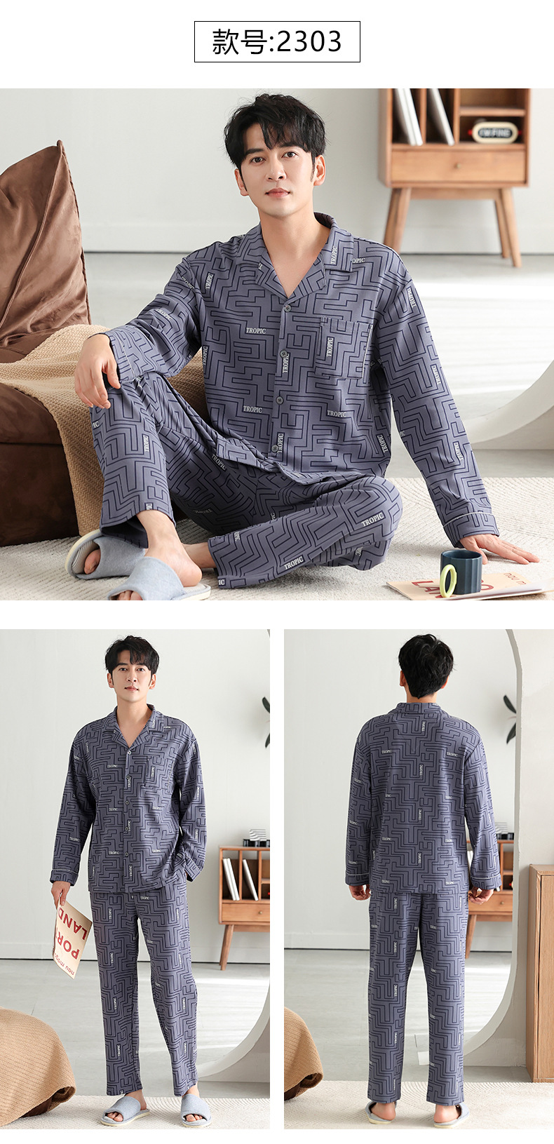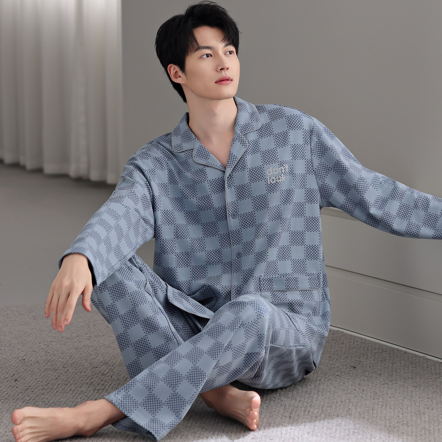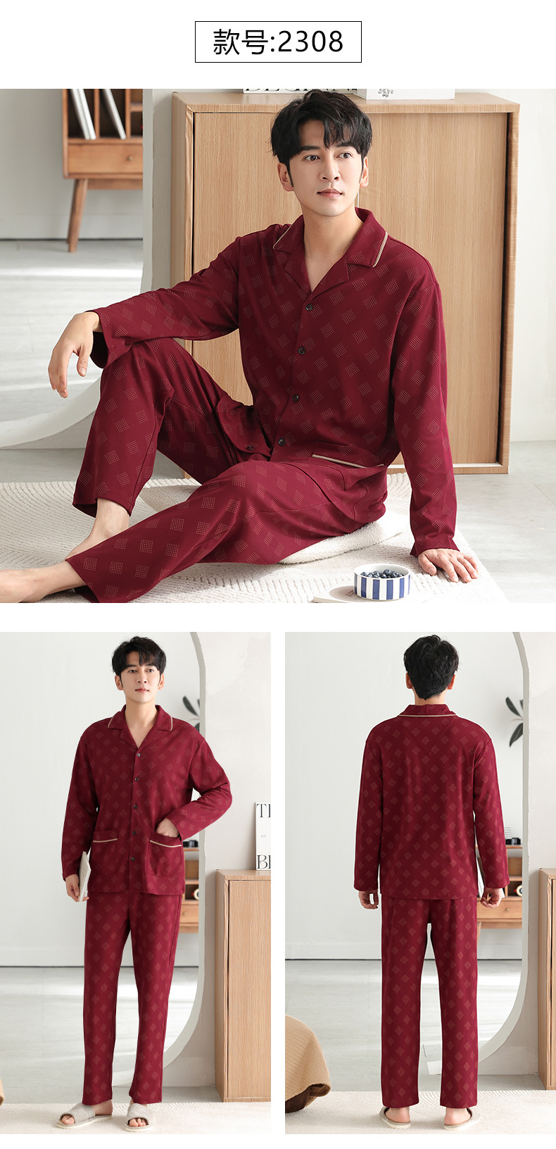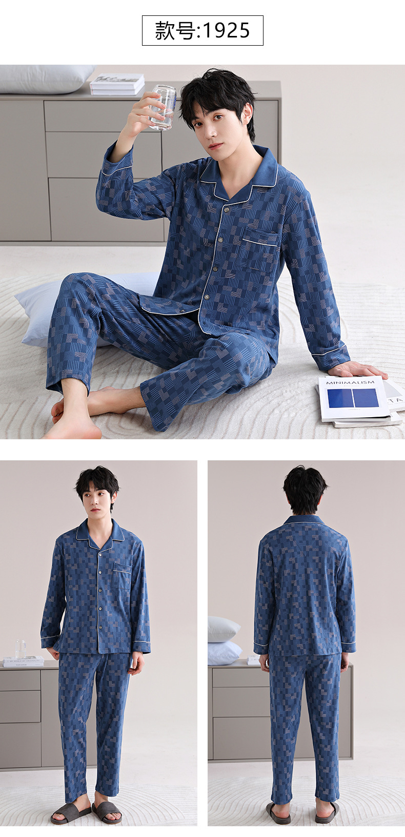 남자 잠옷 가을 2025 새로운 면 가을과 겨울 면 긴 소매 중년 및 노인 아빠 홈 의류 세트스토어 가기