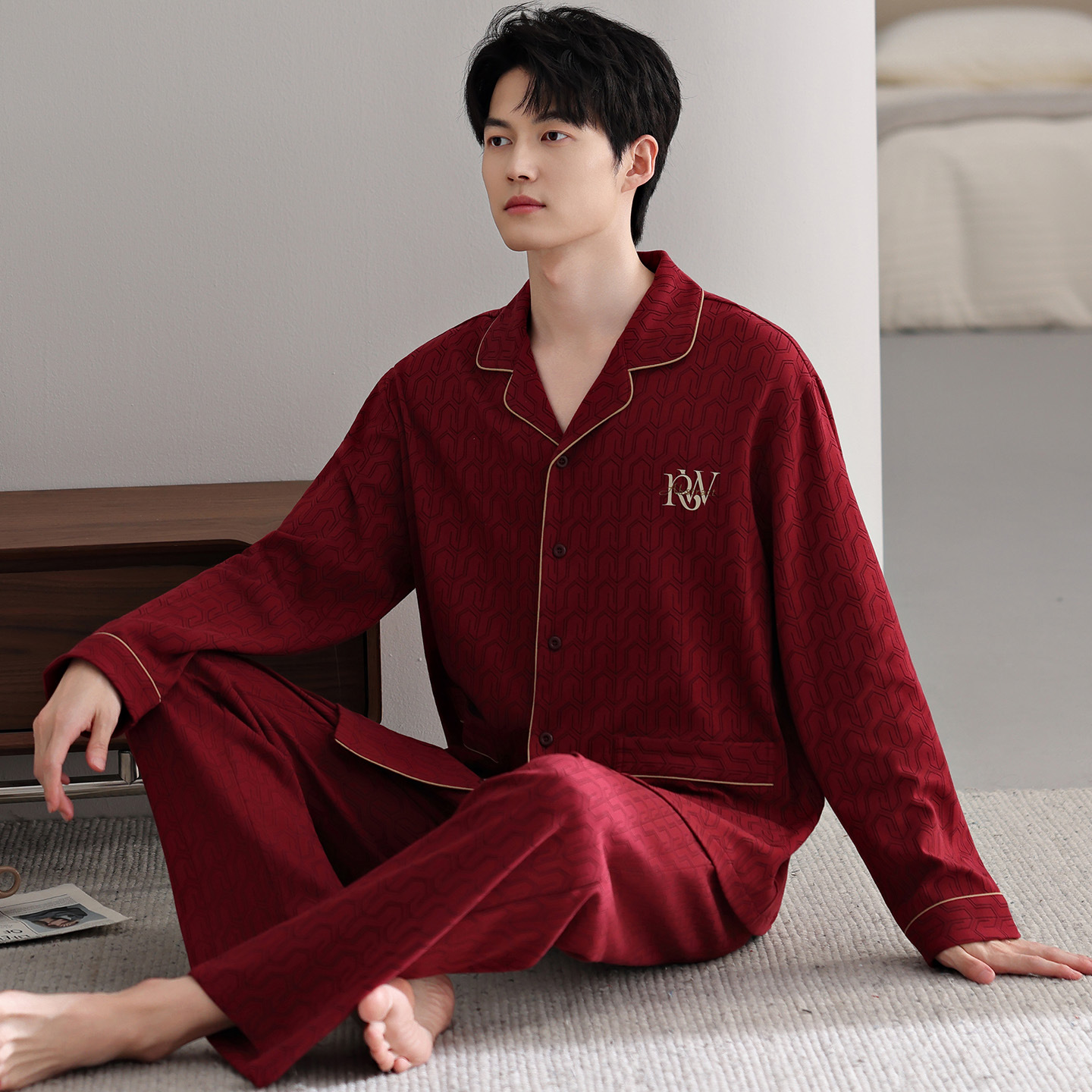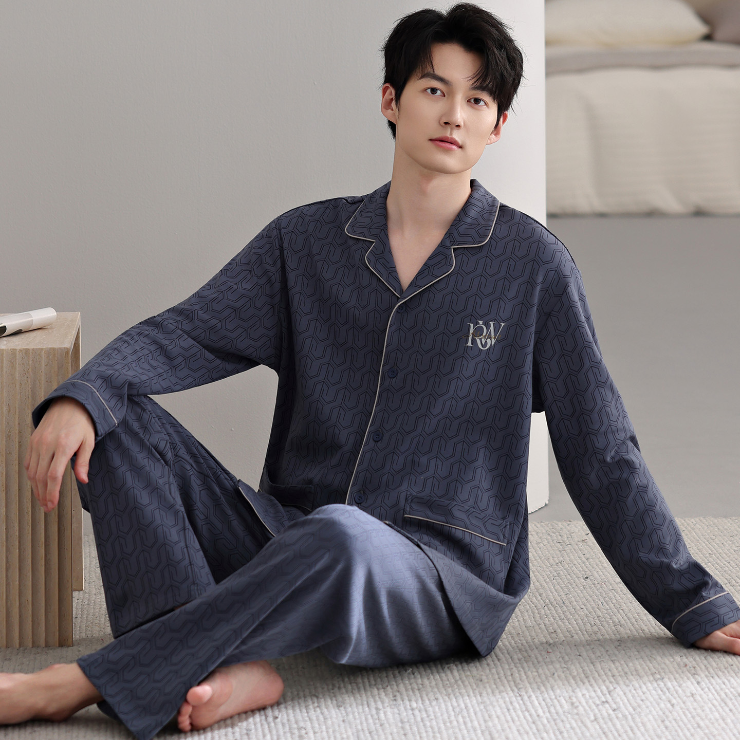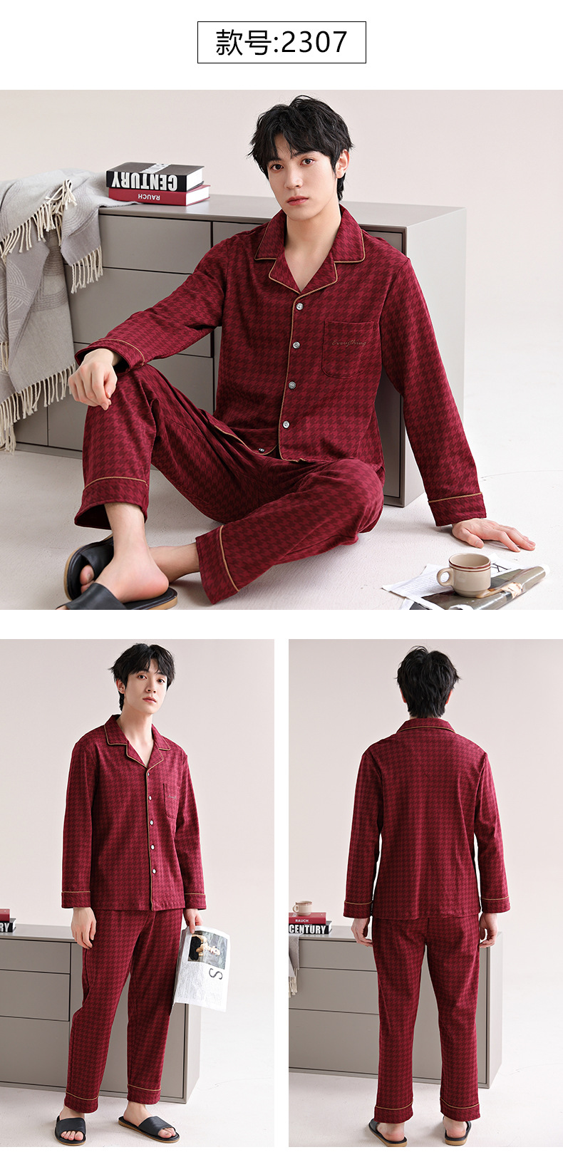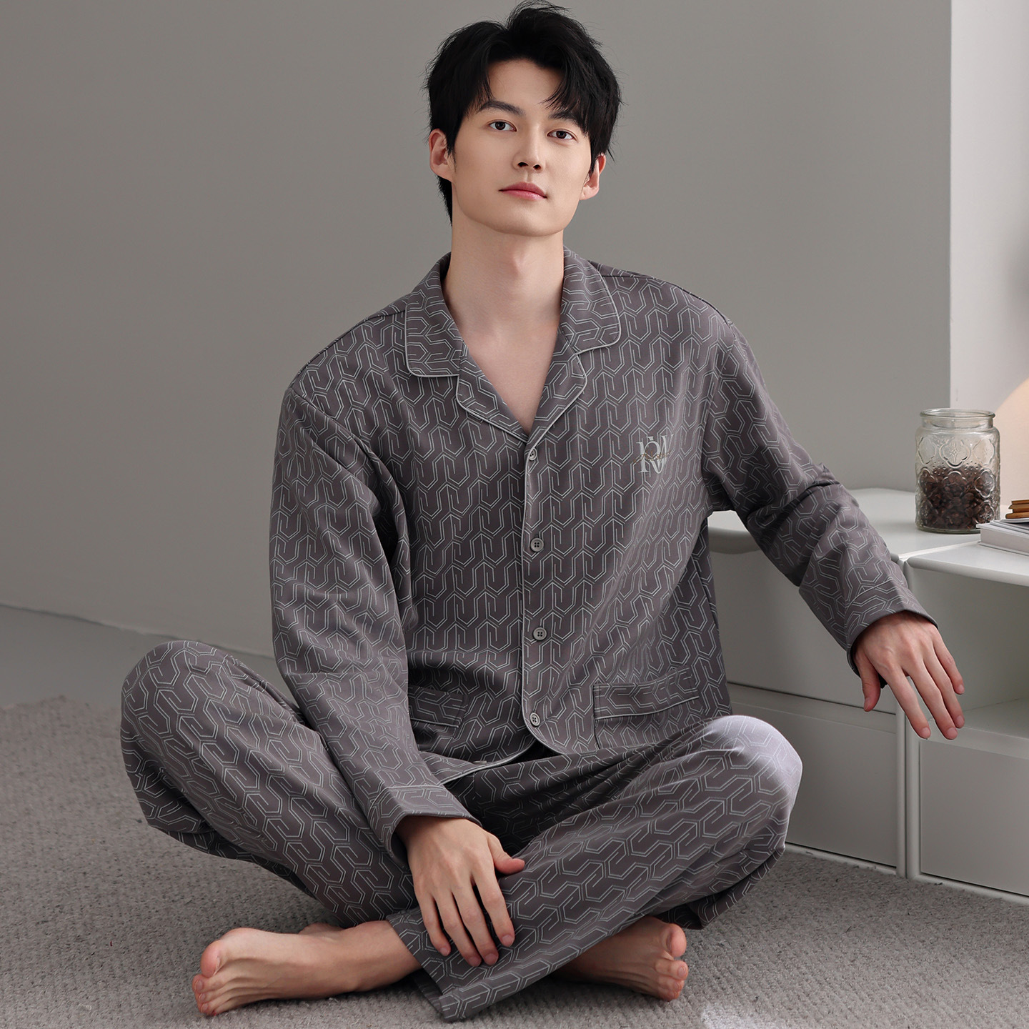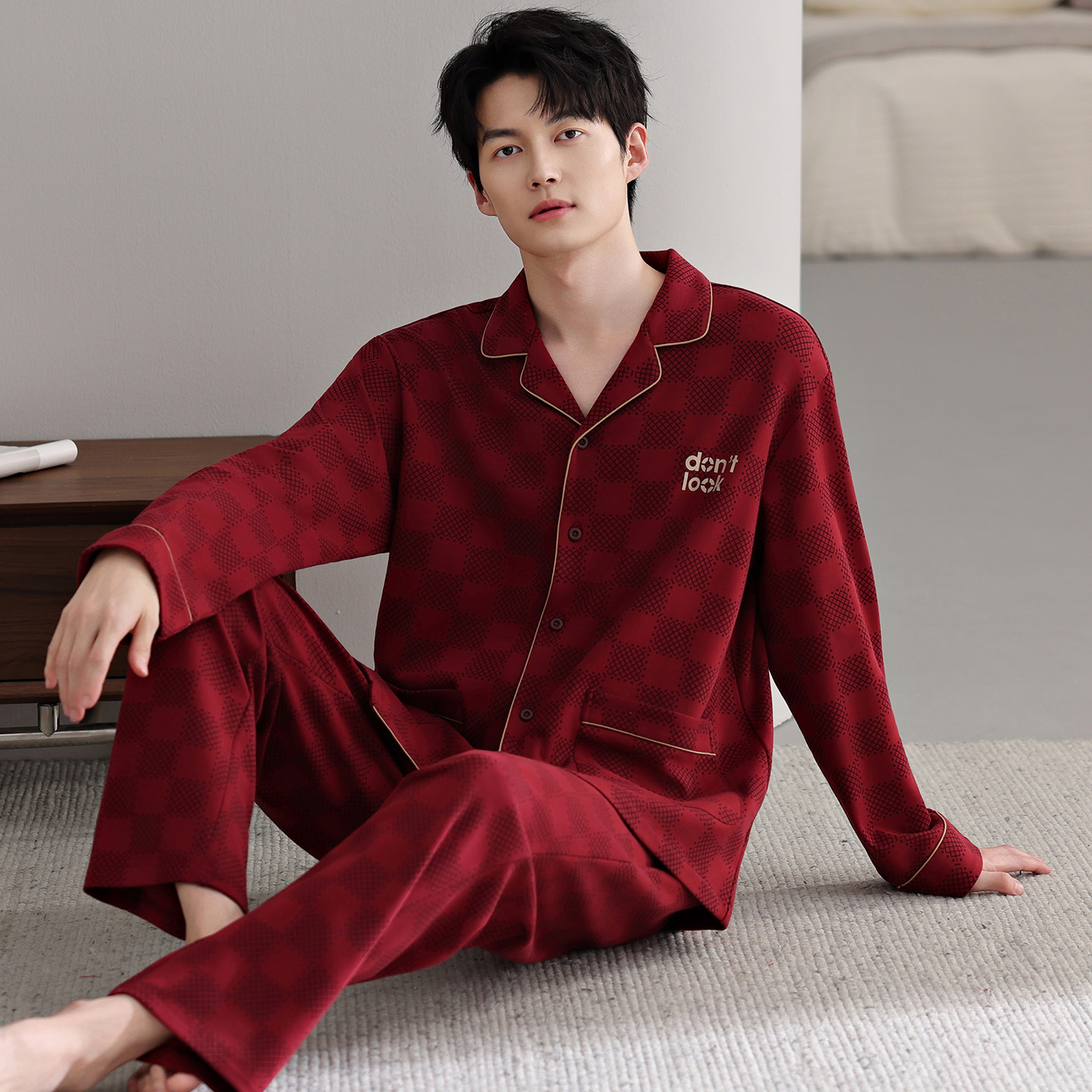 남자 잠옷 가을 2025 새로운 면 가을과 겨울 면 긴 소매 중년 및 노인 아빠 홈 의류 세트스토어 가기