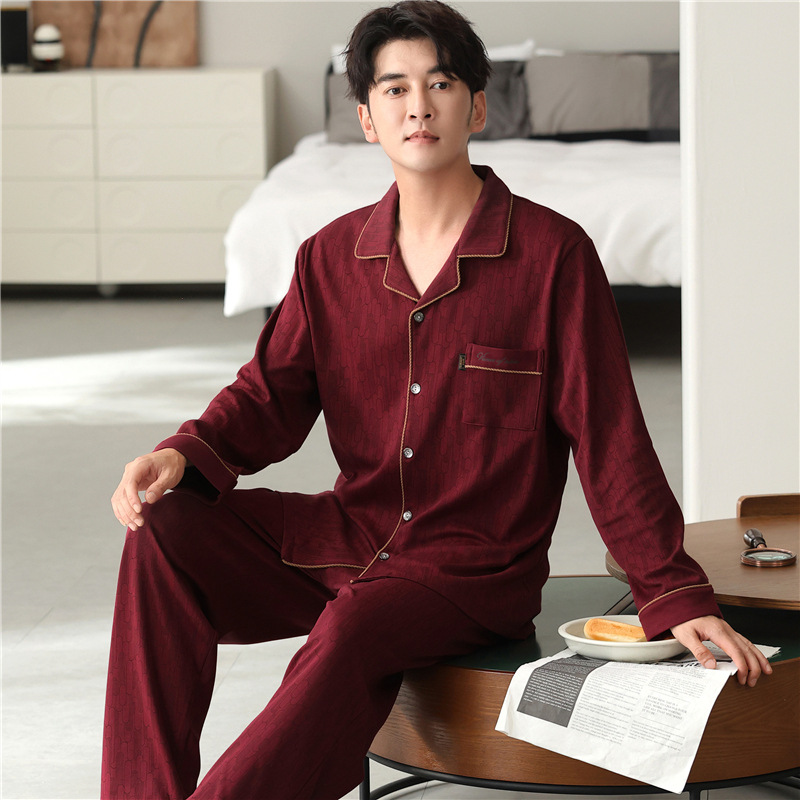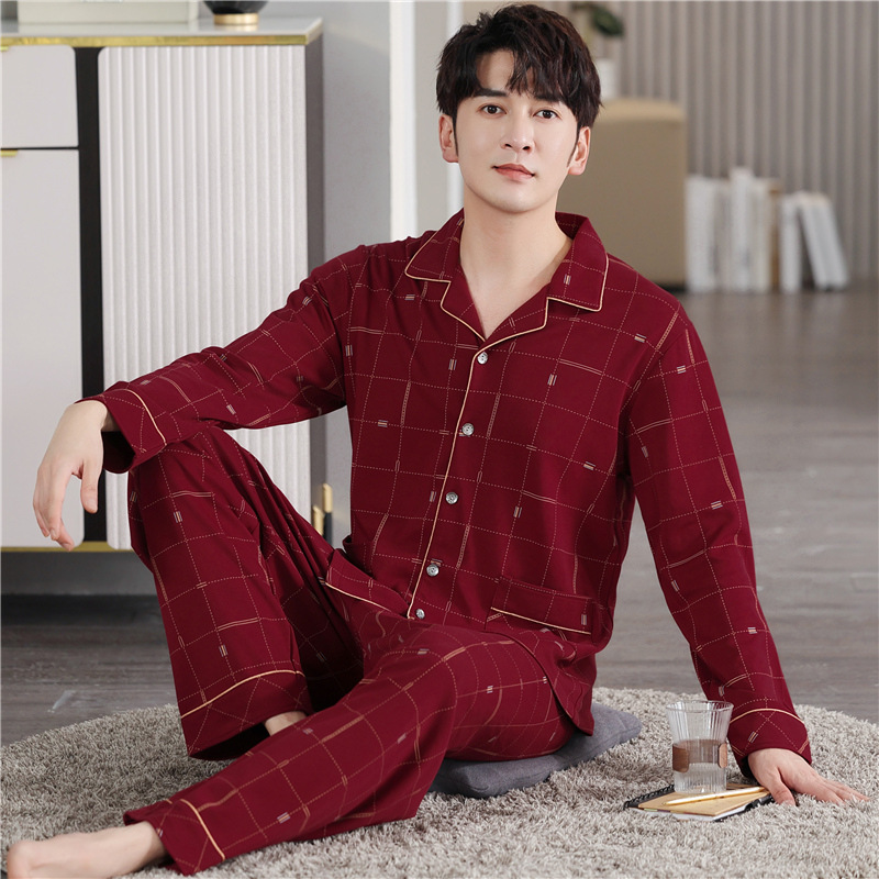 남자 잠옷 가을 2025 새로운 면 가을과 겨울 면 긴 소매 중년 및 노인 아빠 홈 의류 세트