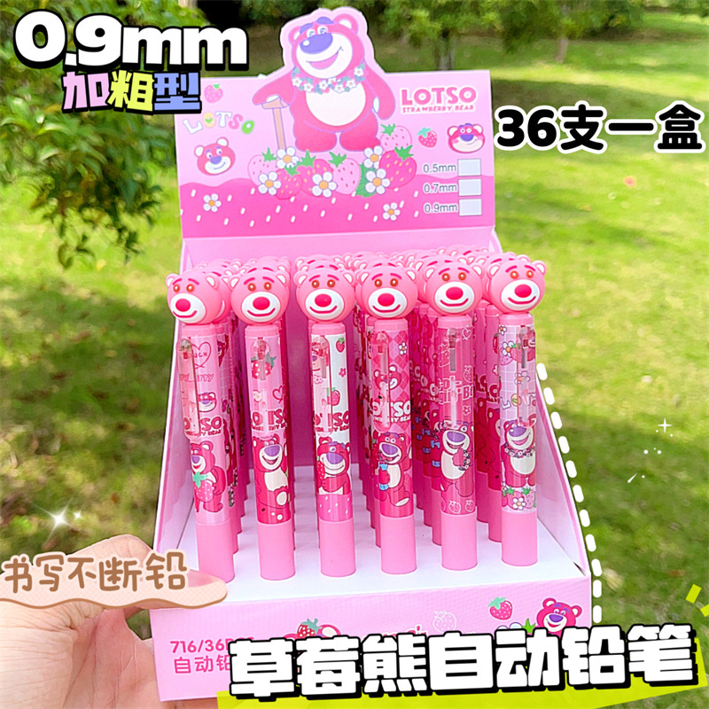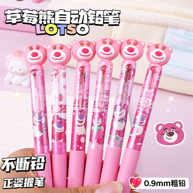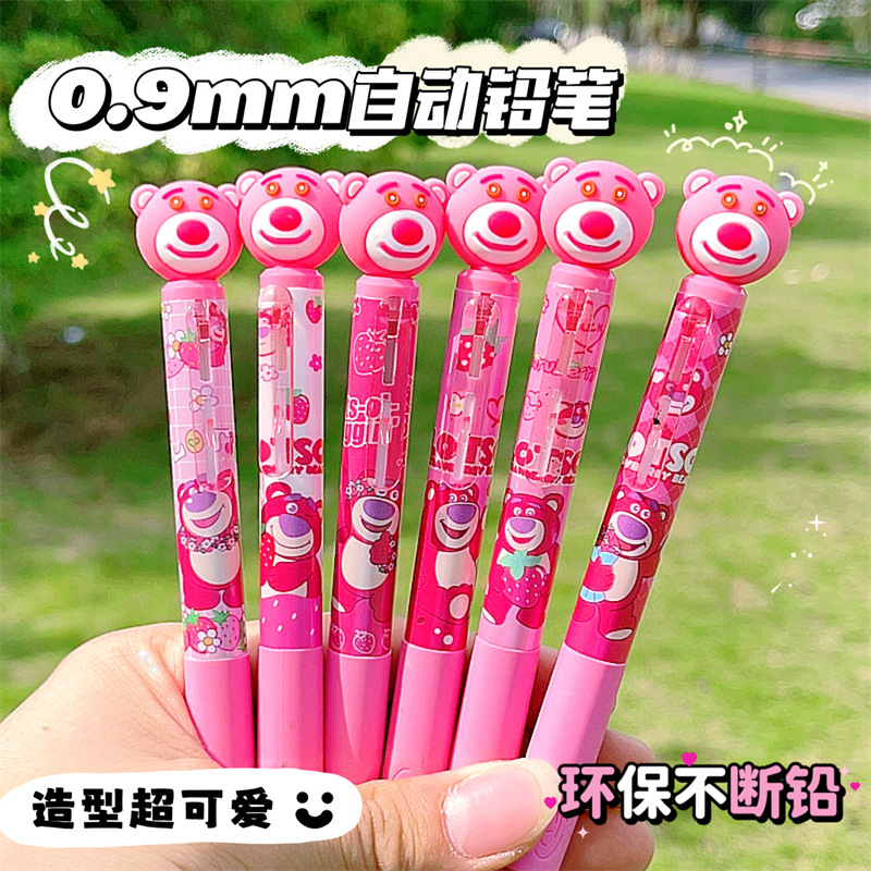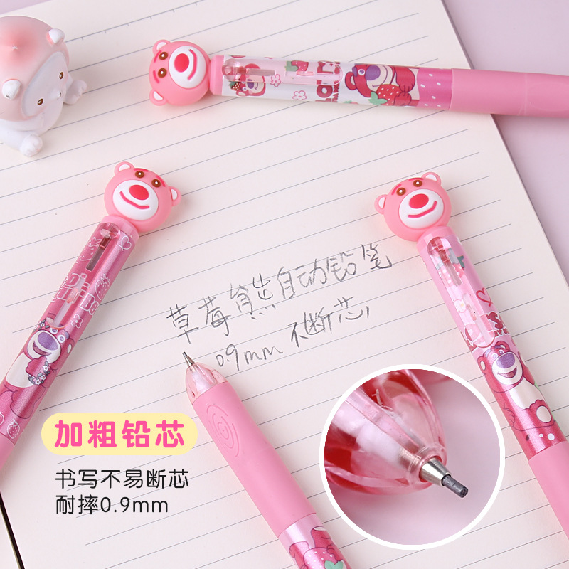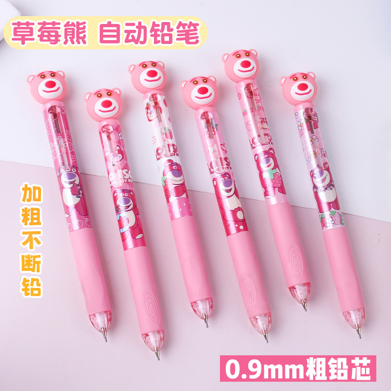 딸기 곰 0.9mm 자동 연필 초등학생이 자세 활동 연필 귀여운 만화 연속 납 굵은심 도매스토어 가기