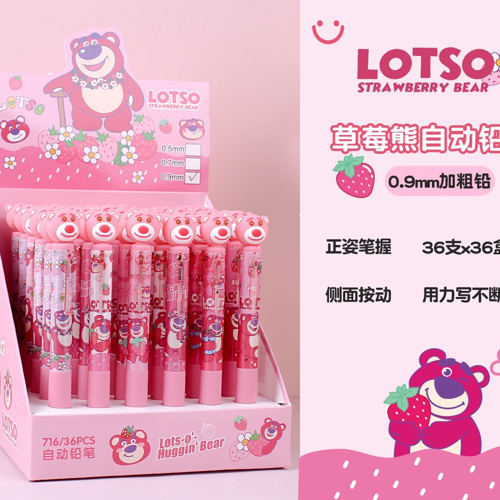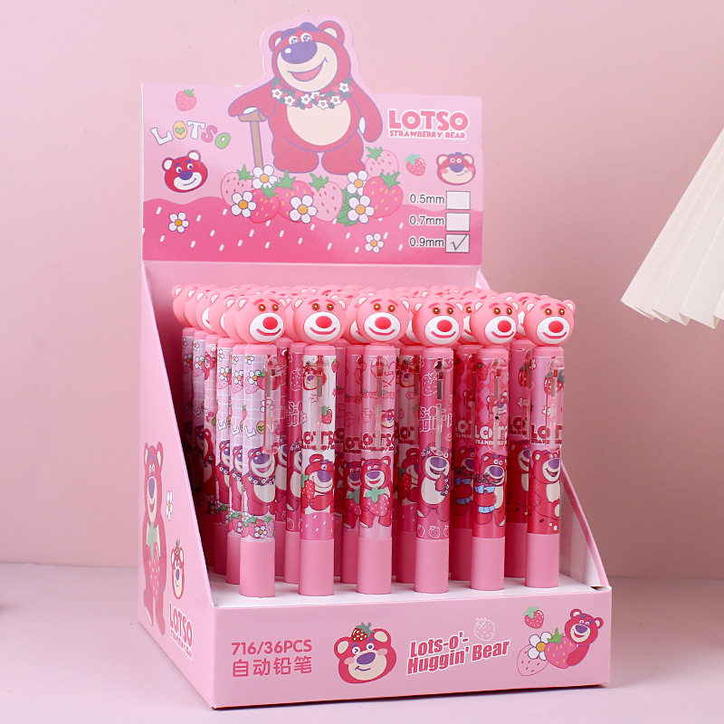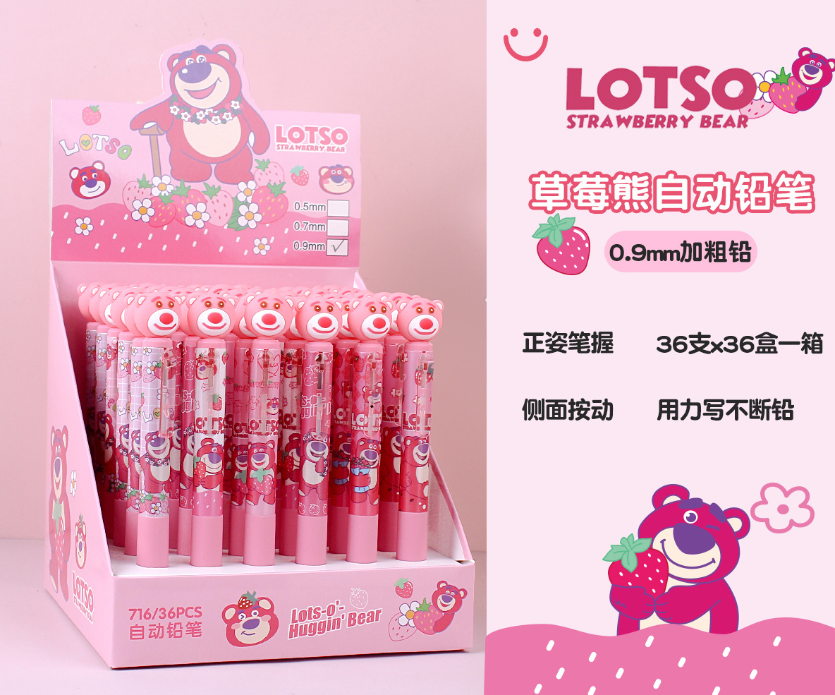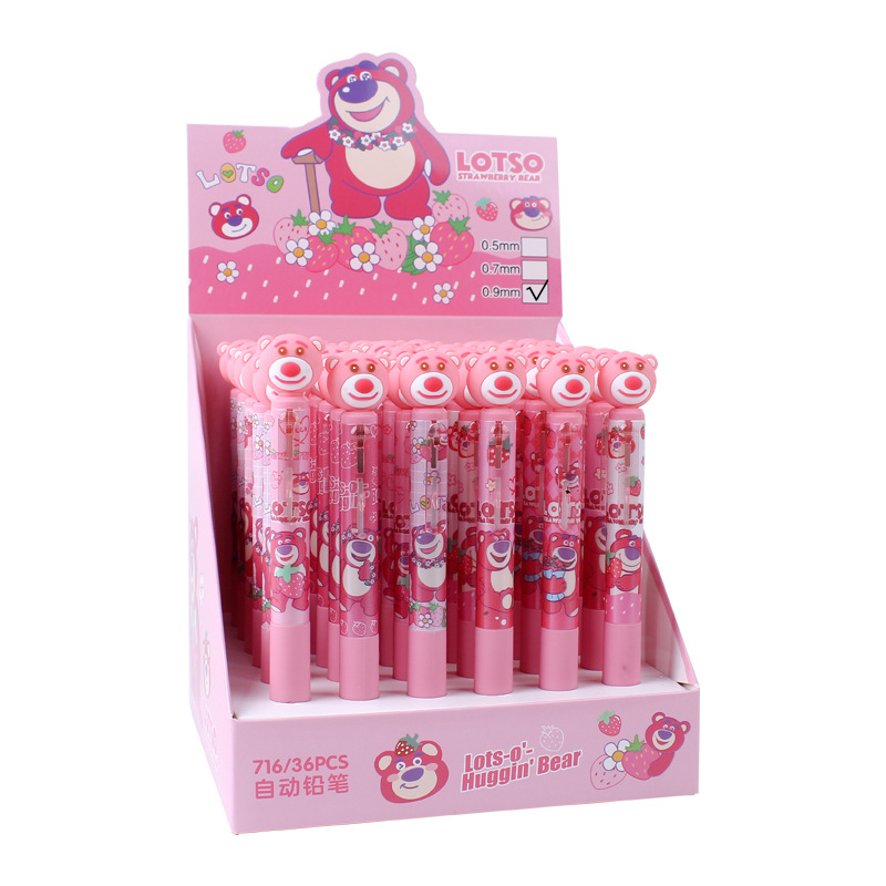 딸기 곰 0.9mm 자동 연필 초등학생이 자세 활동 연필 귀여운 만화 연속 납 굵은심 도매스토어 가기