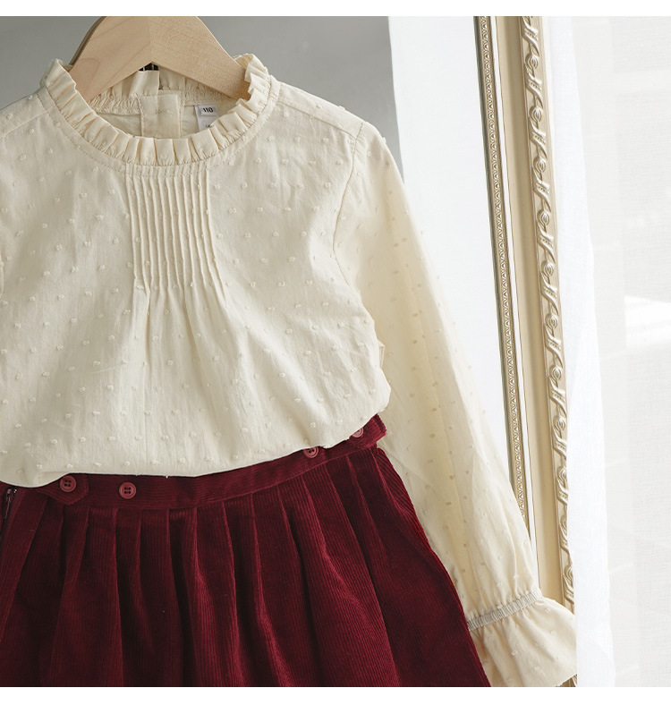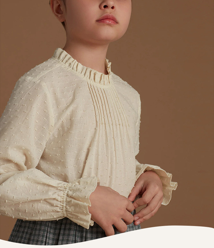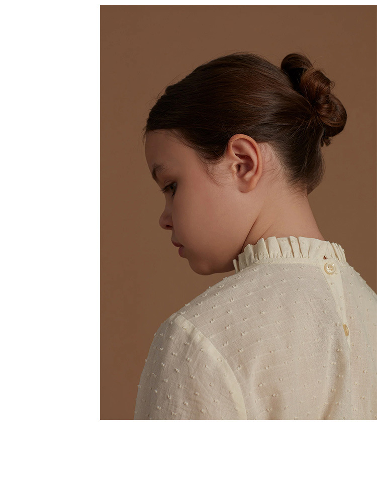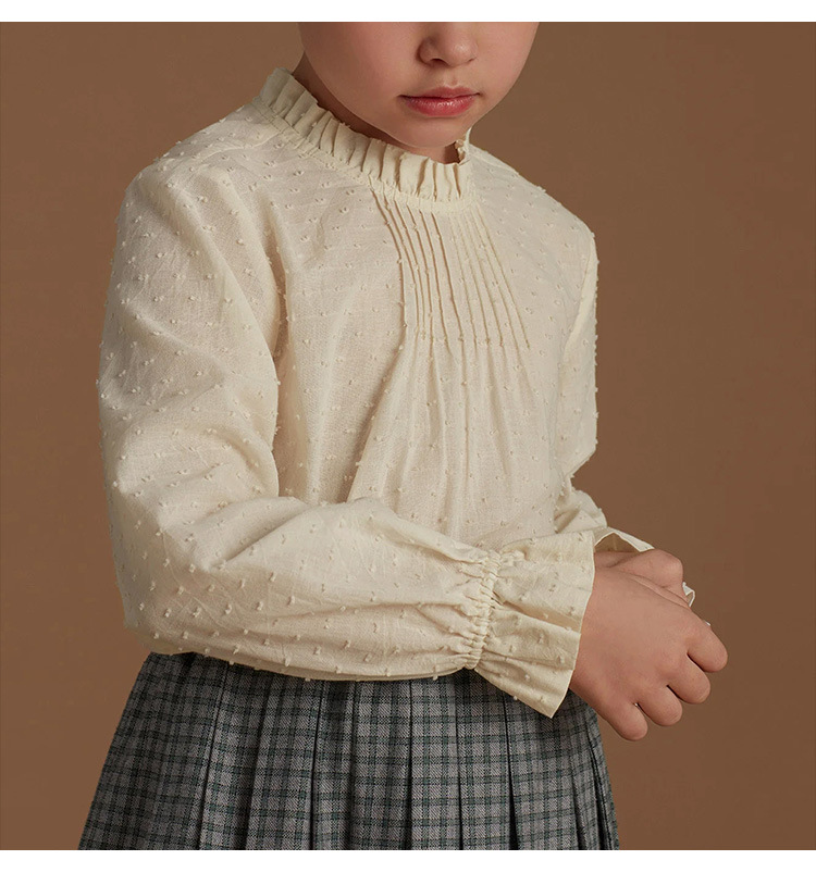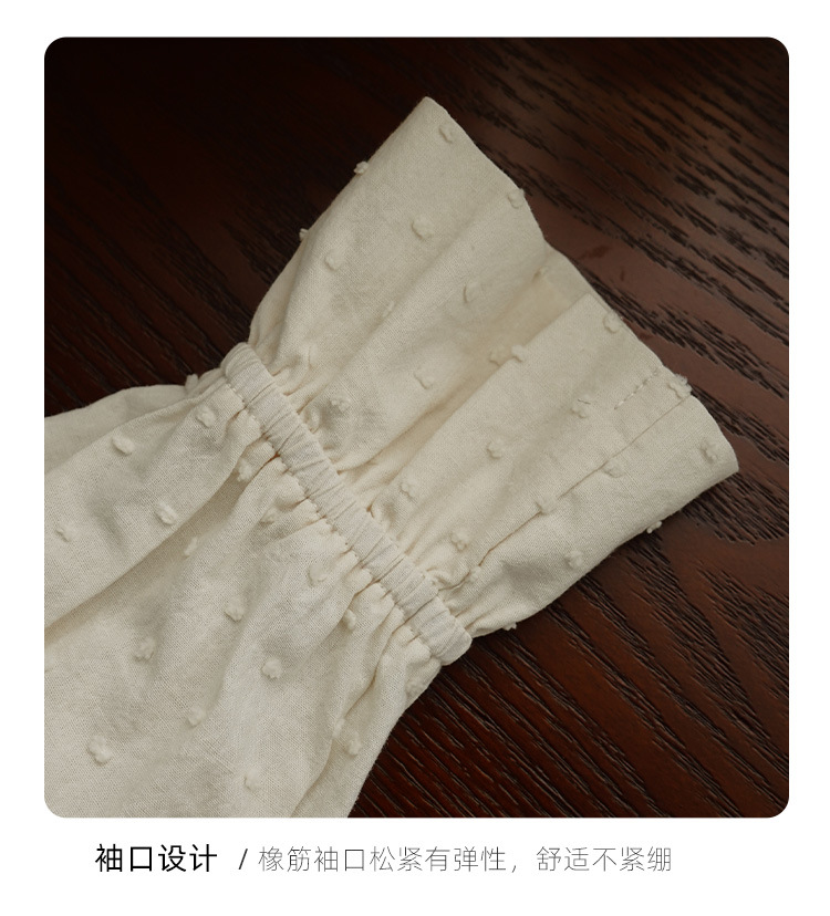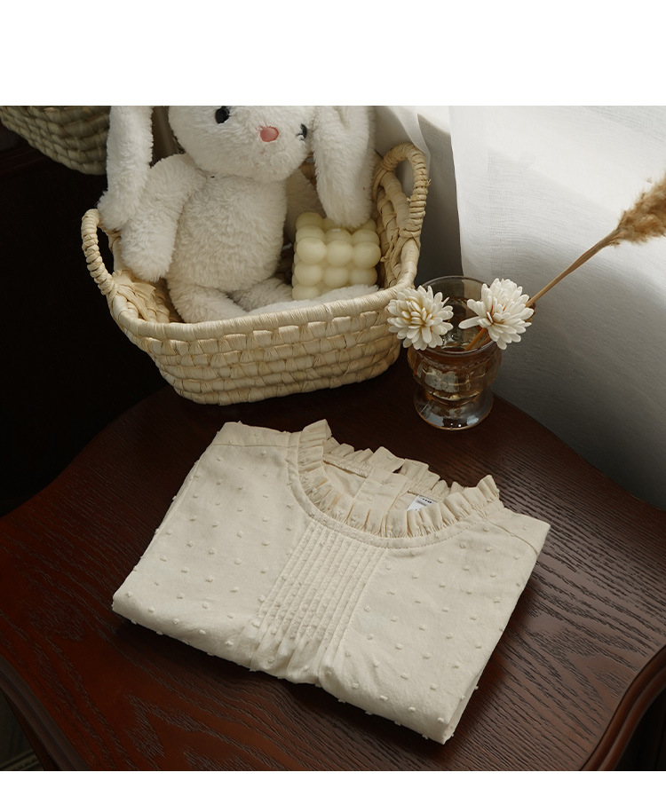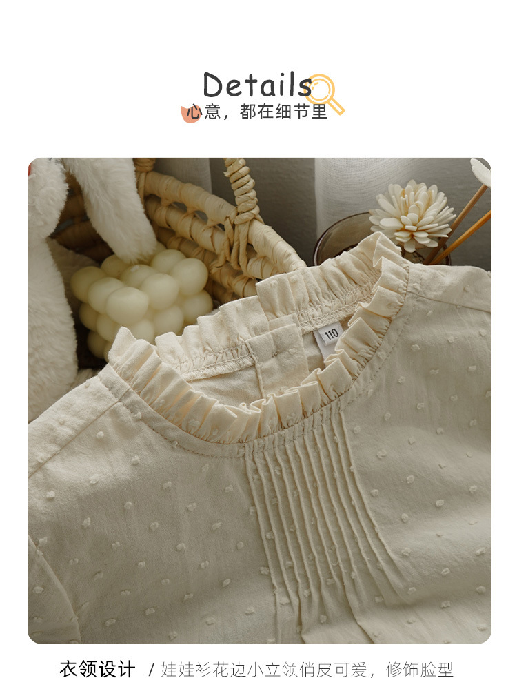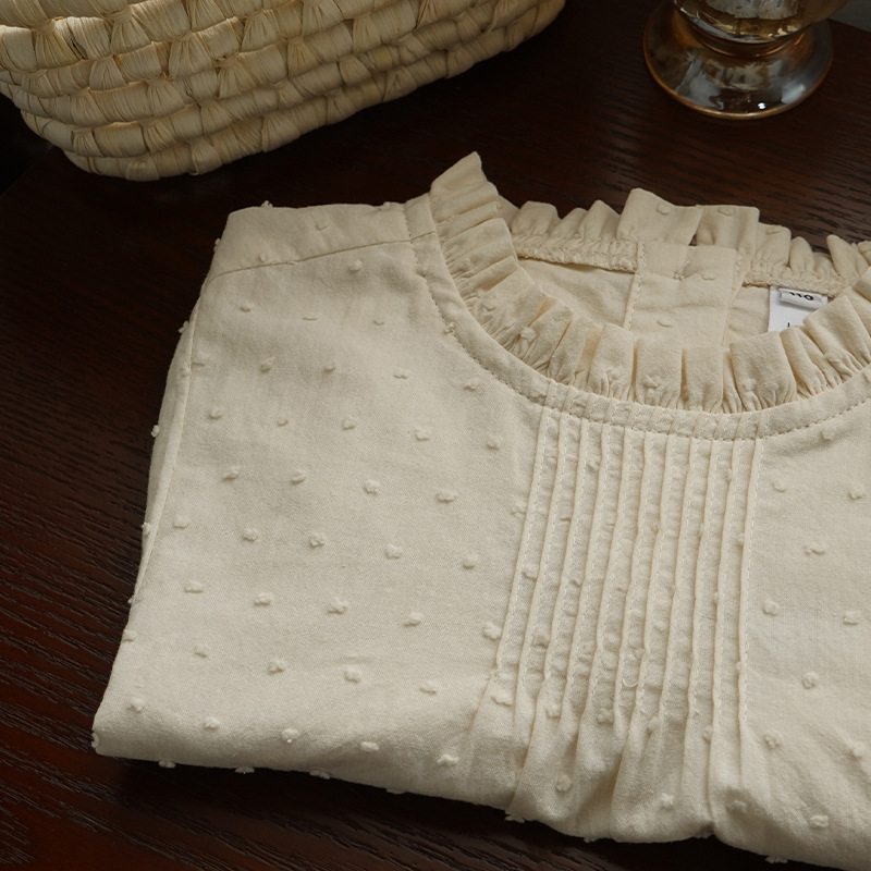 【재고정리】도트무늬 긴팔 상의, 귀여운 레이스 장식의 작은 칼라, 입체적인 꽃무늬 바닥 패턴의 여아용 이너웨어스토어 가기