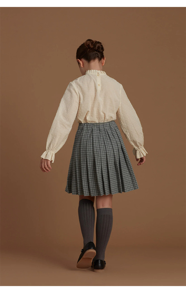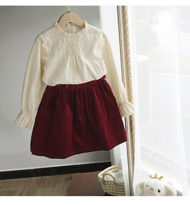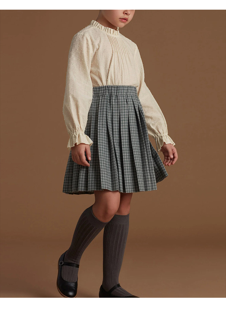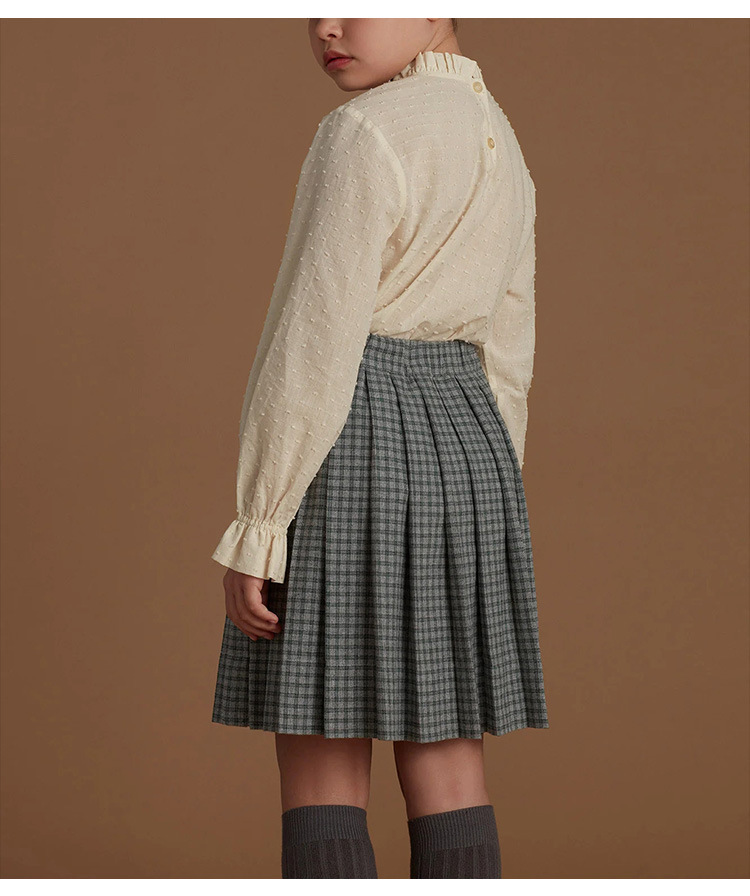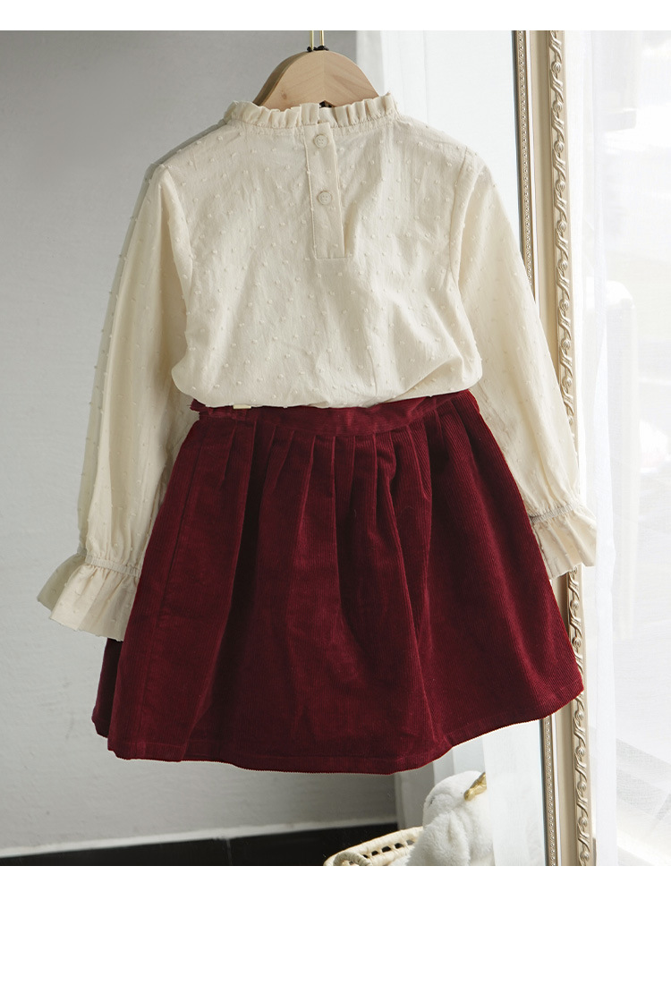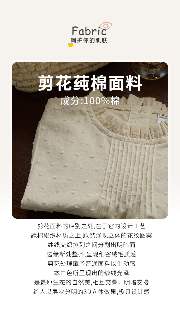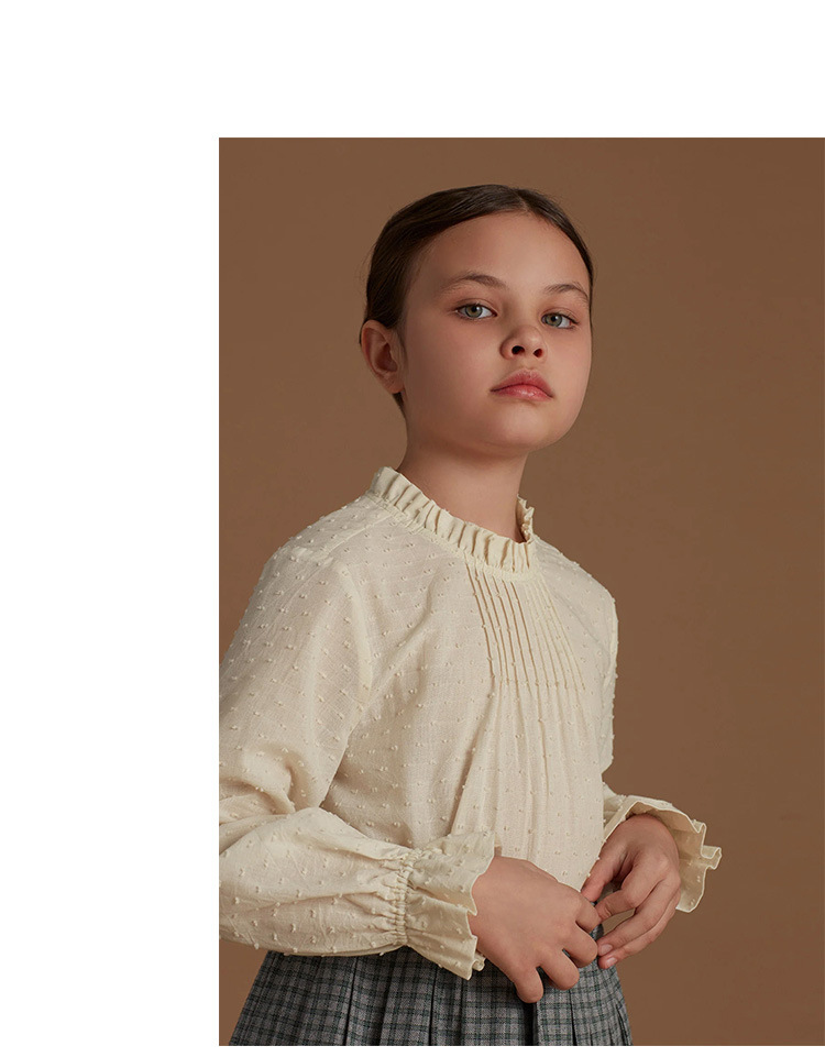 【재고정리】도트무늬 긴팔 상의, 귀여운 레이스 장식의 작은 칼라, 입체적인 꽃무늬 바닥 패턴의 여아용 이너웨어스토어 가기