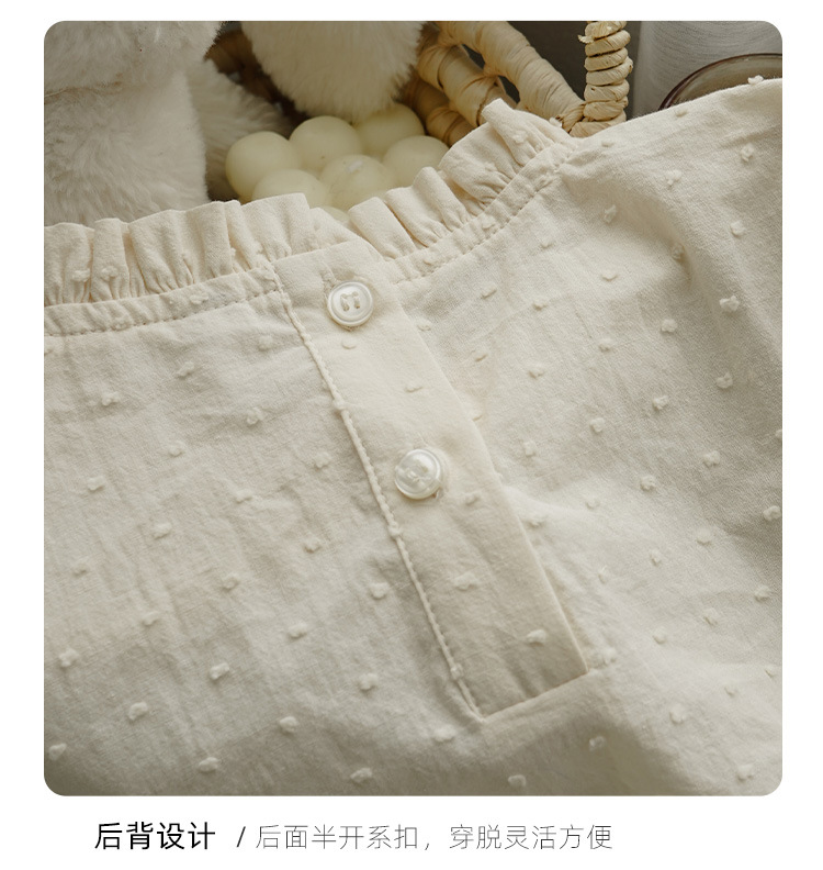 【재고정리】도트무늬 긴팔 상의, 귀여운 레이스 장식의 작은 칼라, 입체적인 꽃무늬 바닥 패턴의 여아용 이너웨어