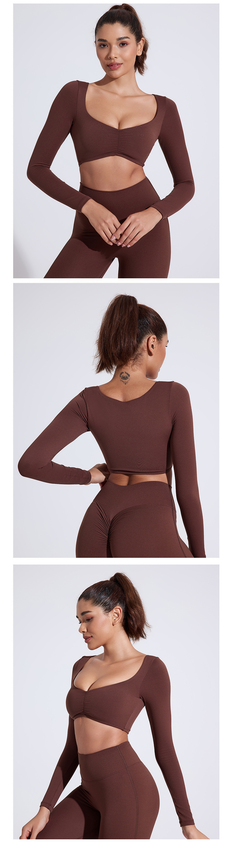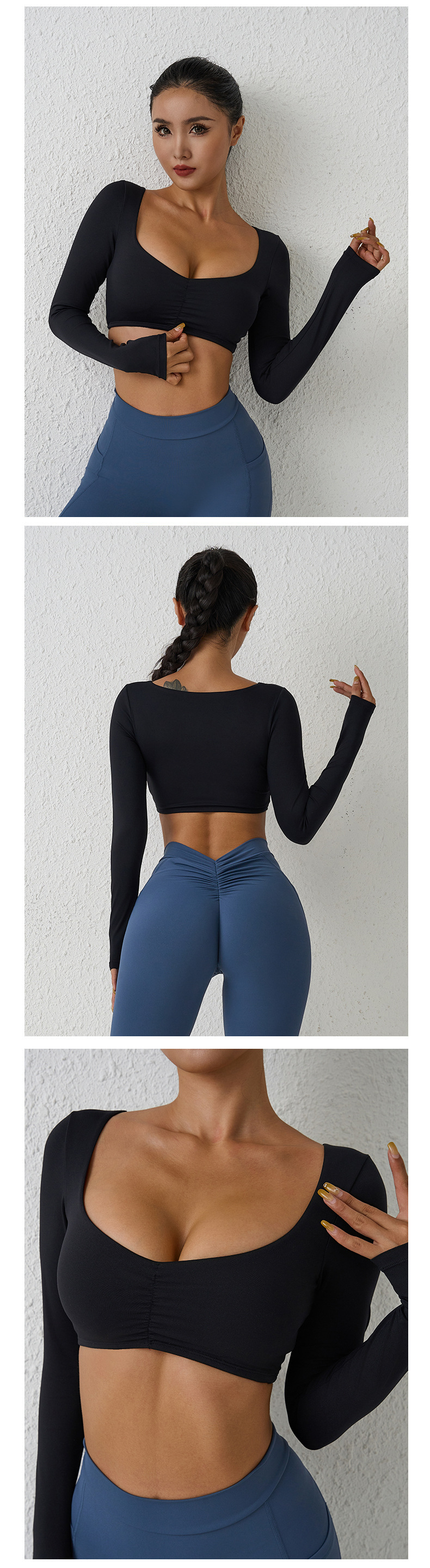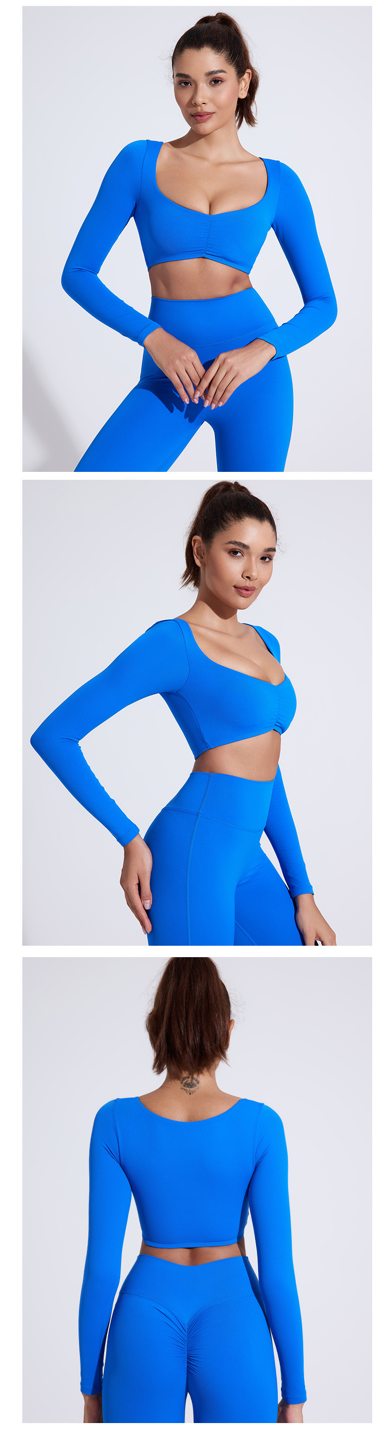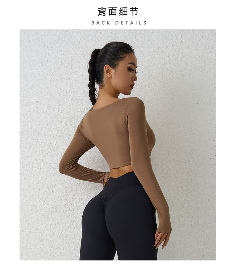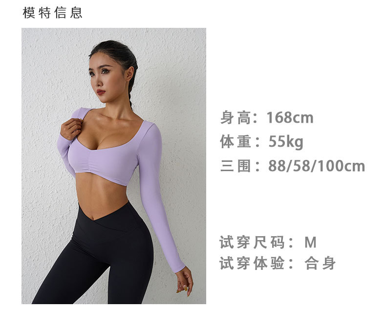 유럽과 미국의 국경 간 알몸 긴팔 요가 세트 티셔츠 꽉 주름 스포츠 피트니스 탑 여성용 타이트 요가 탑스토어 가기