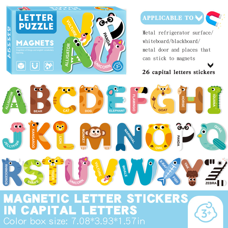 조기 교육 마그네틱 퍼즐 26 알파벳 동물 번호 스티커 3-6 세 유치원인지 교육 어린이 장난감스토어 가기