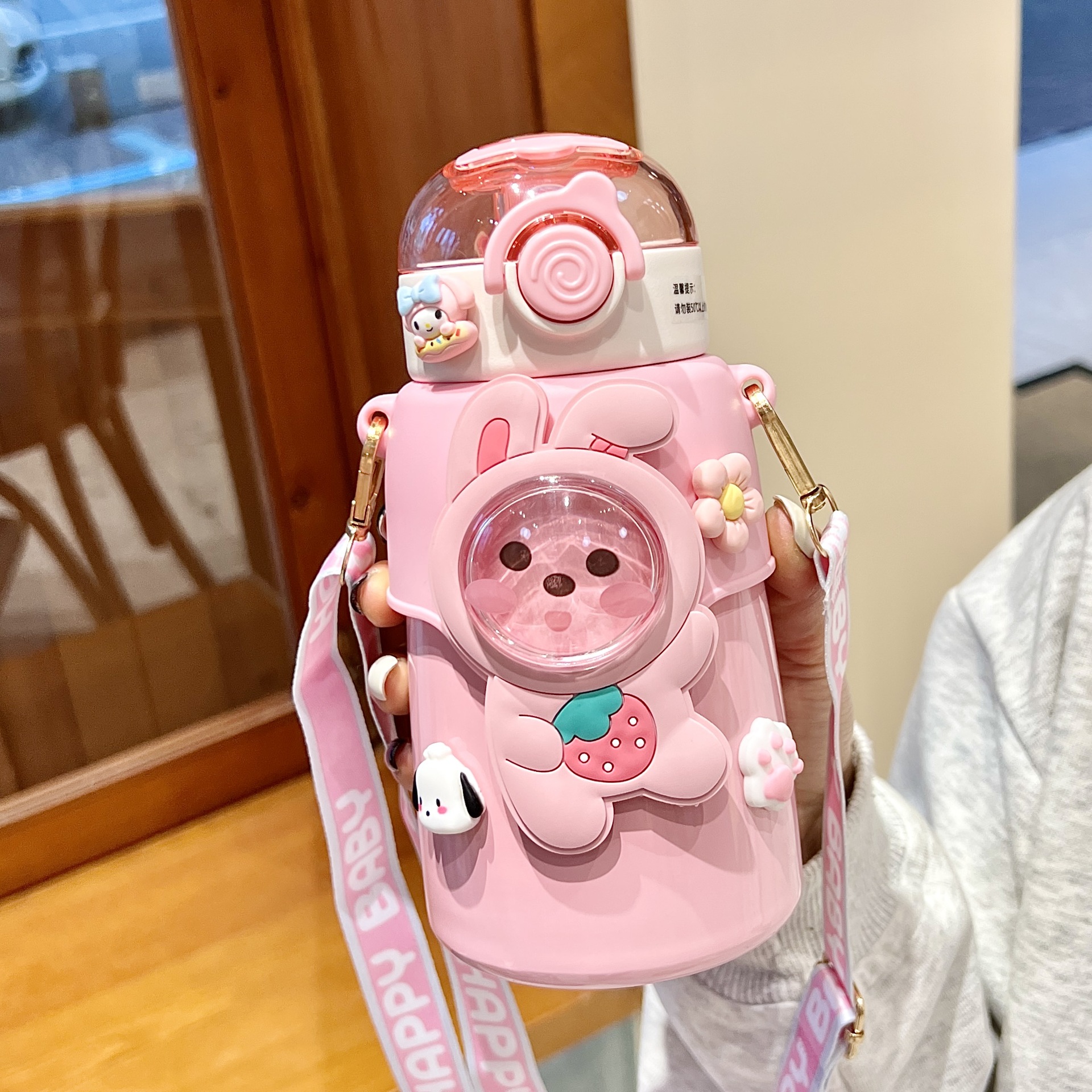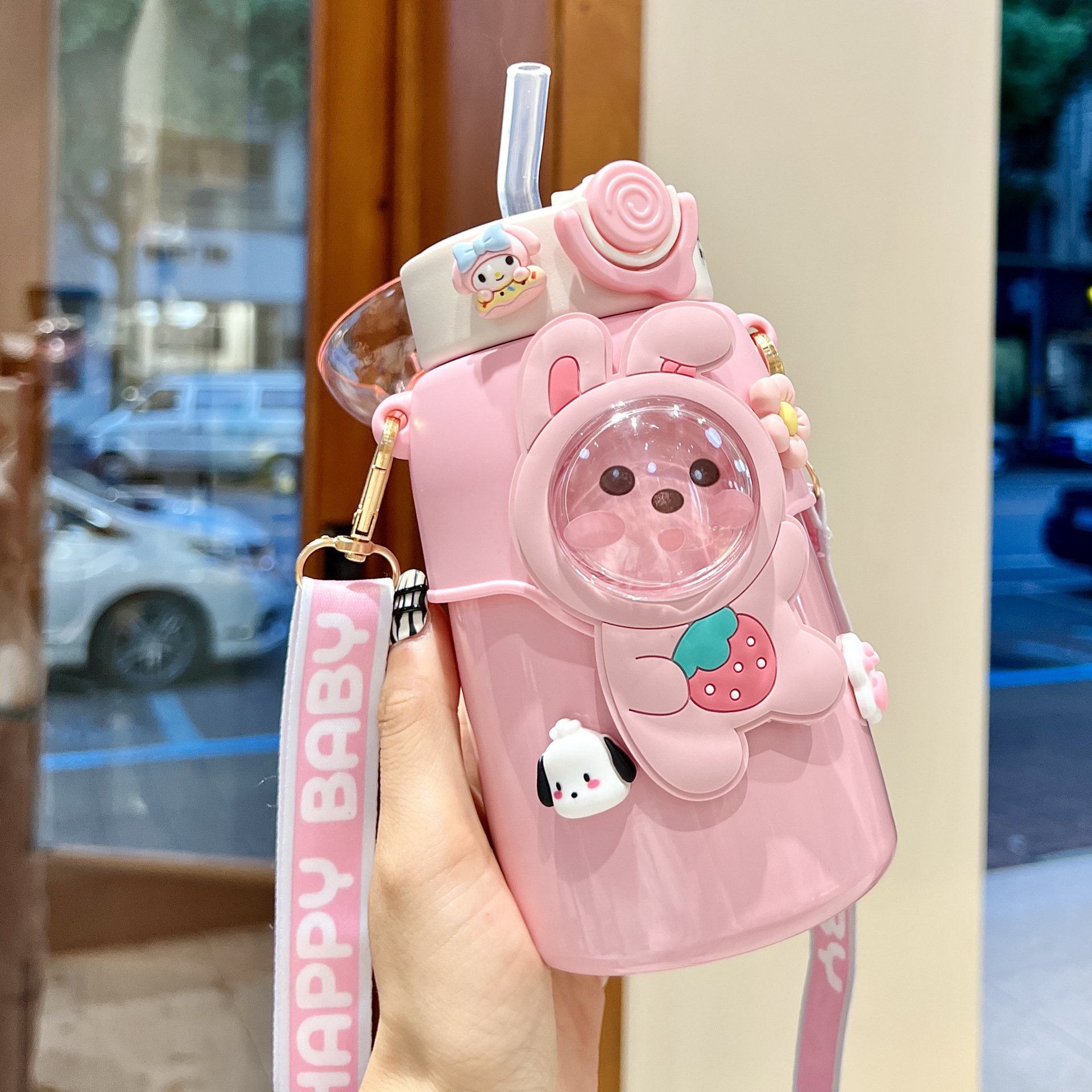 높은 가치의 초등학교 어린이 밀짚 보온병 휴대용 크로스 바디 컵 소녀 인터넷-유명한 밀짚 컵